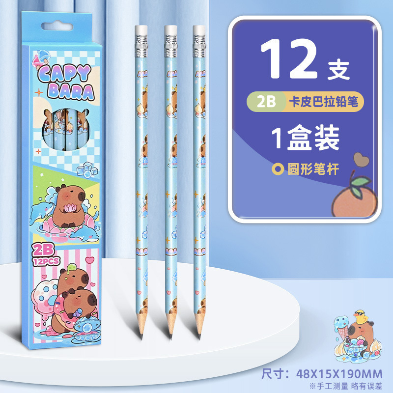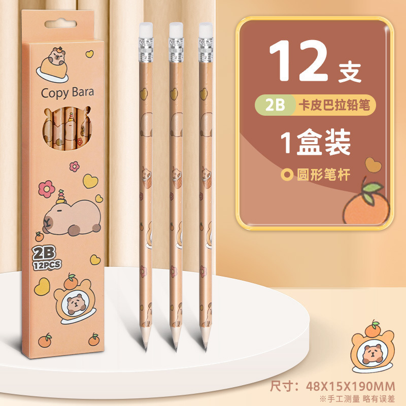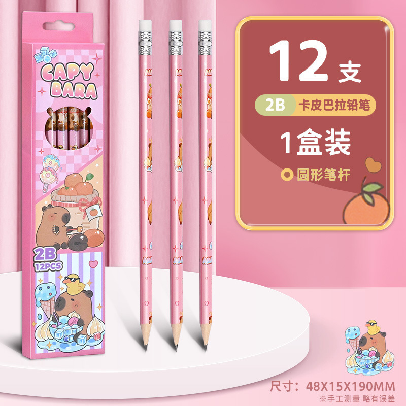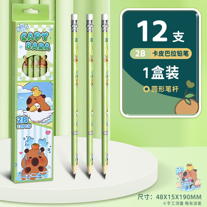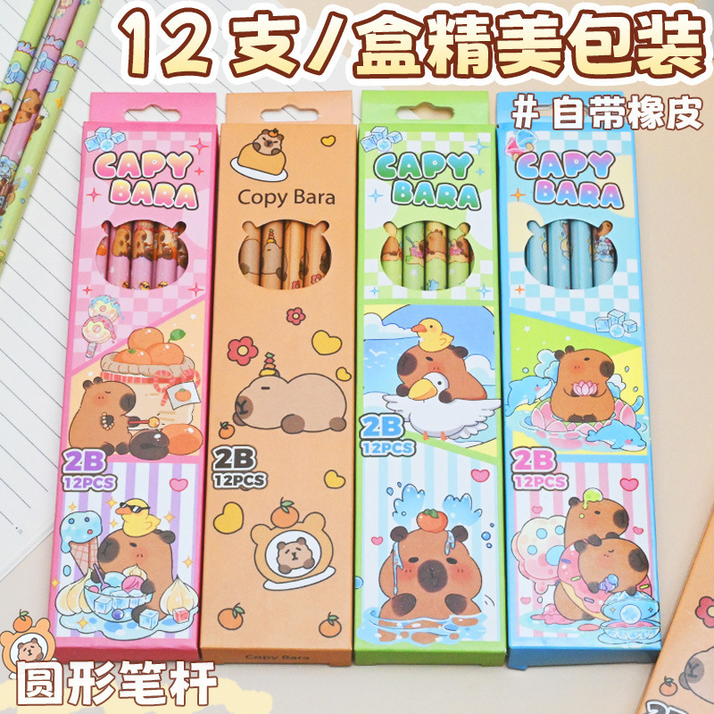 卡皮巴拉12支盒装铅笔小学生奖品开学礼物可爱学习文具2B考试铅笔