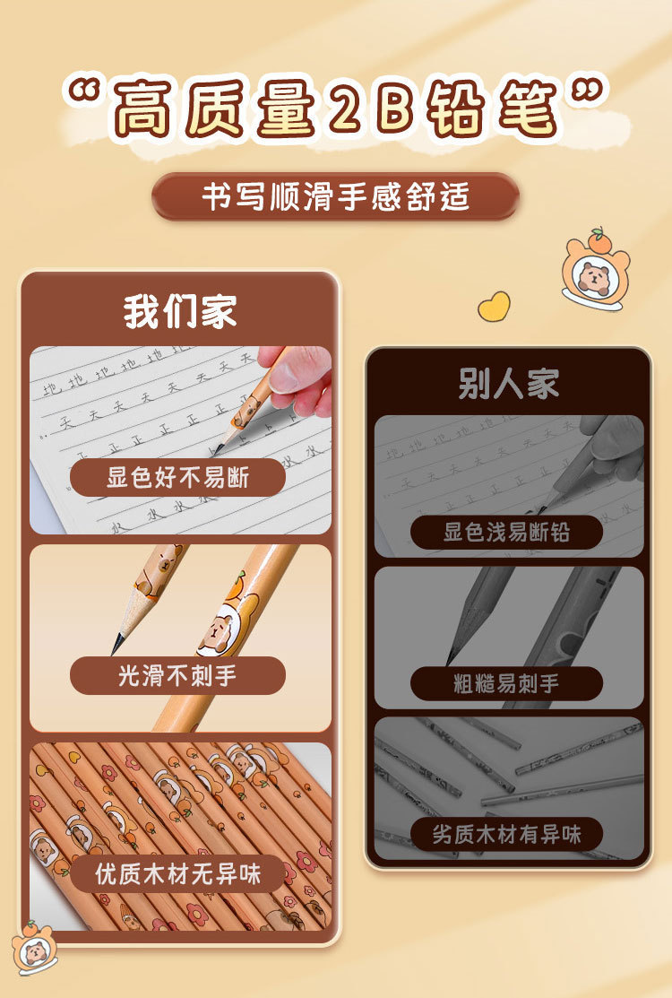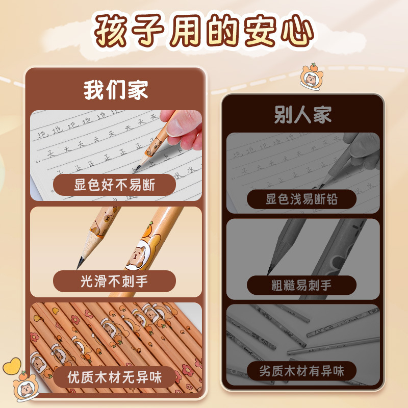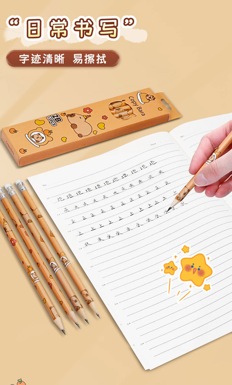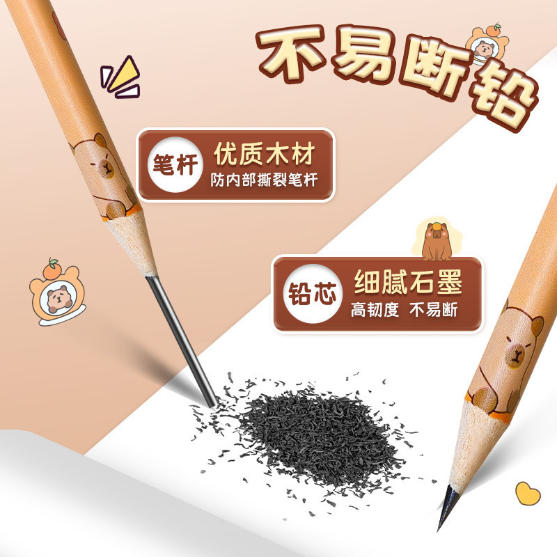 卡皮巴拉12支盒装铅笔小学生奖品开学礼物可爱学习文具2B考试铅笔