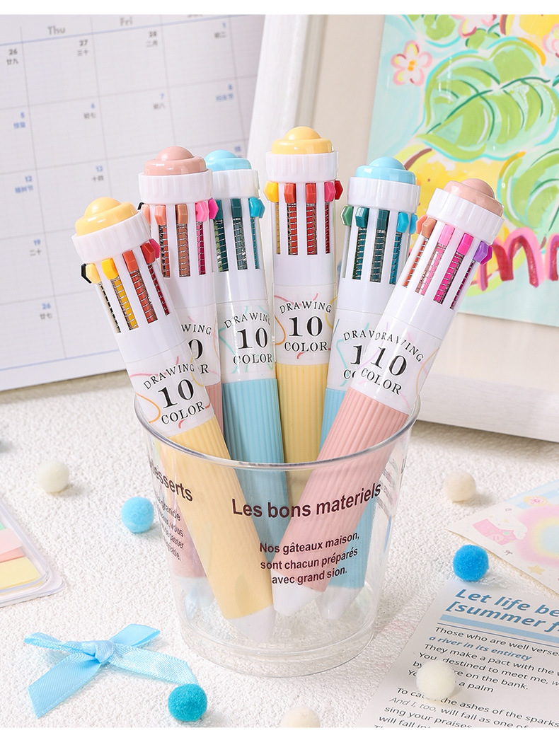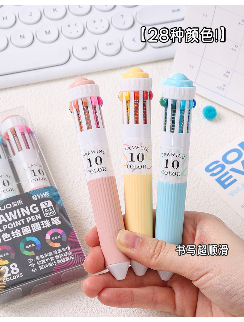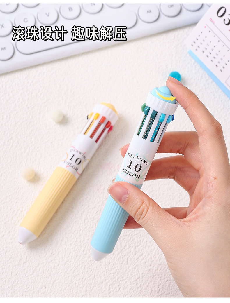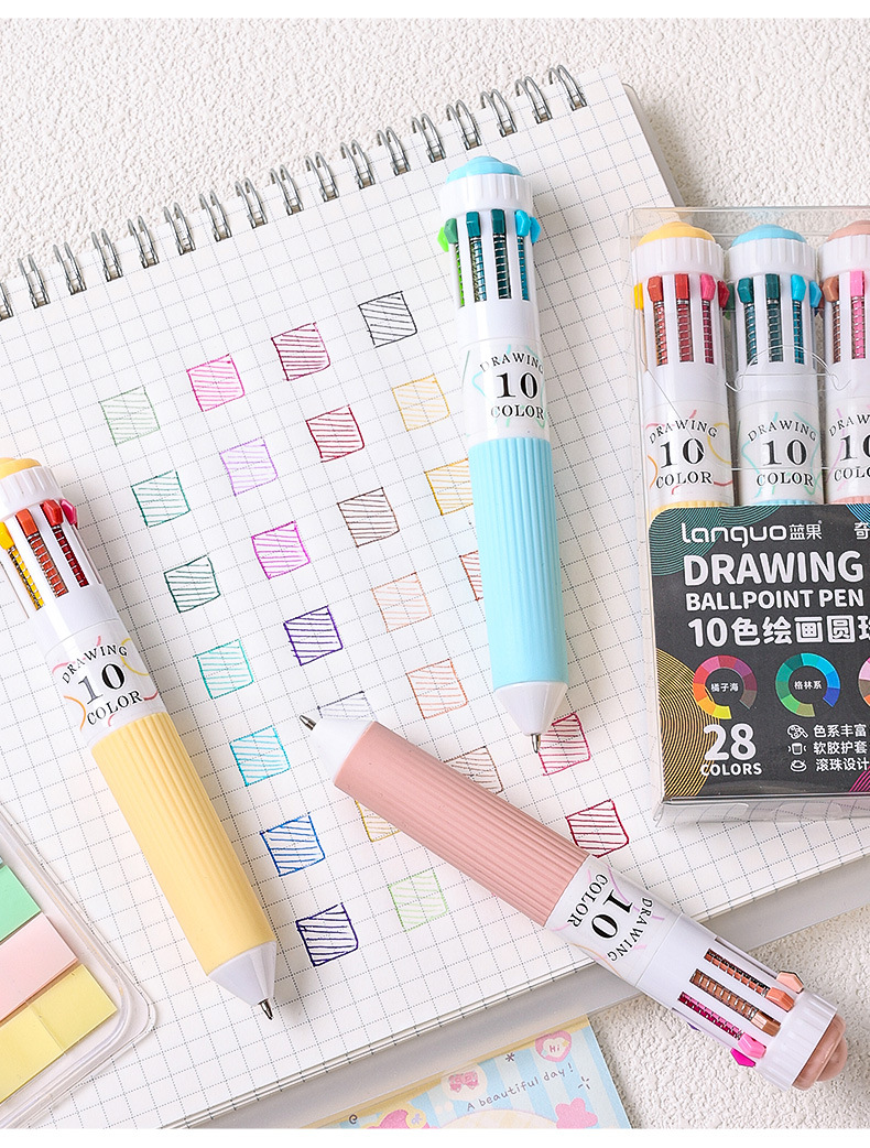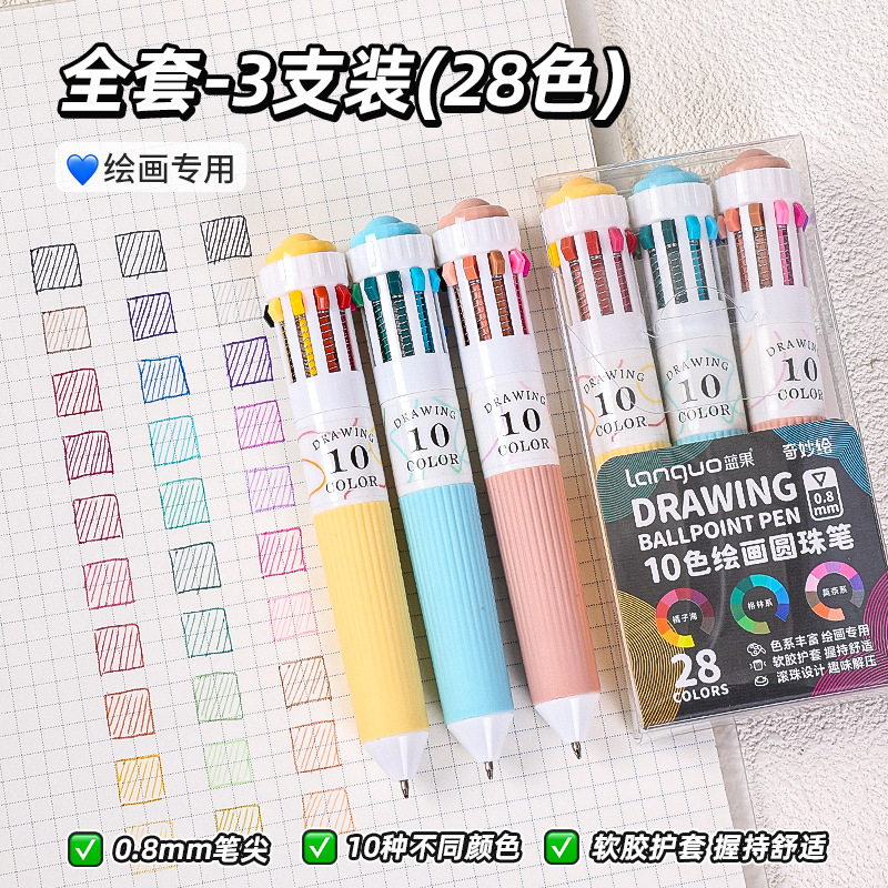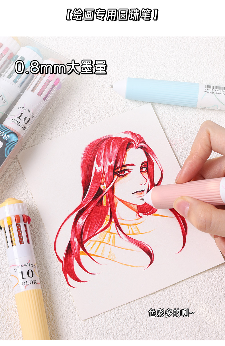 蓝果十色绘画圆珠笔 0.8mm软胶护套不硌手中性笔书写彩色美术画笔
