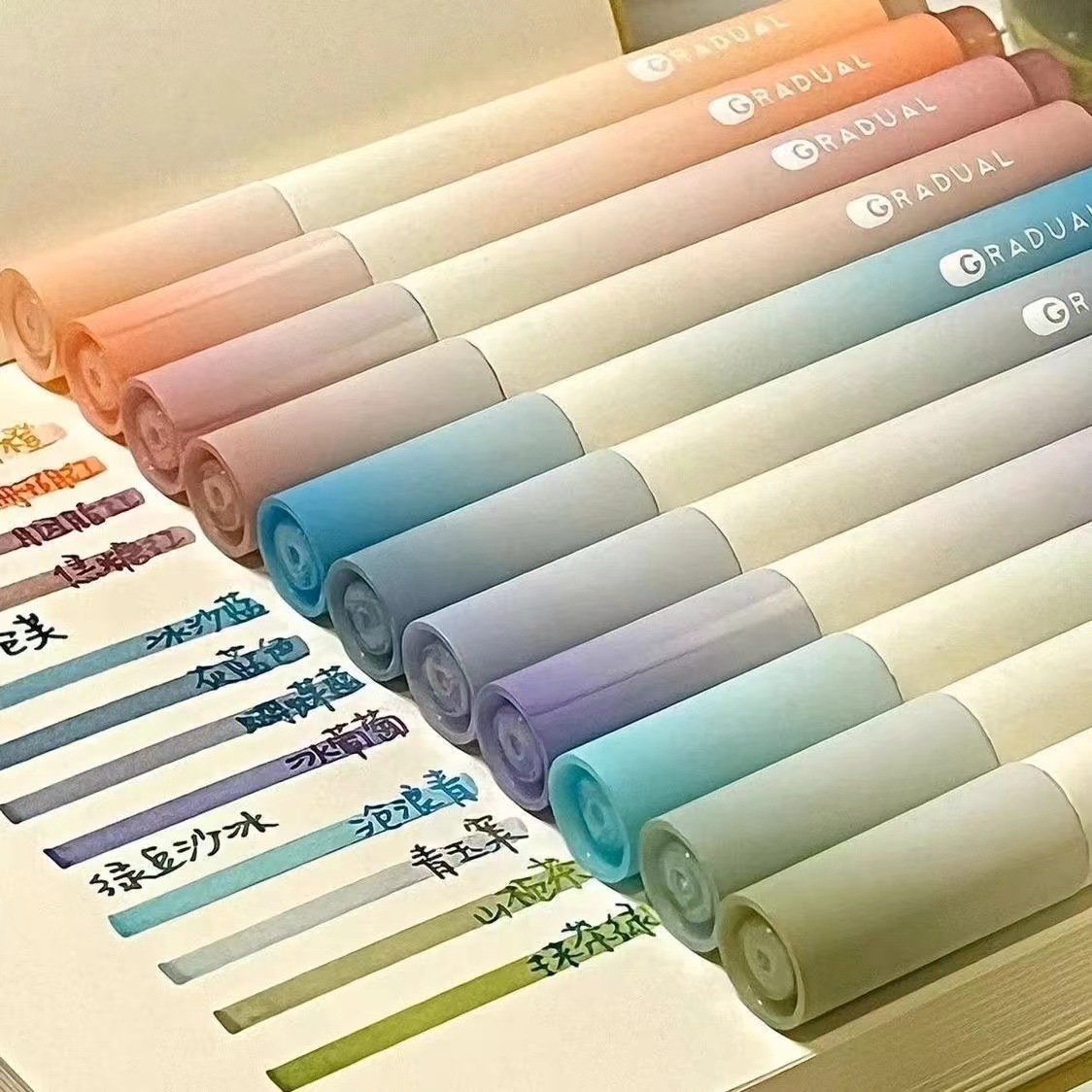 荧光笔莫兰迪标记笔马卡龙双头记号笔多色莹光彩色笔彩笔划重点