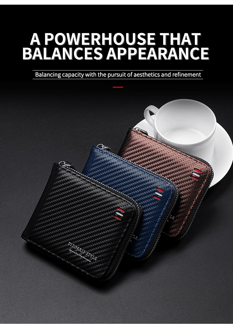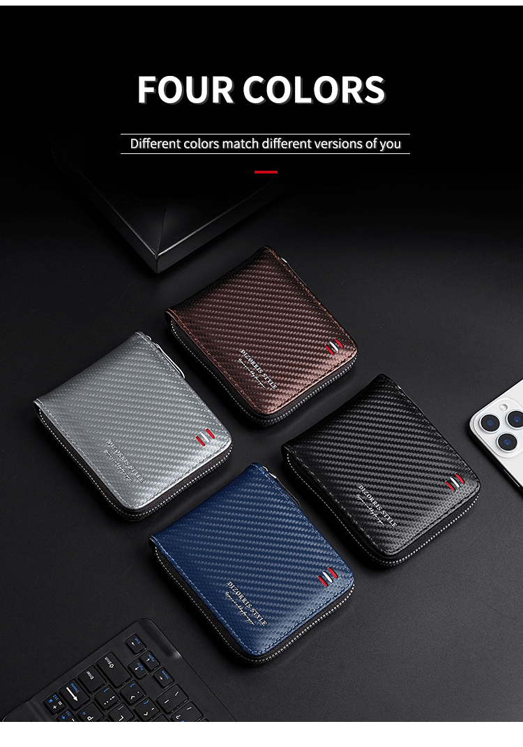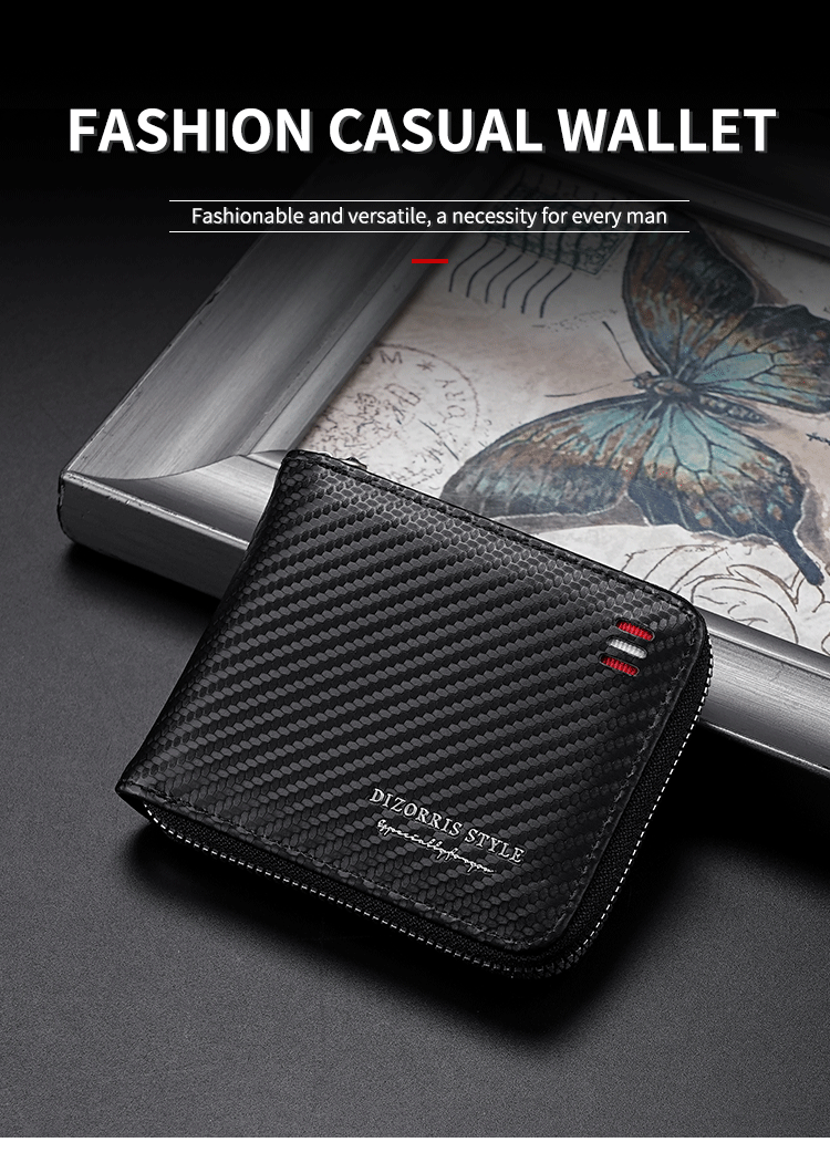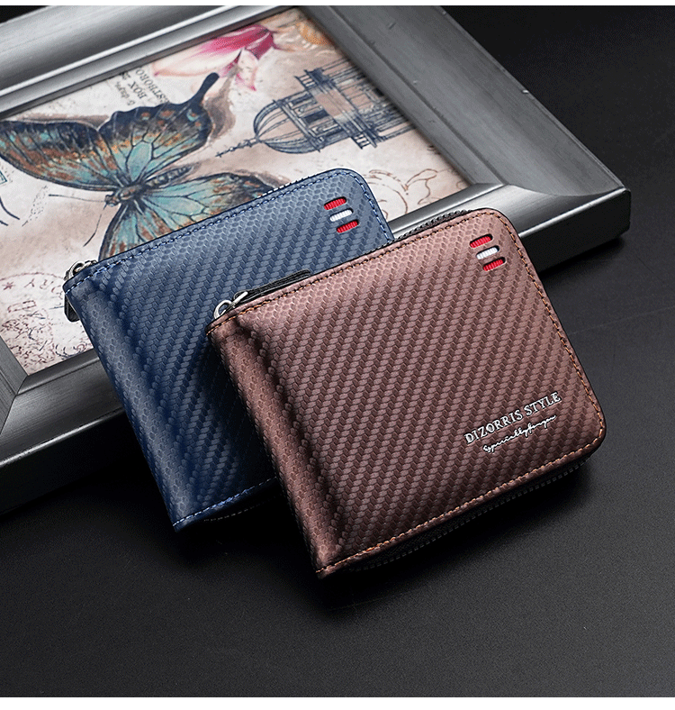跨境时尚碳纤维纹男士专用大容量风琴卡包卡套零钱多功能钱包现货