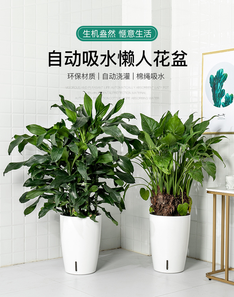 宜植堂简约懒人福音自动吸水花盆高筒圆形落地款种植盆栽大号花盆