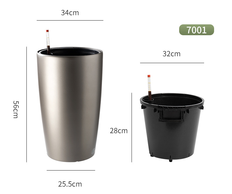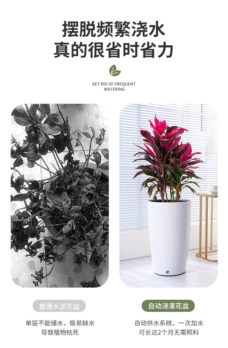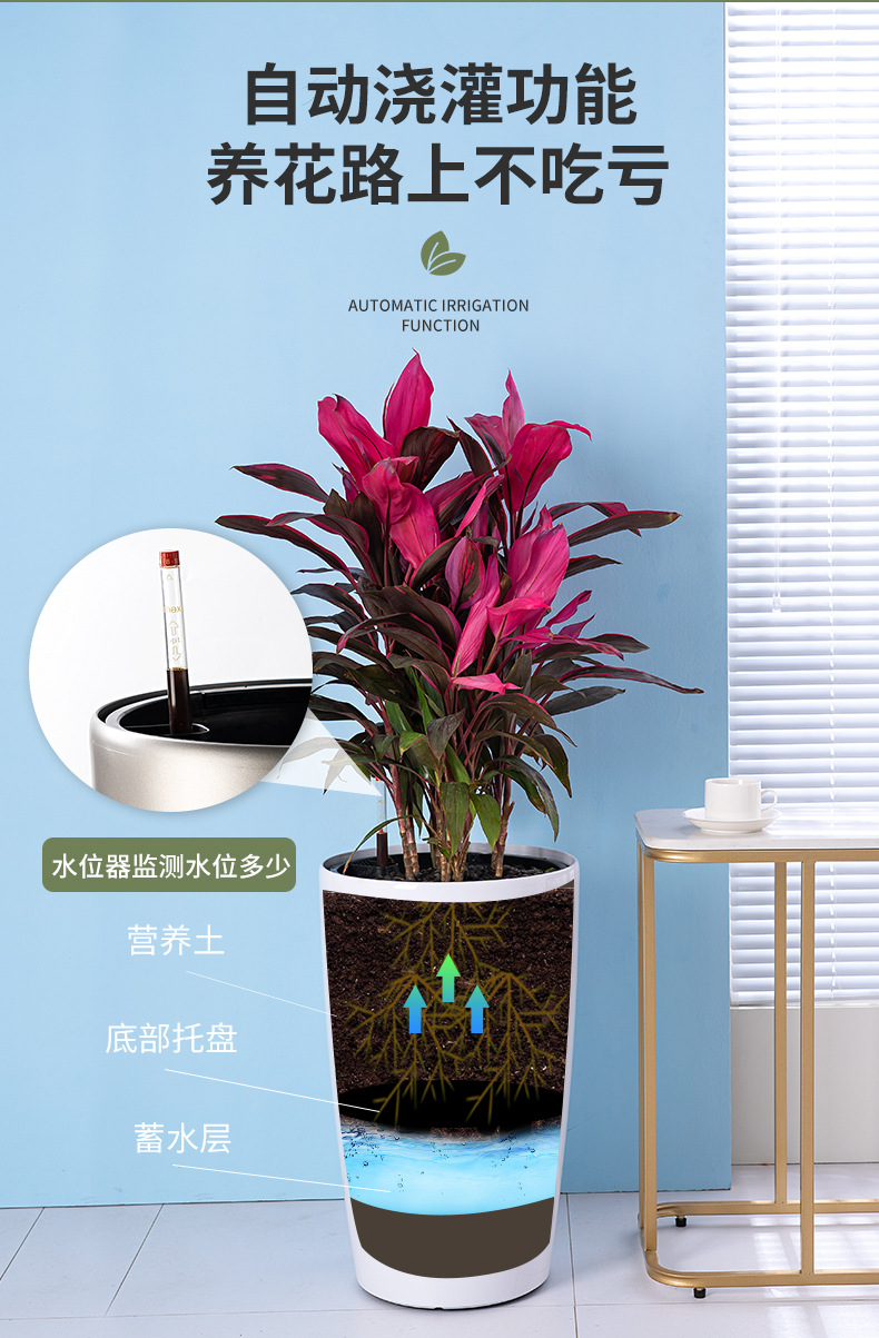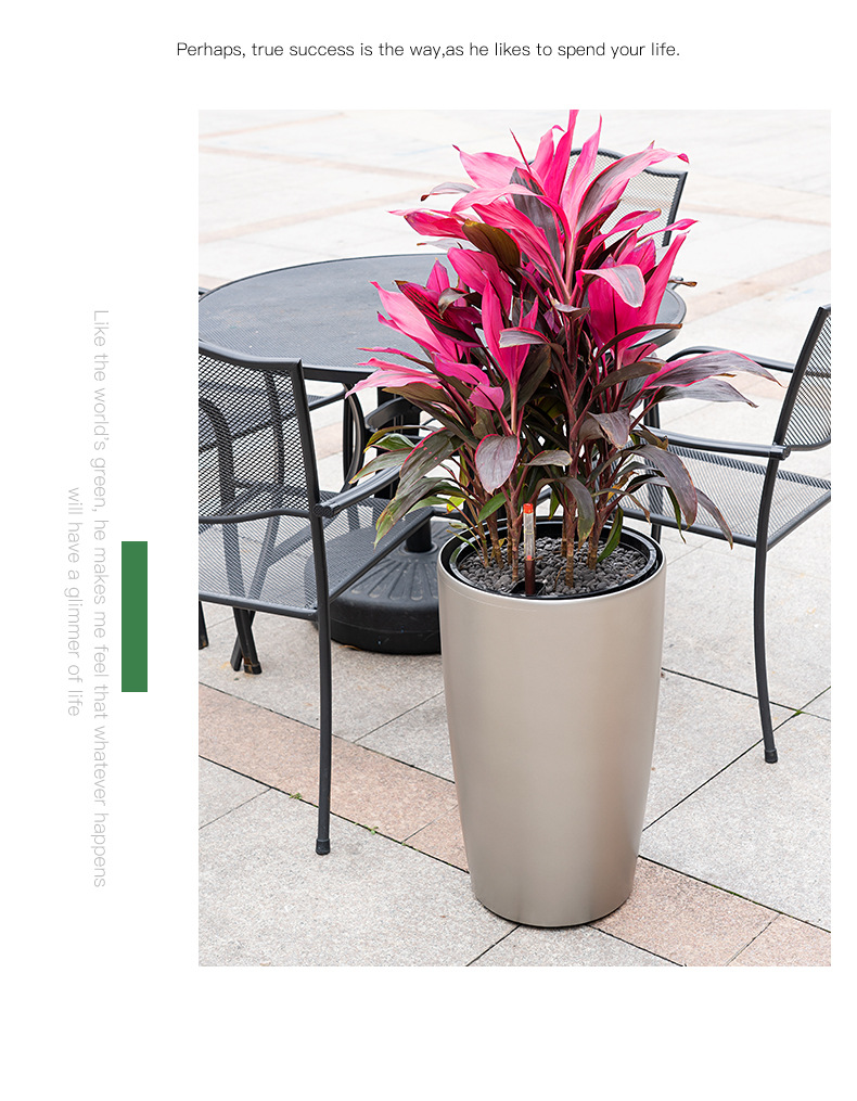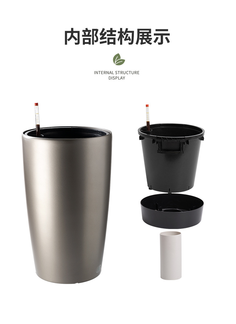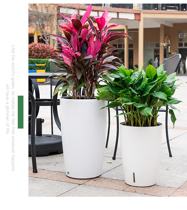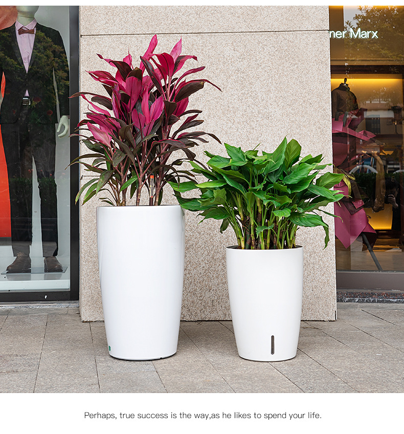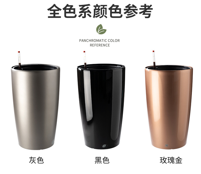 喷砂高圆柱形懒人自吸水免浇灌花盆欧式设计简约时尚落地式种植盆