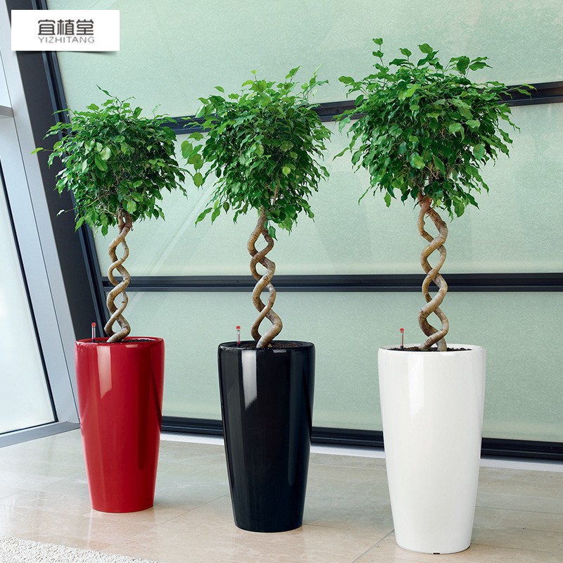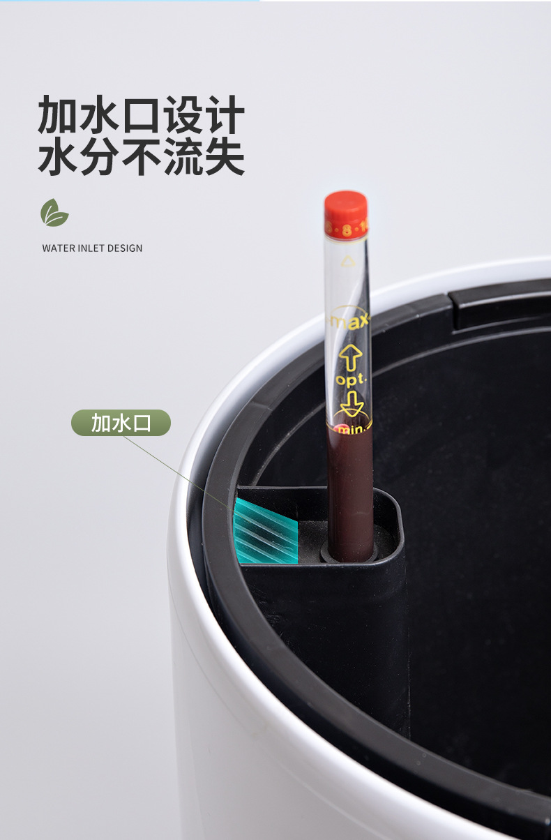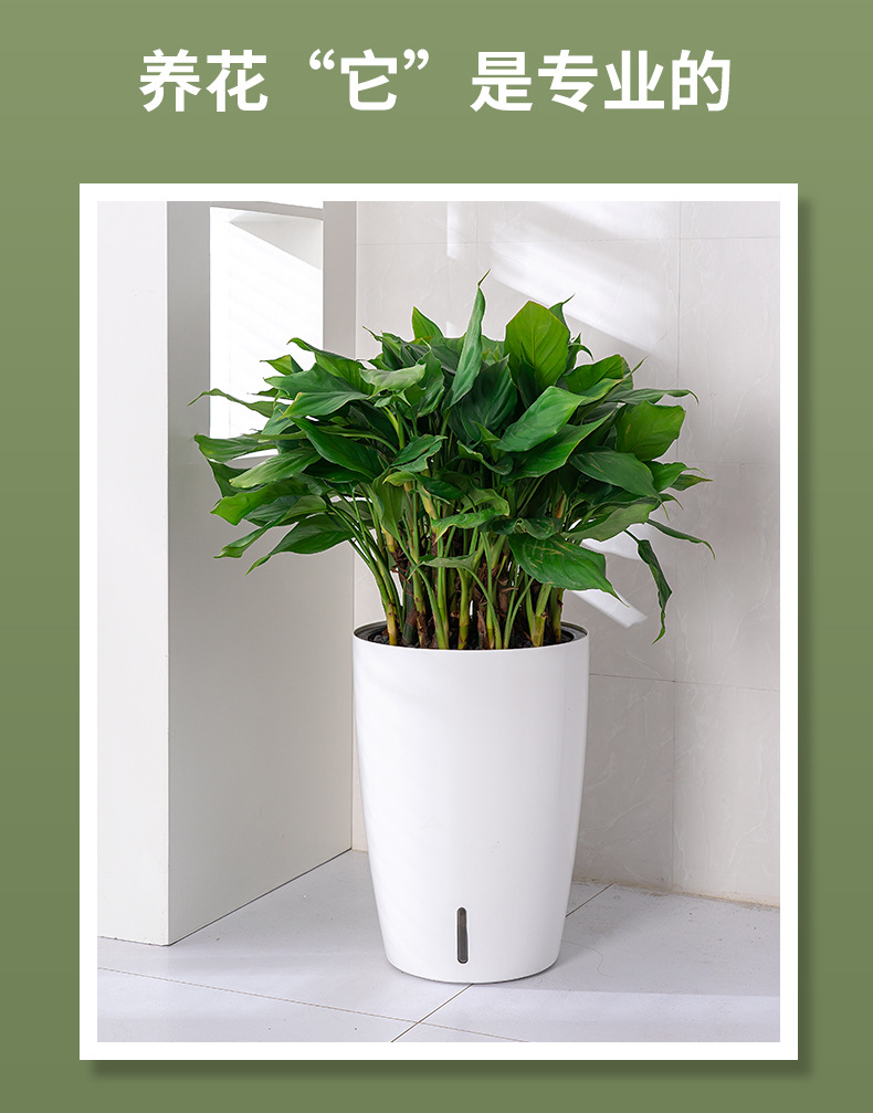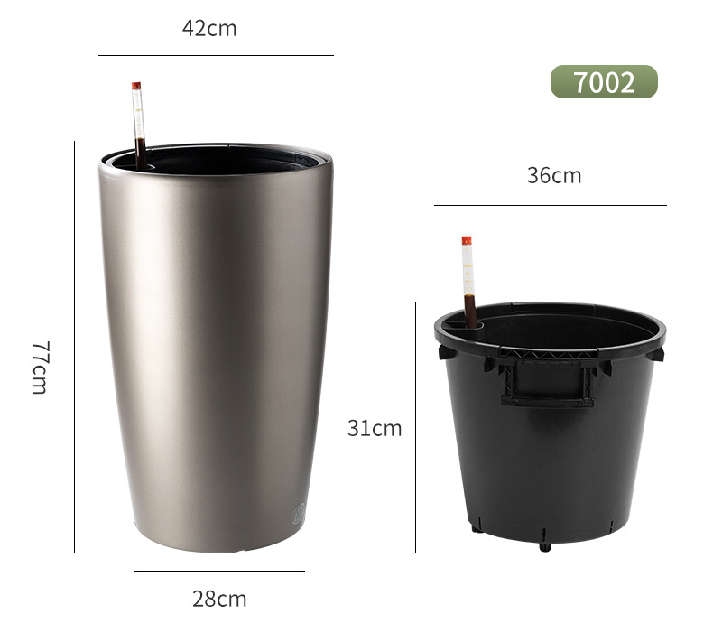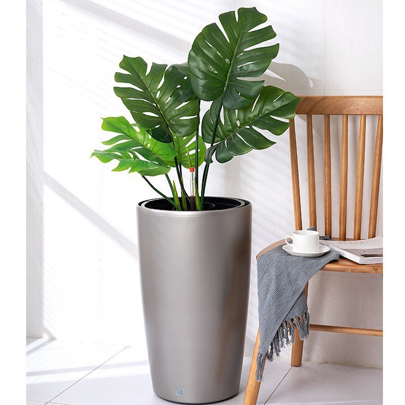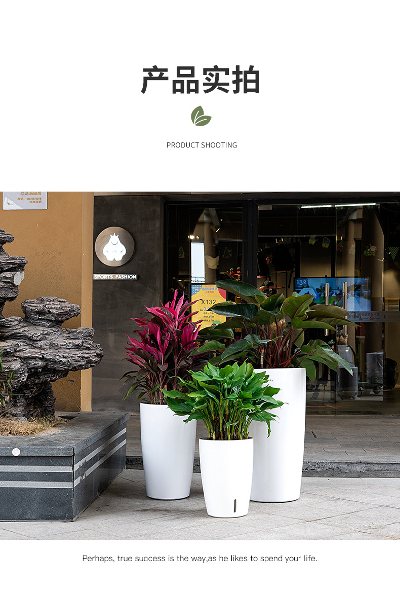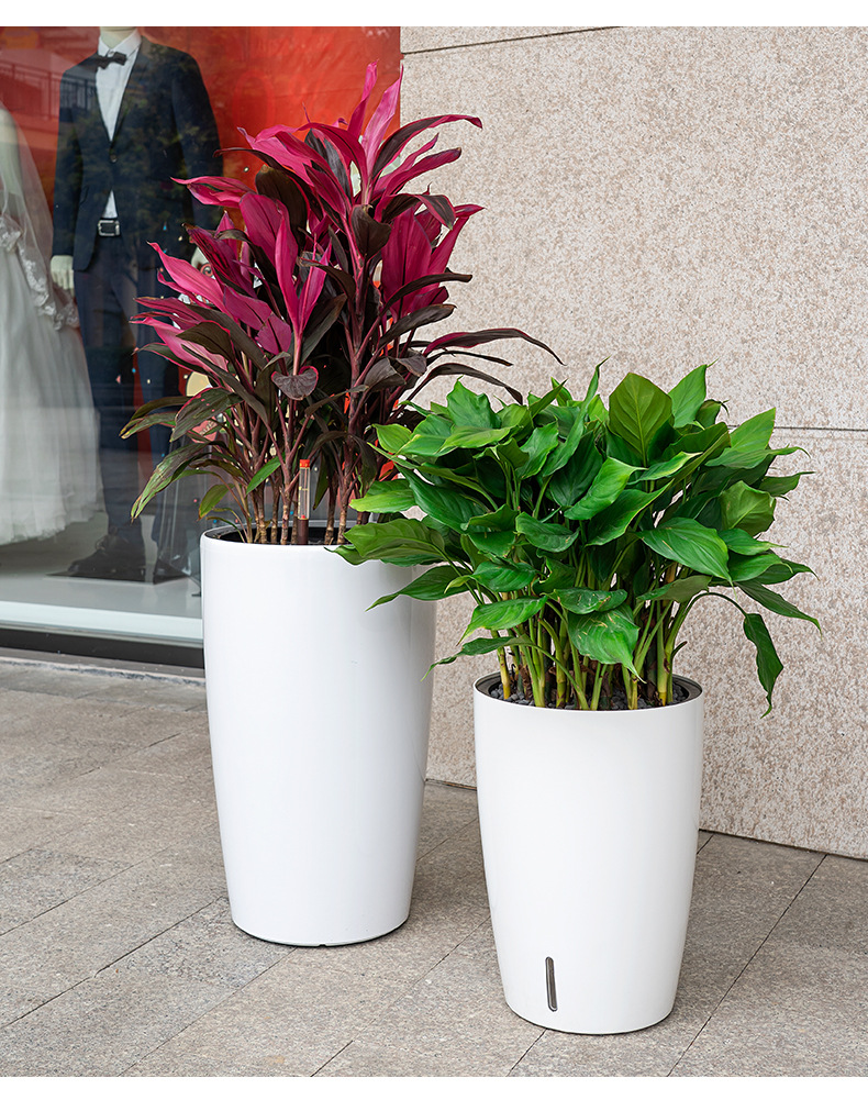 喷砂高圆柱形懒人自吸水免浇灌花盆欧式设计简约时尚落地式种植盆