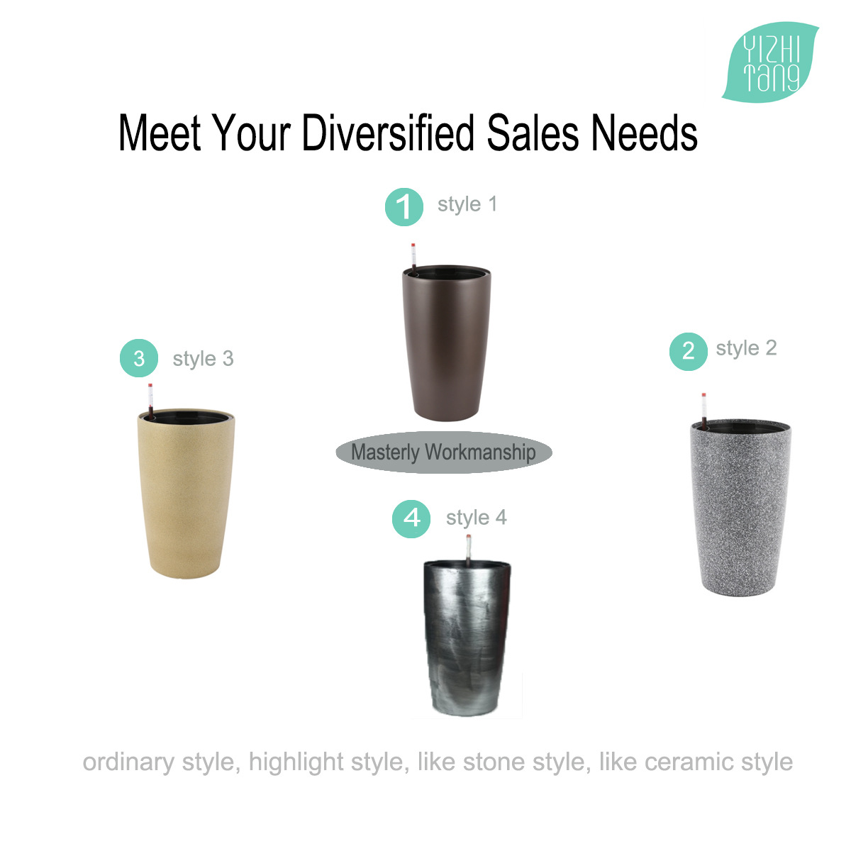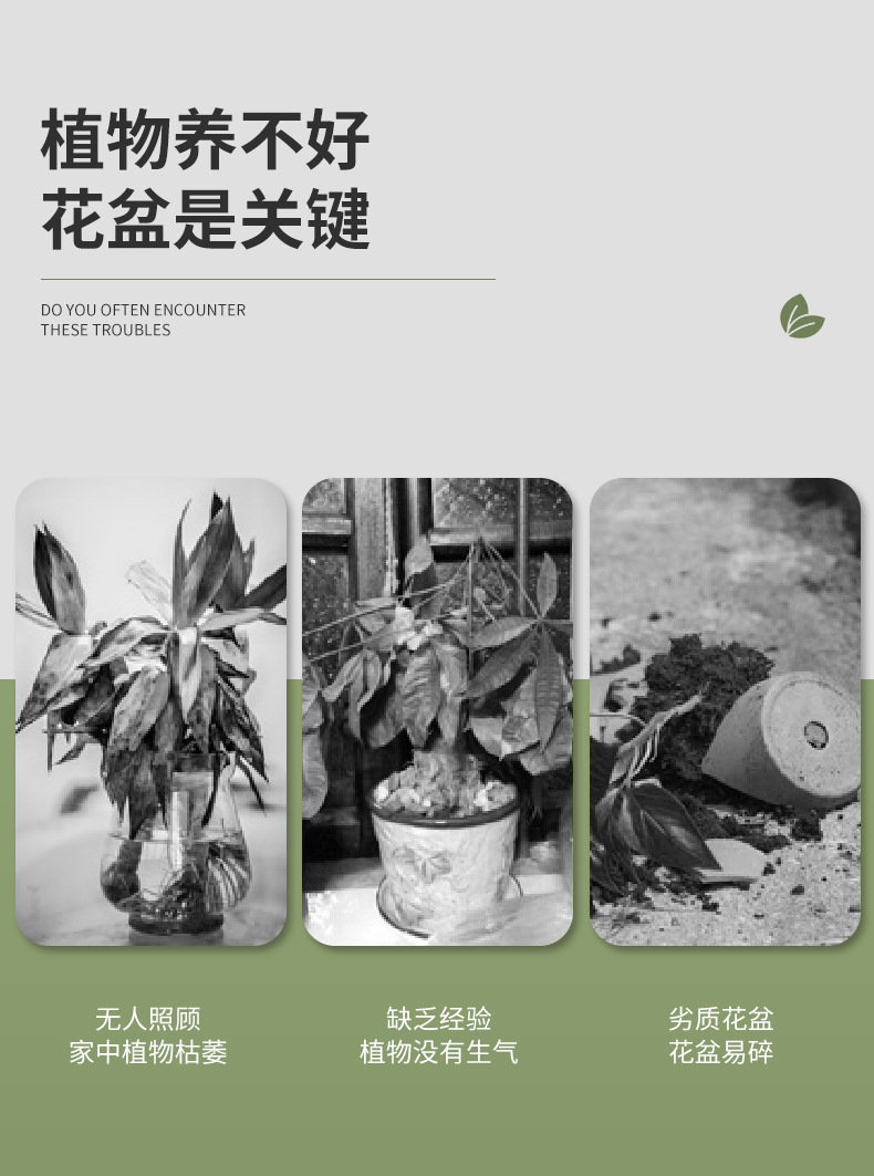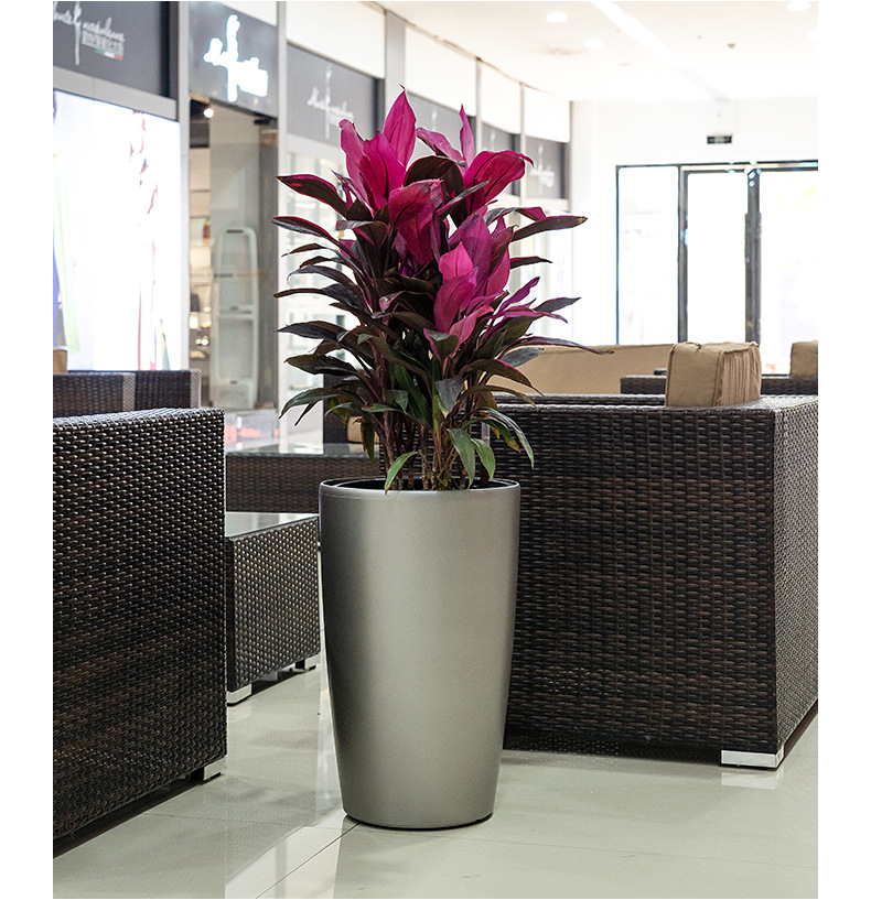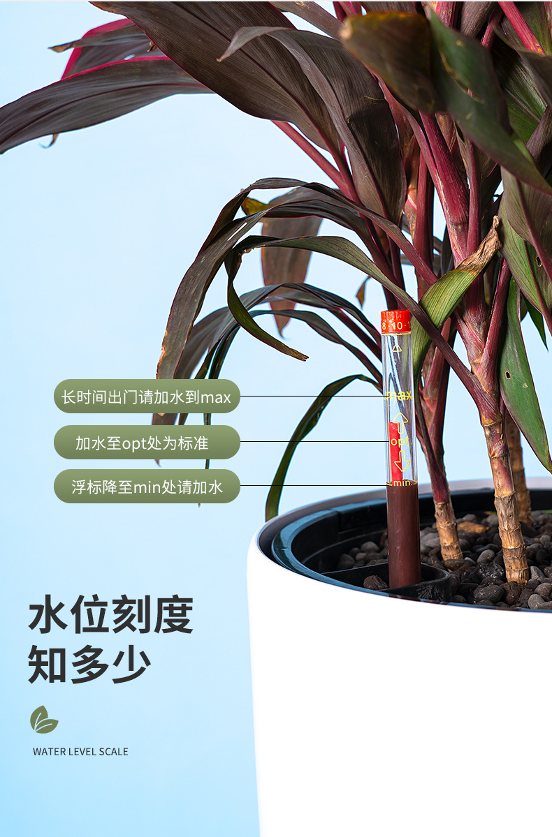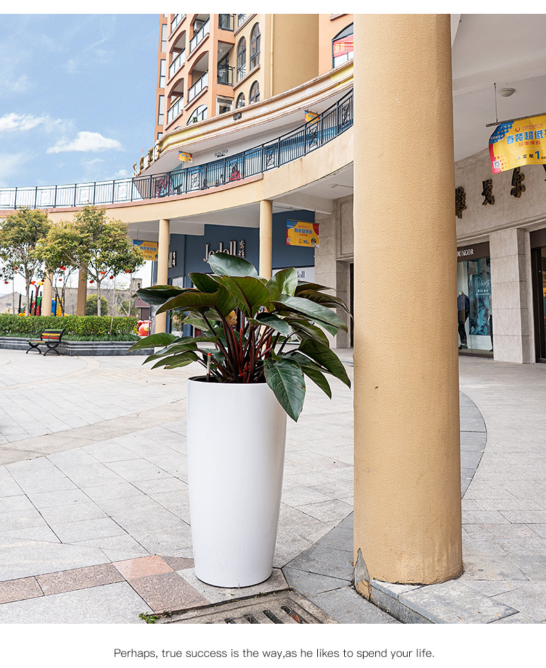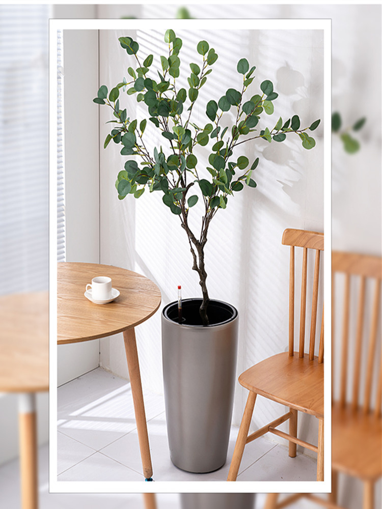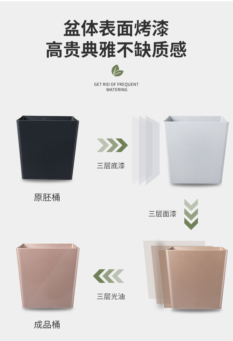 喷砂高圆柱形懒人自吸水免浇灌花盆欧式设计简约时尚落地式种植盆