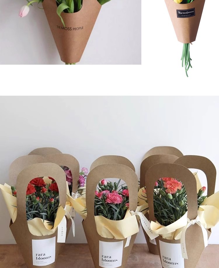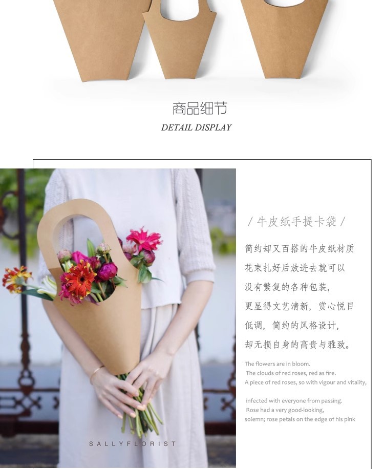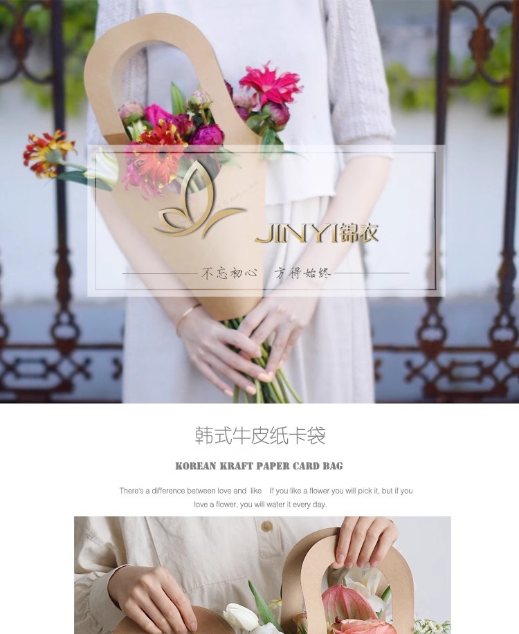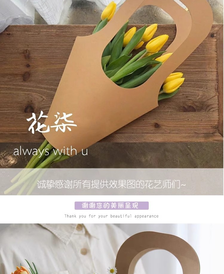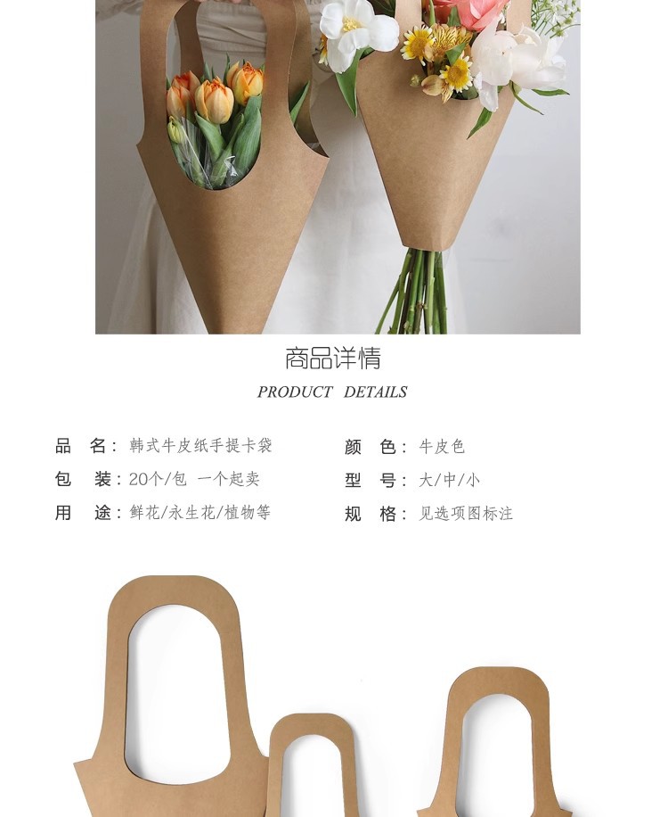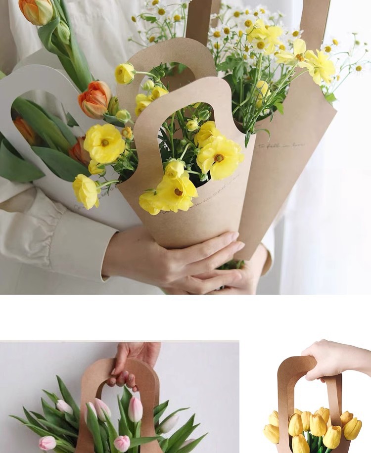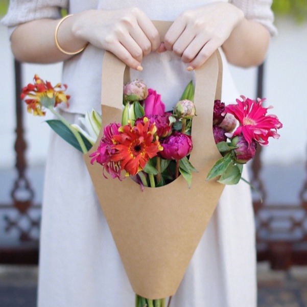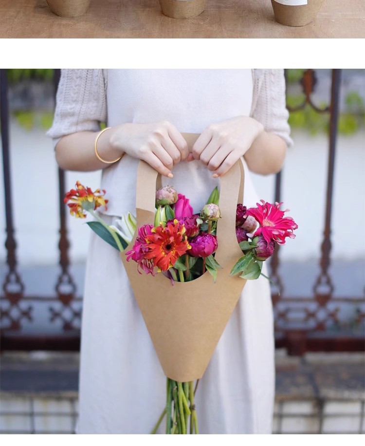 简约文艺鲜花包装袋情人节七夕植物韩式花束高级感牛皮手提袋花店