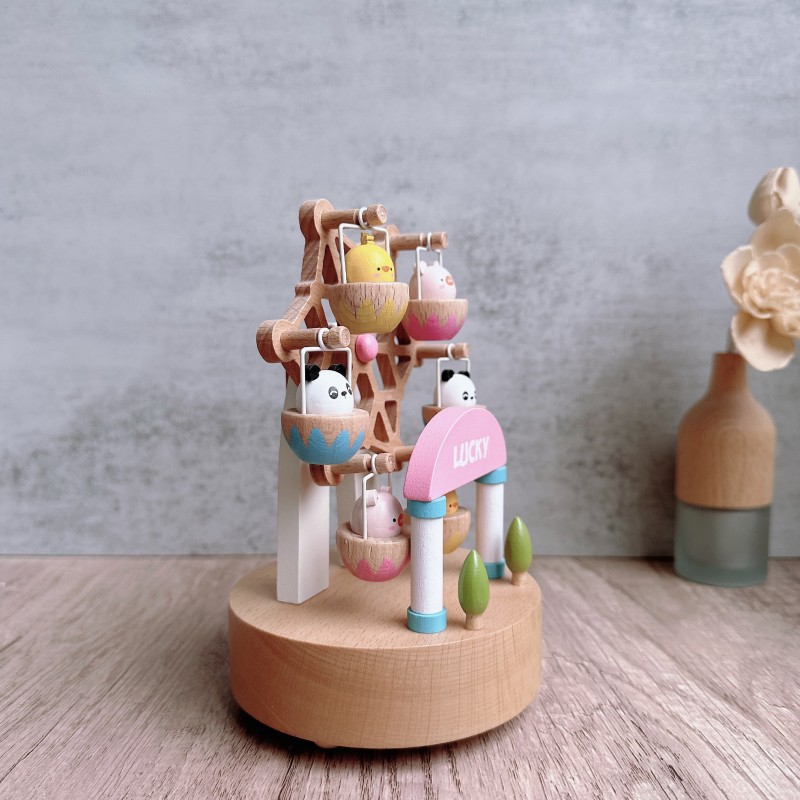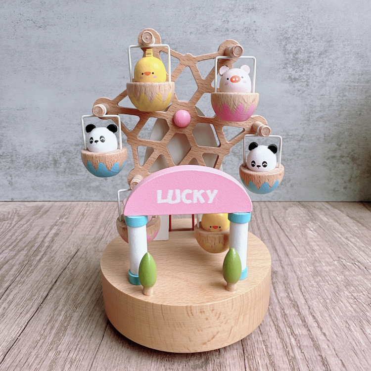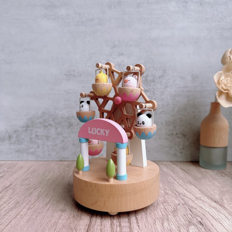 LUCKY摩天轮八音盒摆件可旋转音乐盒手工木质女生生日礼物创意