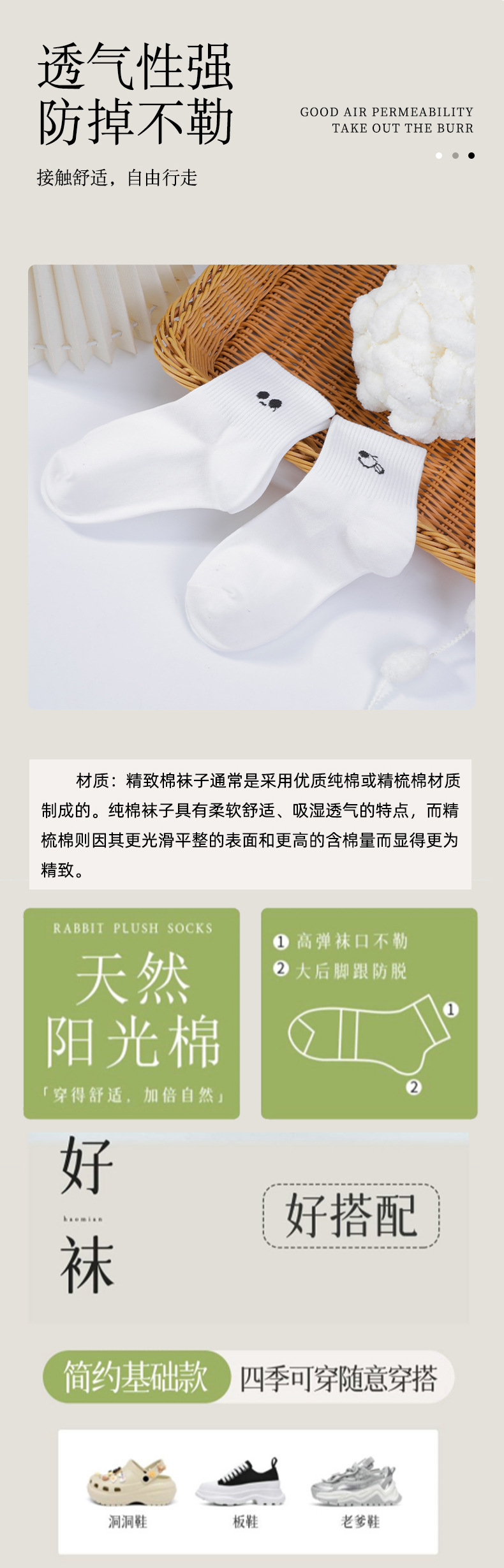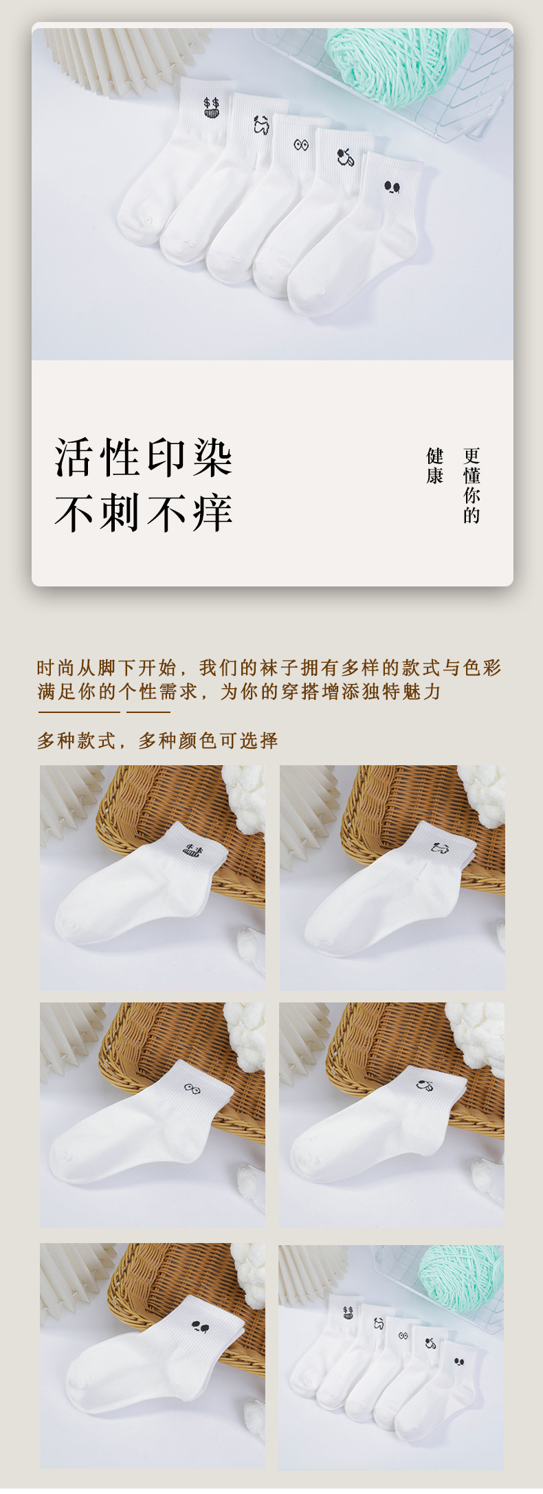 表情包白色精制棉中筒袜子可爱校园风小白袜吸汗防臭薄款袜子