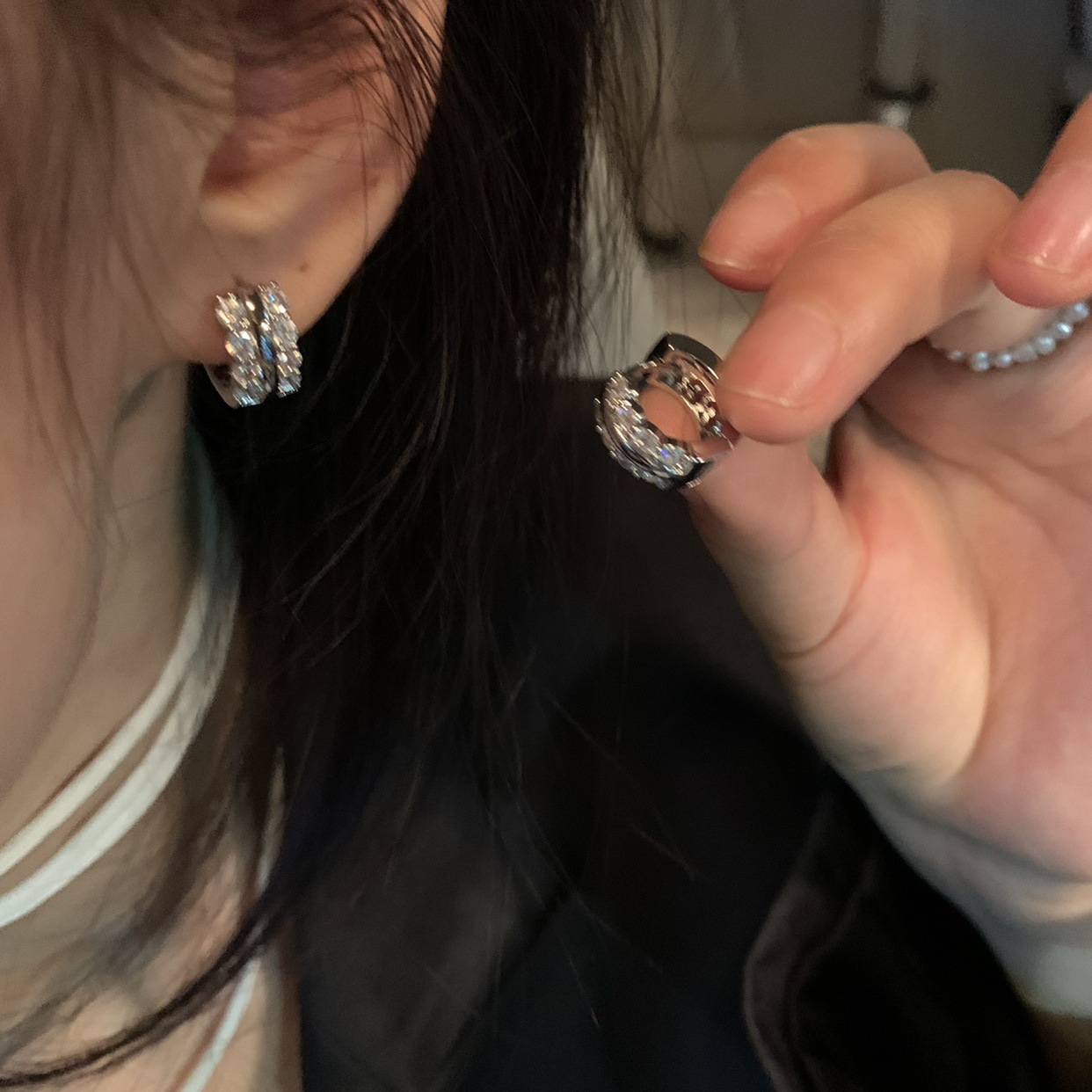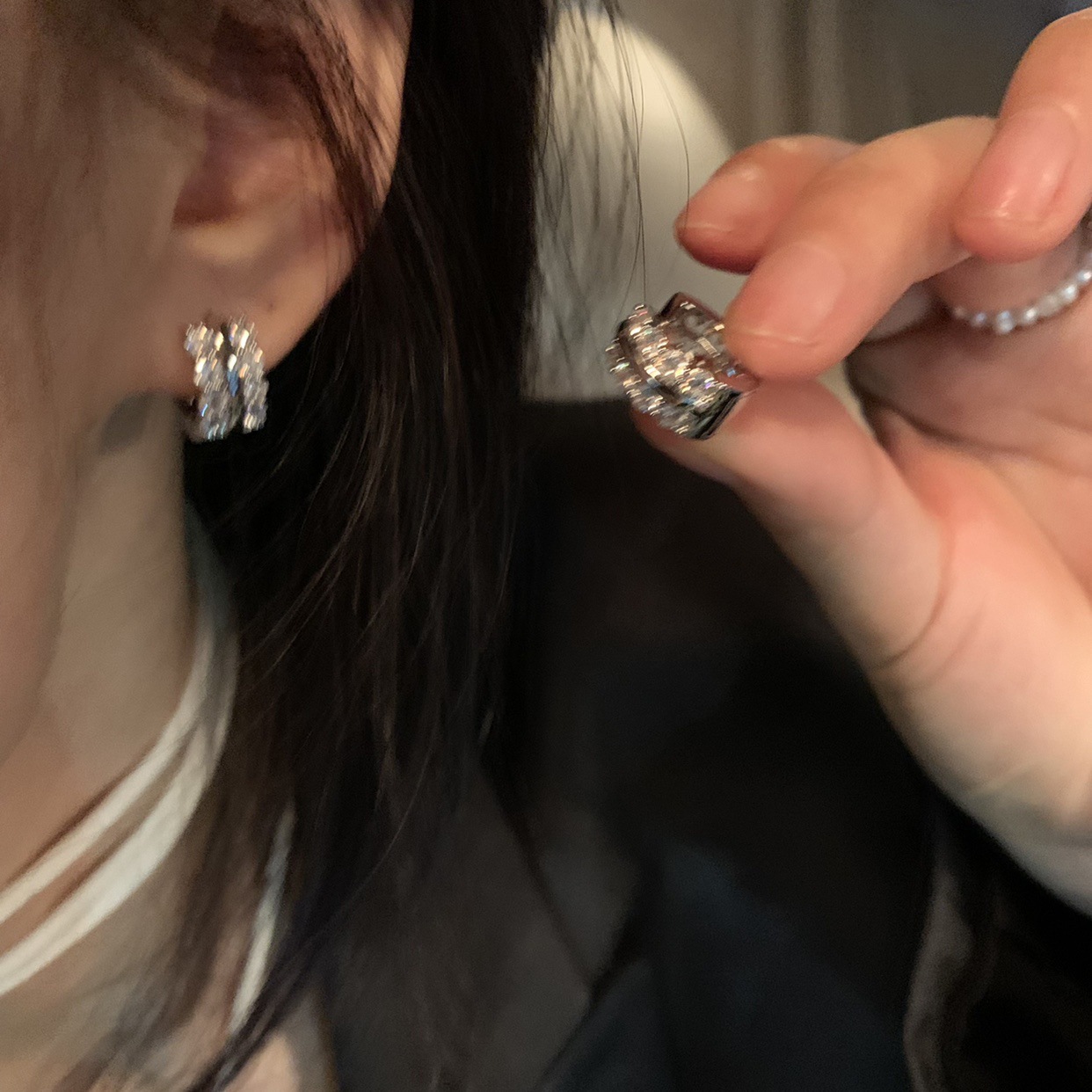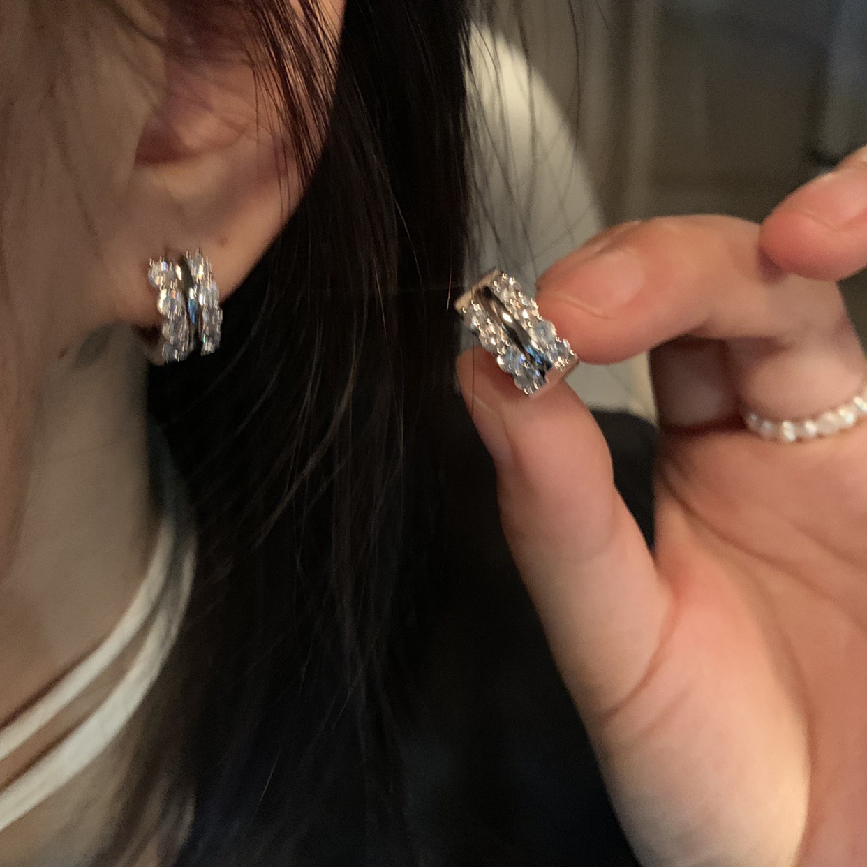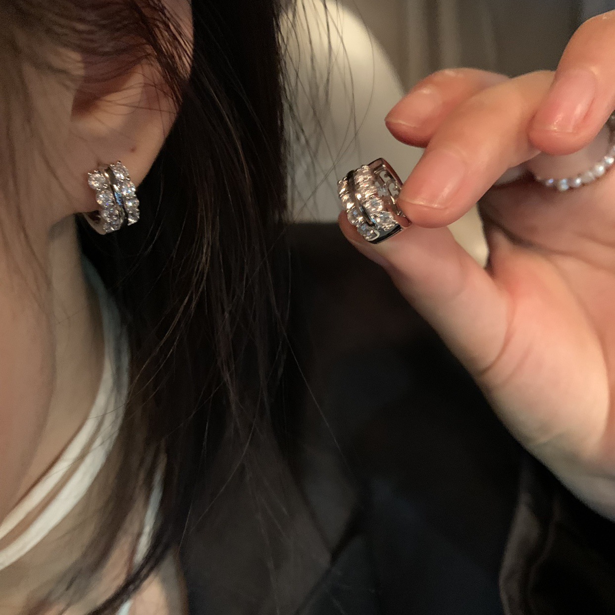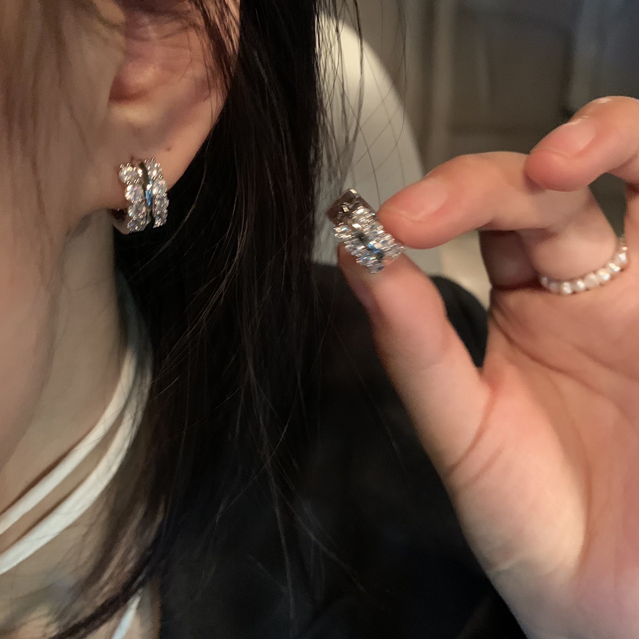 圈圈锆石耳环小众设计感轻奢冷淡风耳钉女2023新款耳饰耳扣个性潮