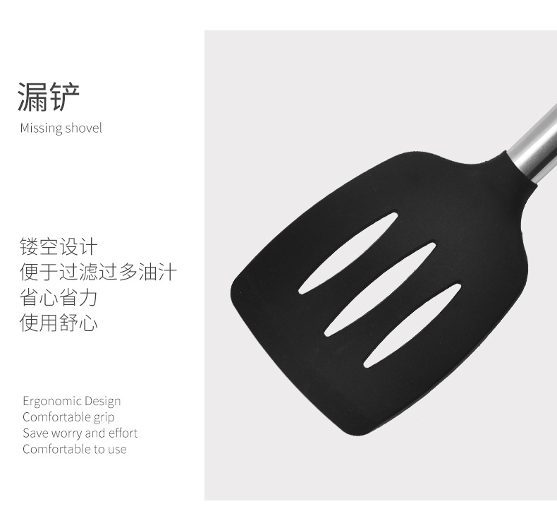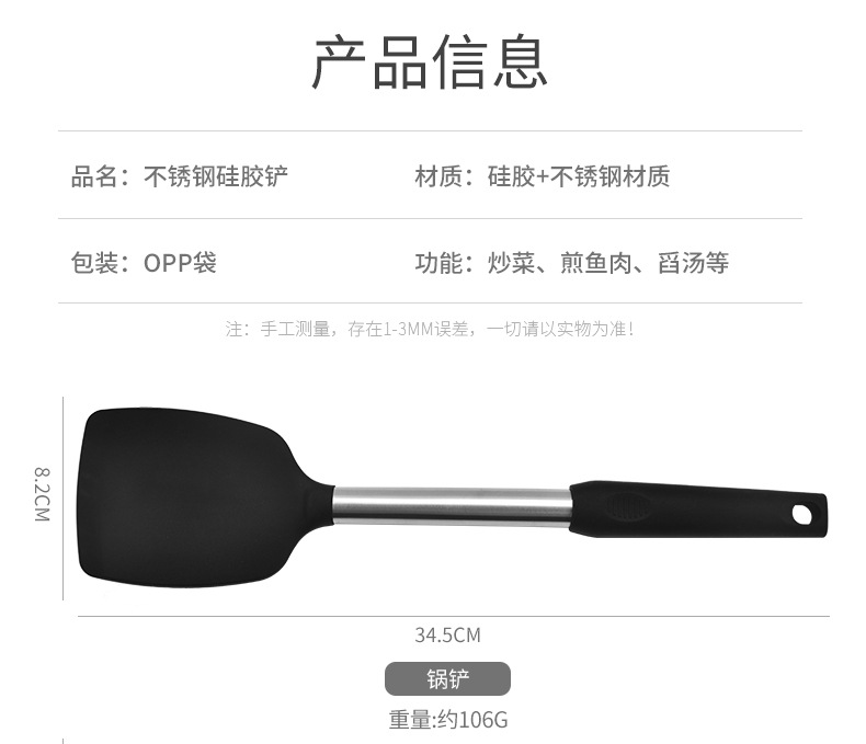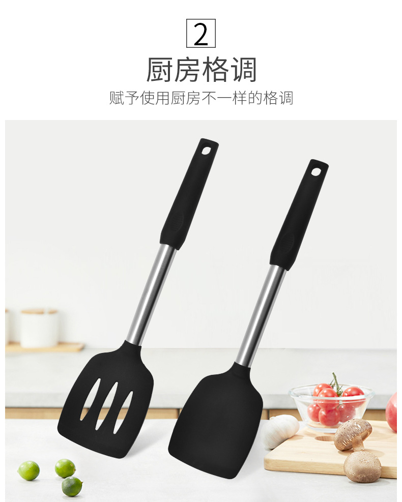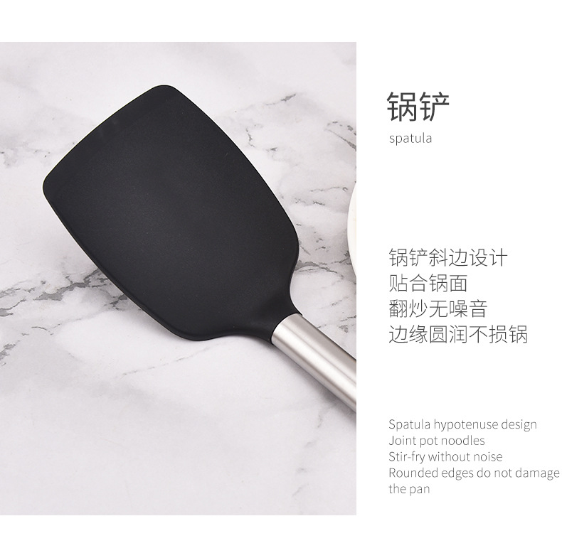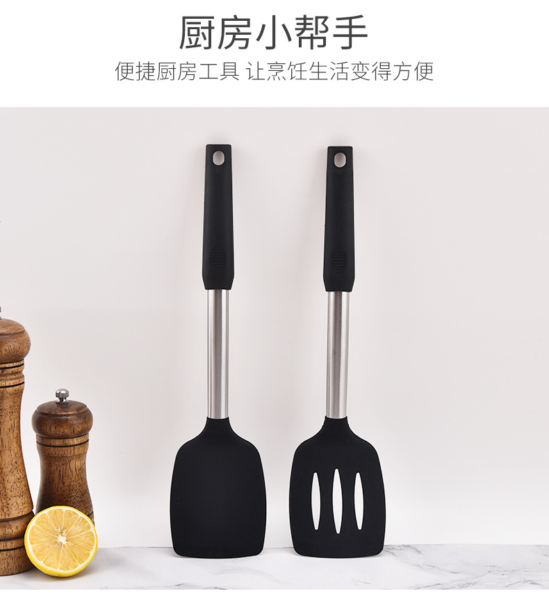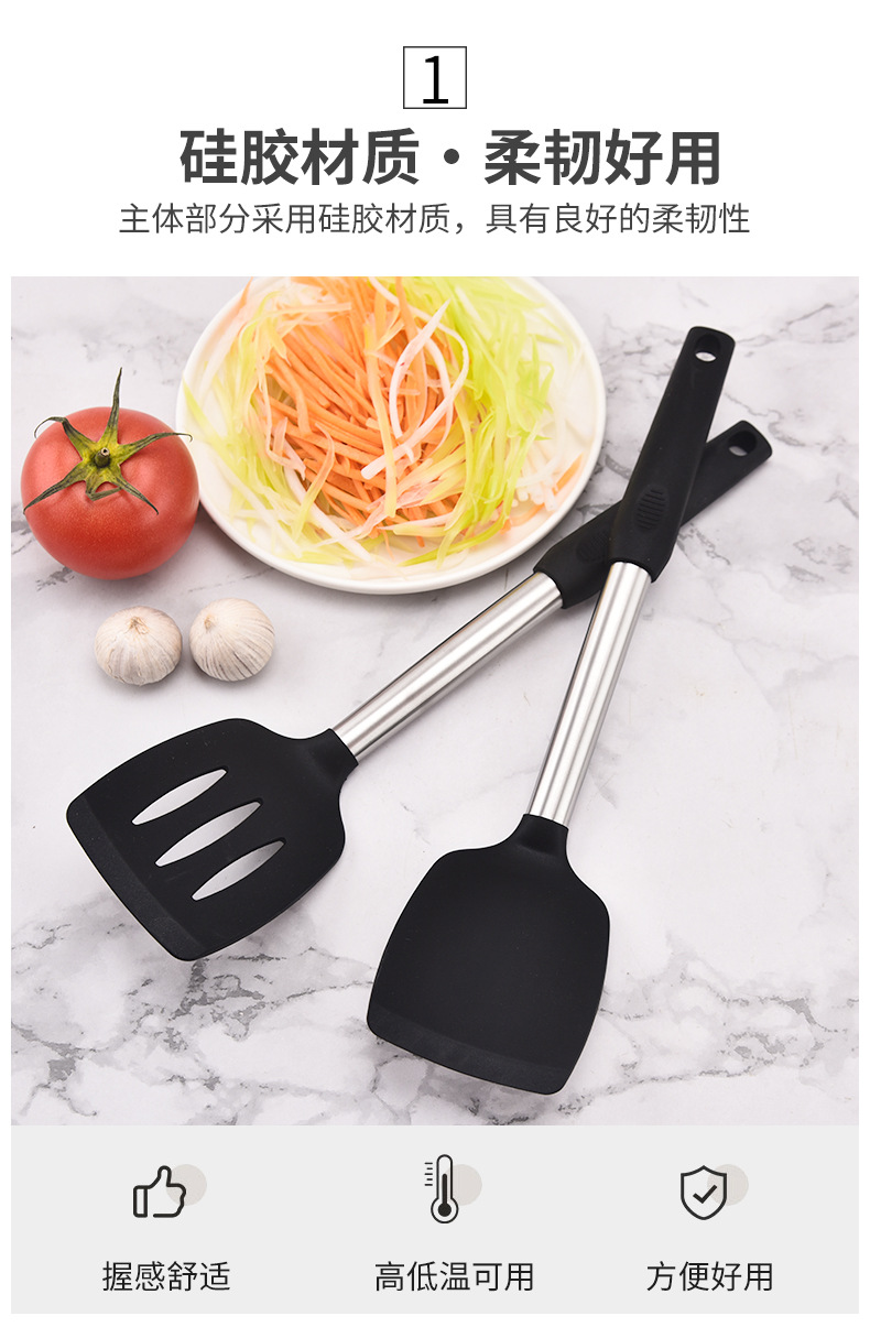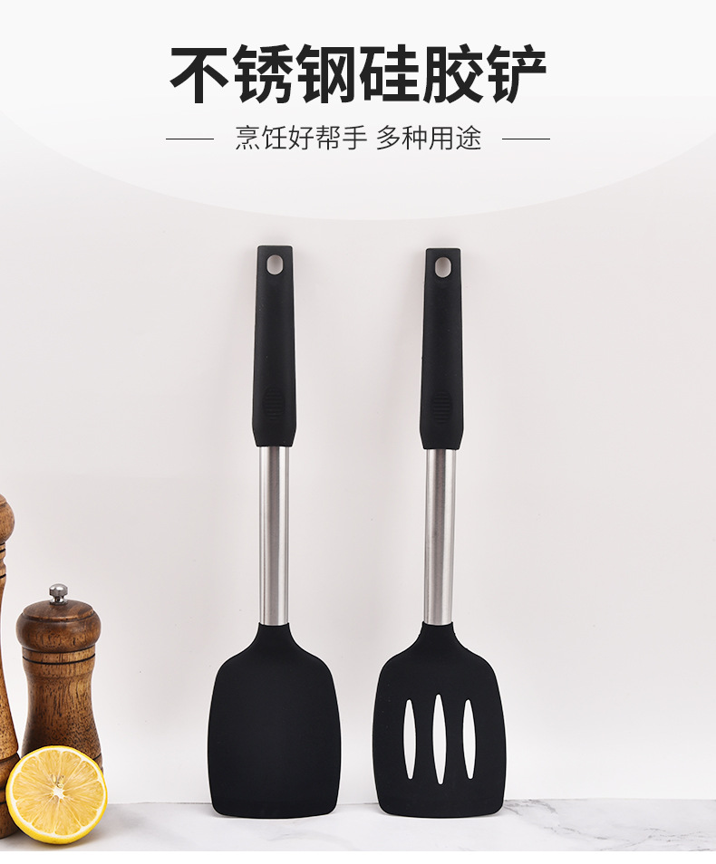 不锈钢耐高温硅胶铲不粘锅专用护锅铲炒菜铲子硅胶厨具煎铲两件套