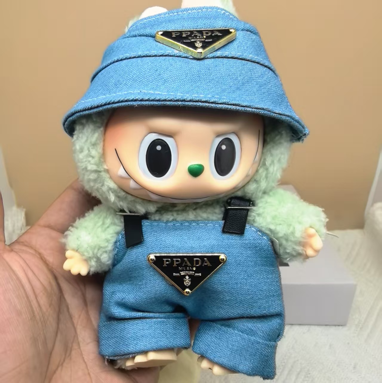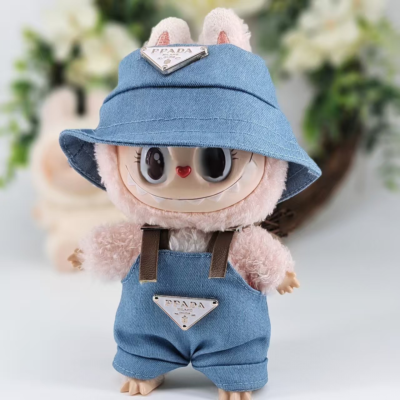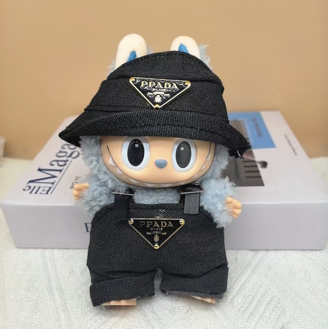 一二代labubu娃衣17cm拉布布坐坐派对毛绒外衣服配饰倒三角背带裤