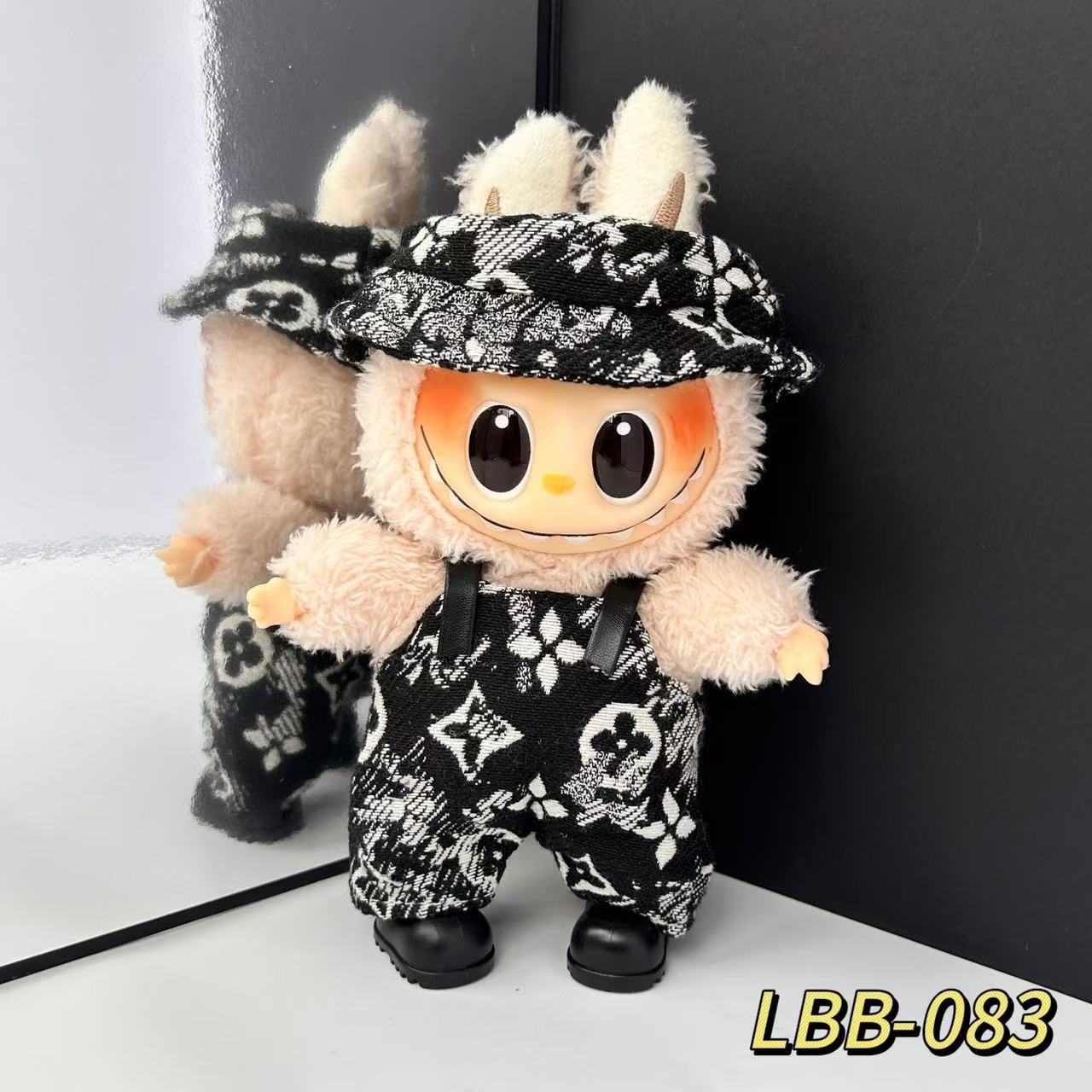 拉布布一二三代17cm娃娃衣服labubu大牌背带裤服装无娃潮酷背带裤