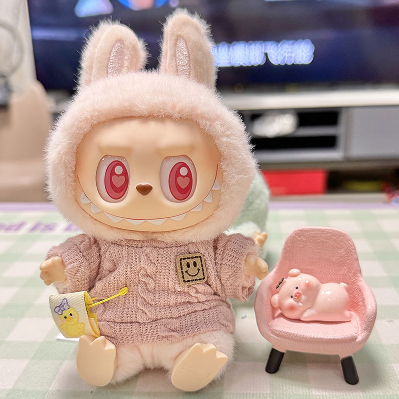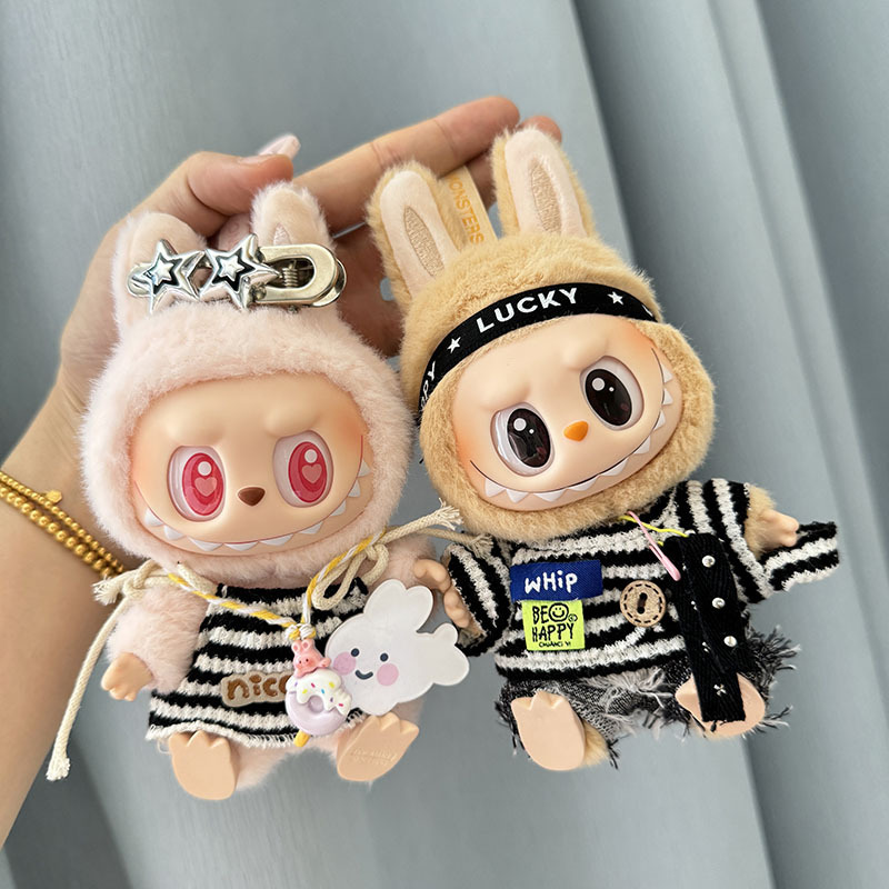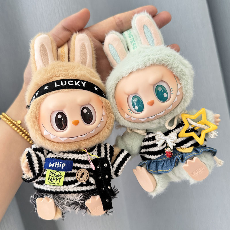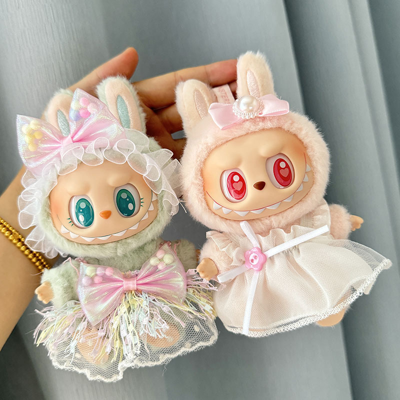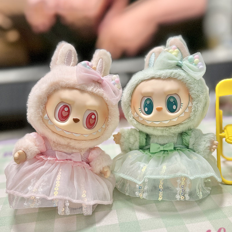 仅衣服] 二代盲盒Labubu衣服搪胶脸挂件拉布布坐坐派对系列娃衣萌