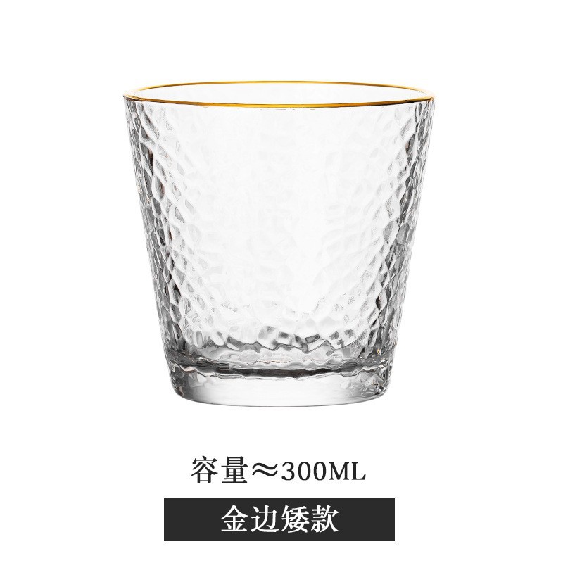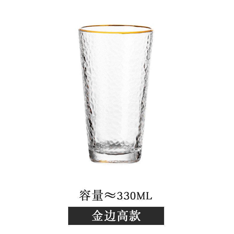 透明玻璃杯锤纹杯子描金边家用咖啡杯冷萃杯专用果汁早餐杯套装