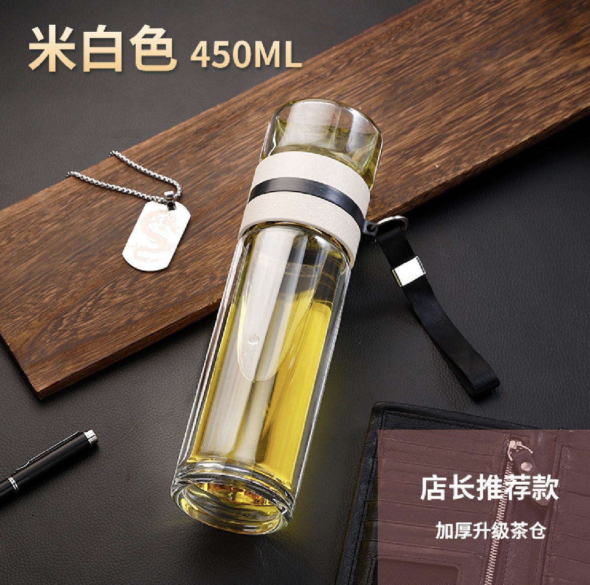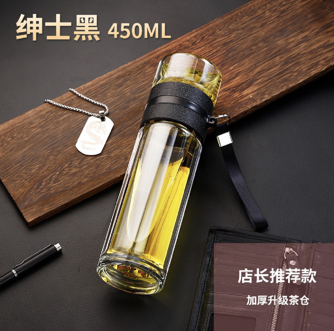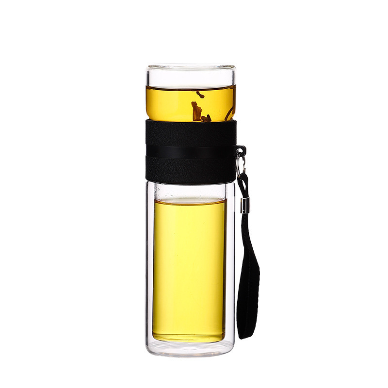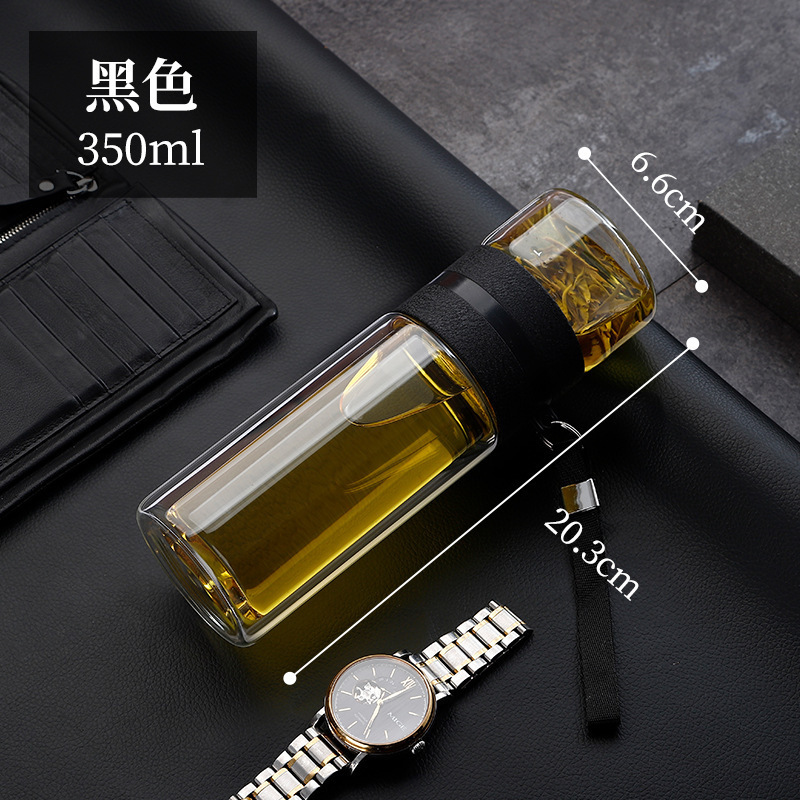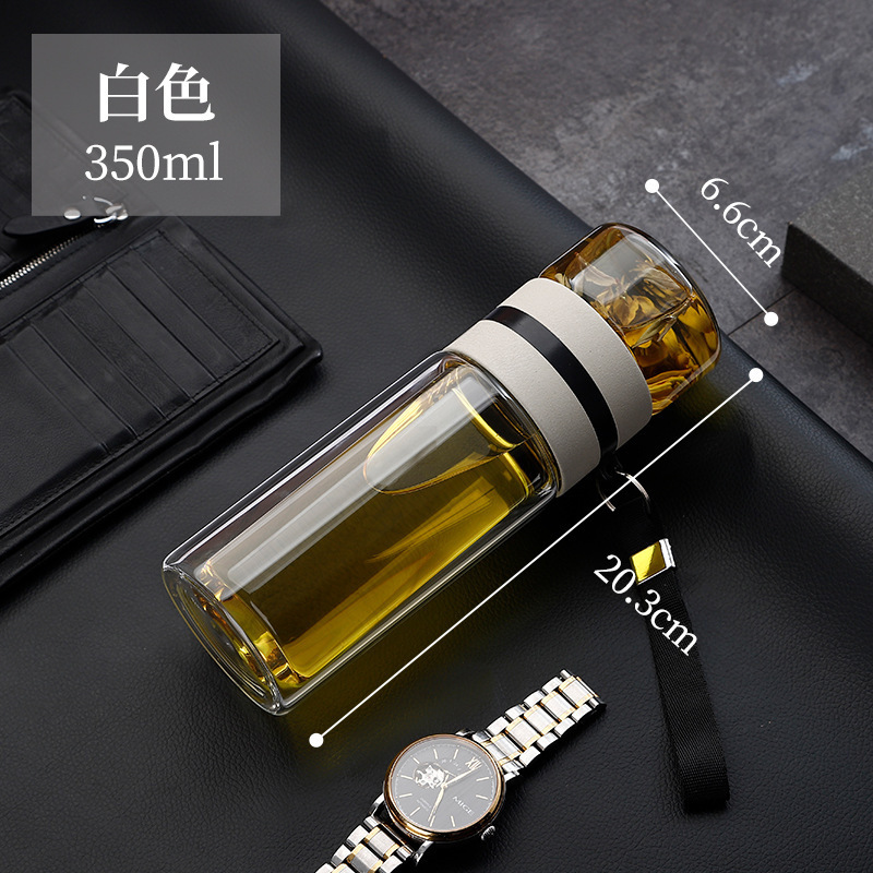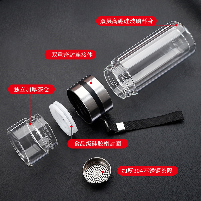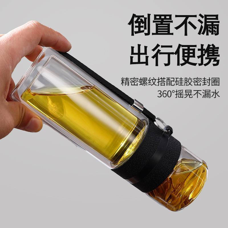双层泡茶杯玻璃茶水分离杯带提绳车载商务耐高温便携防漏水杯