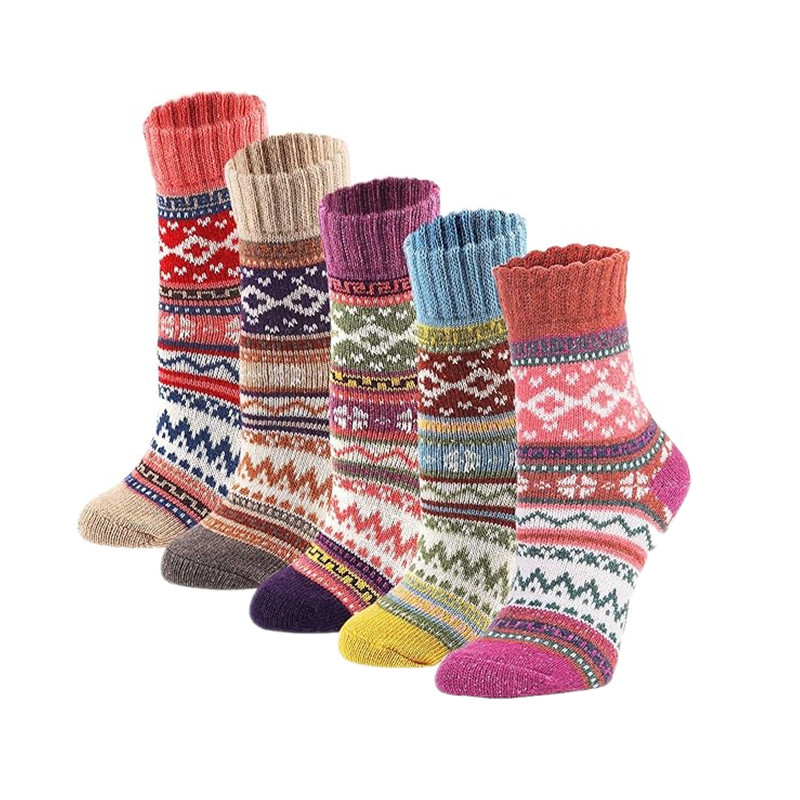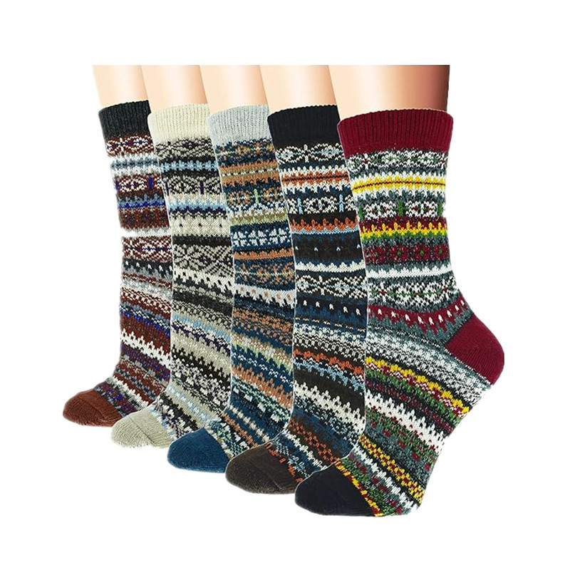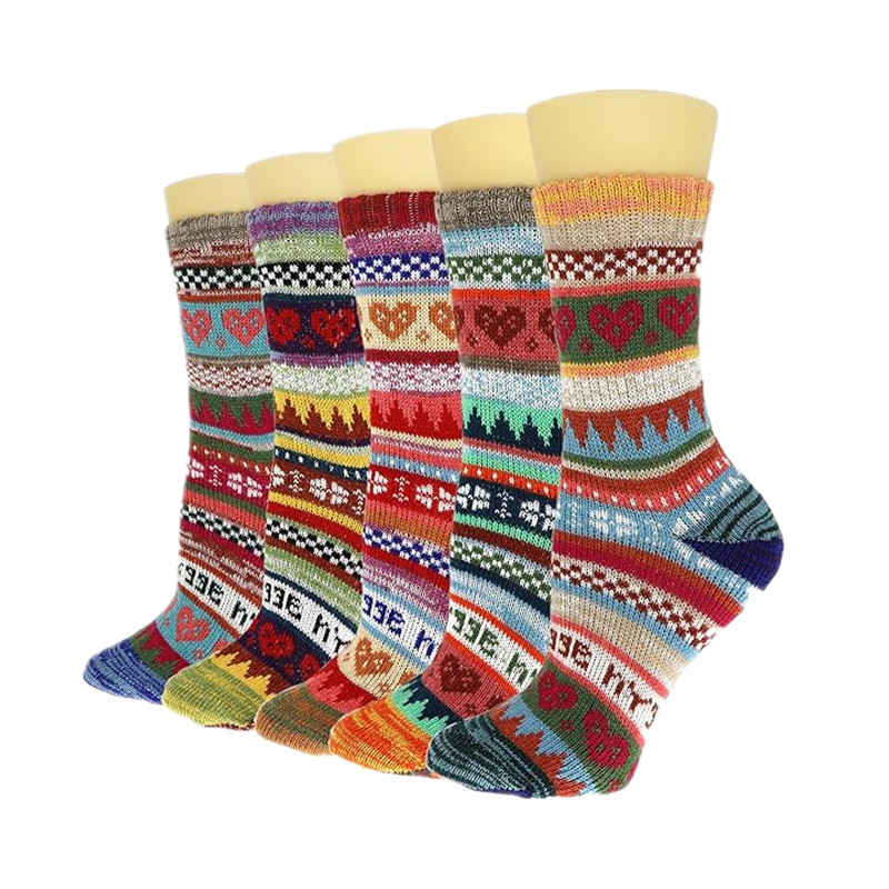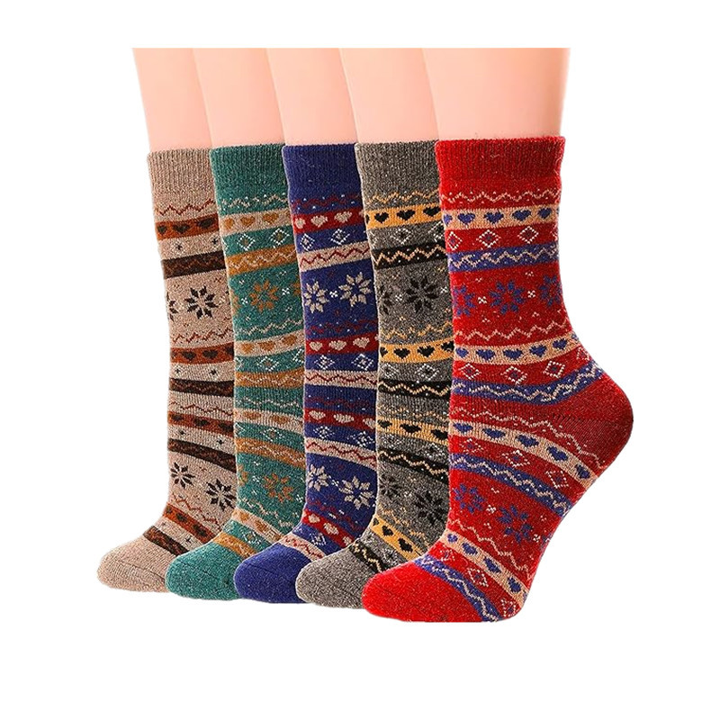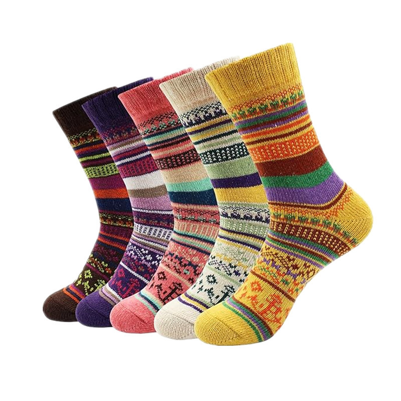 亚马逊跨境袜子秋冬女式加厚保暖羊毛袜民族风运动中筒袜男式长袜