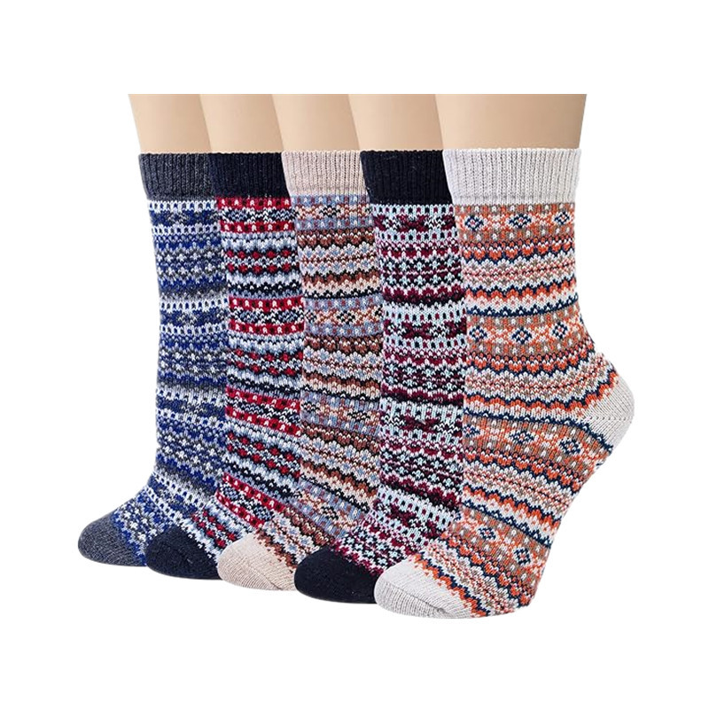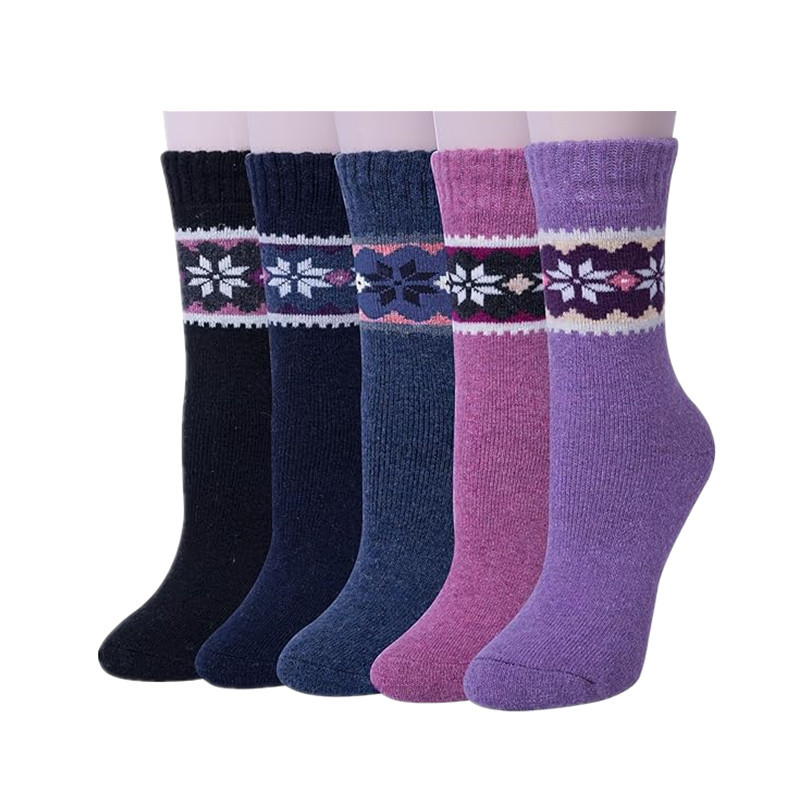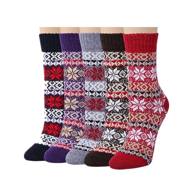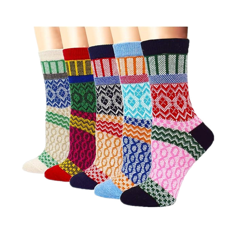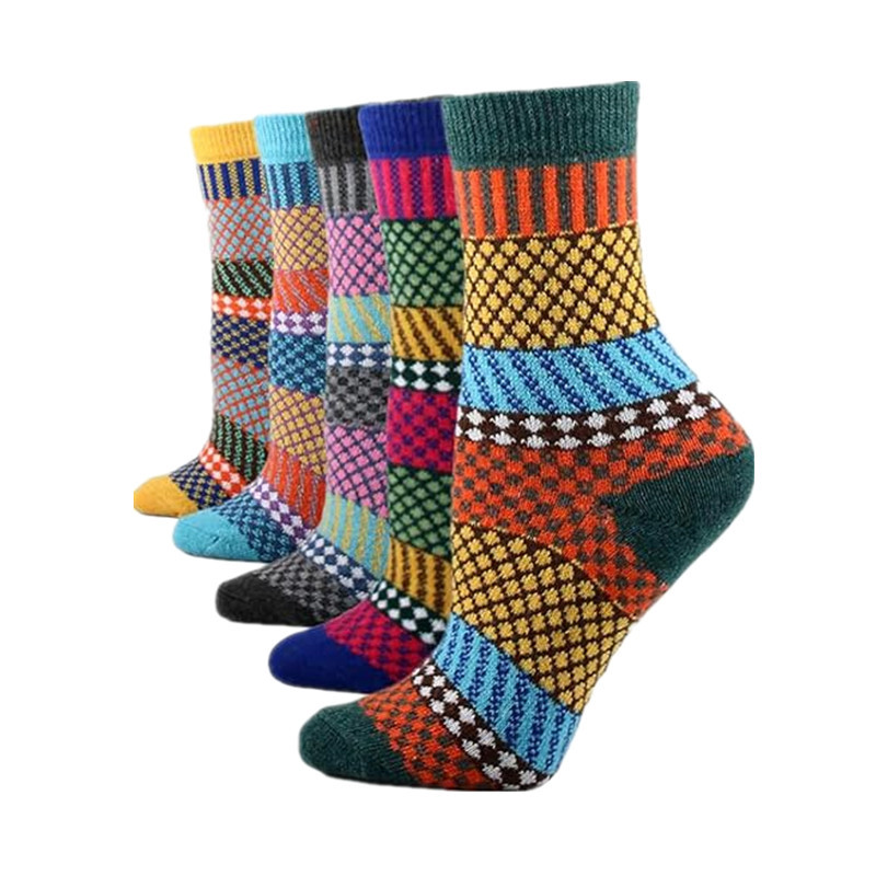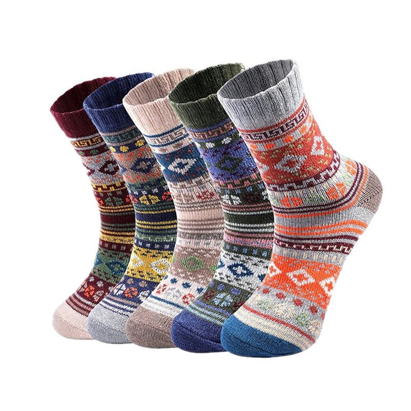 亚马逊跨境袜子秋冬女式加厚保暖羊毛袜民族风运动中筒袜男式长袜
