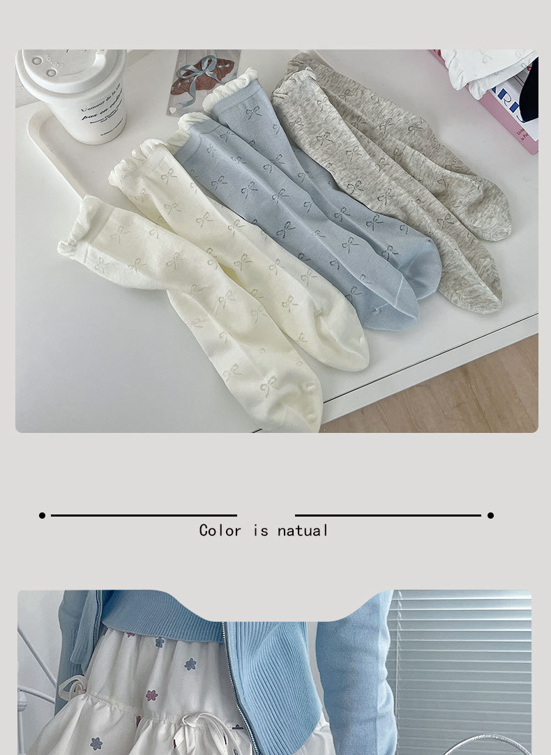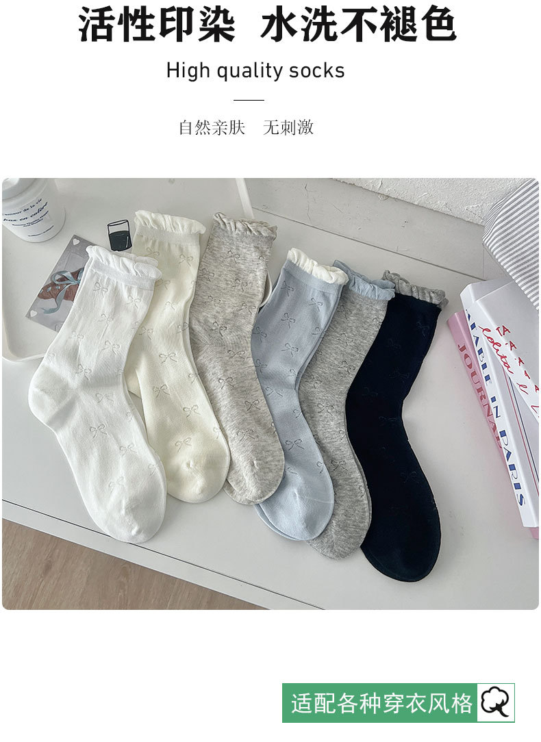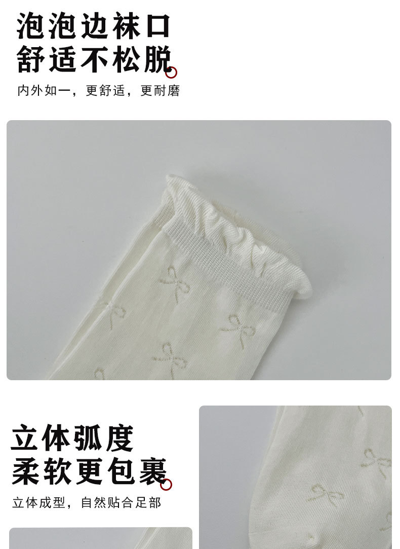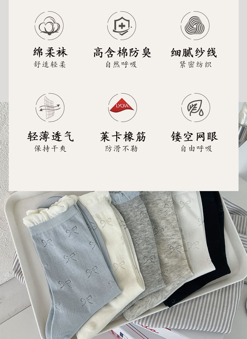 25春夏新款镂空蝴蝶结中筒袜女袜批发日系jk洛丽塔白色薄款女袜子