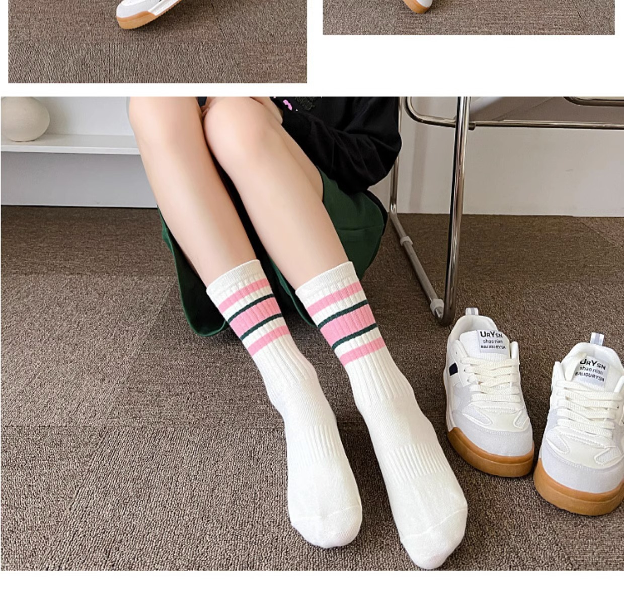 诸暨袜子女秋冬中筒袜纯色棉袜ins潮百搭无骨堆堆袜女学生长袜
