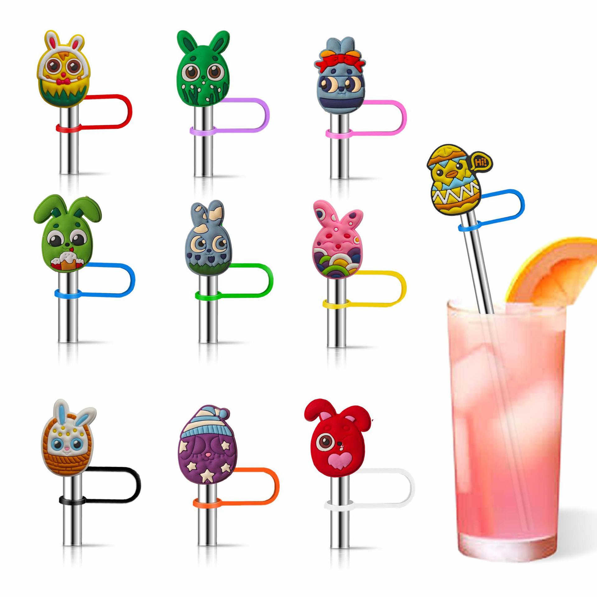 stanley复活节吸管帽亚马逊热卖希音软胶吸管套软胶吸管塞卡通奶
