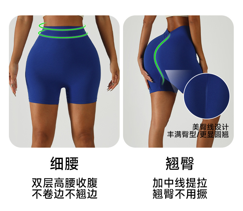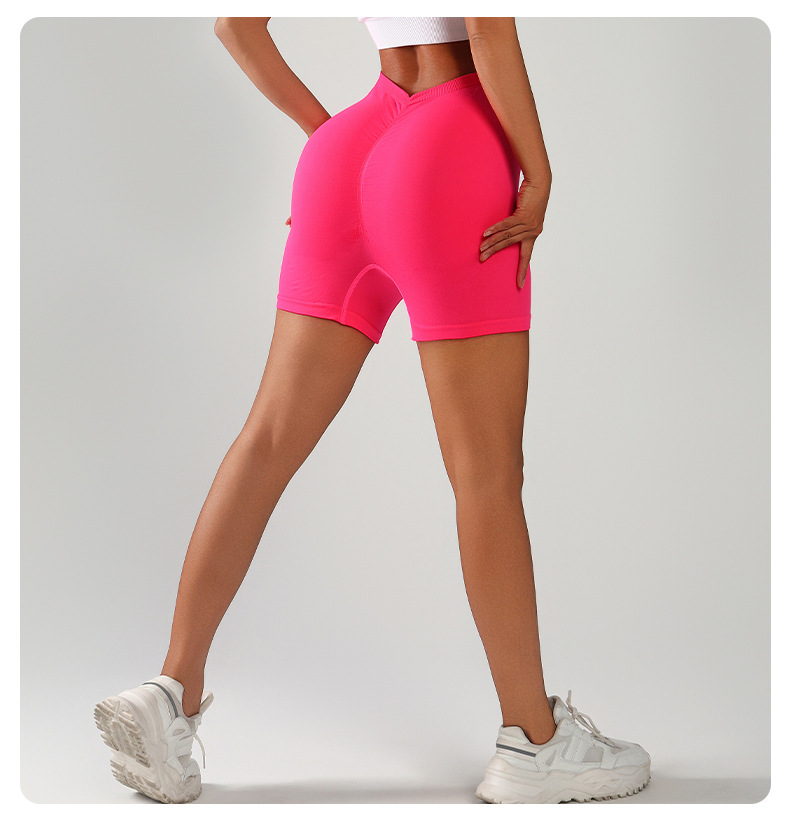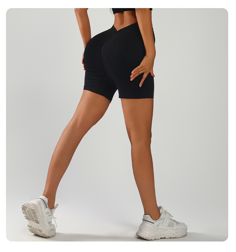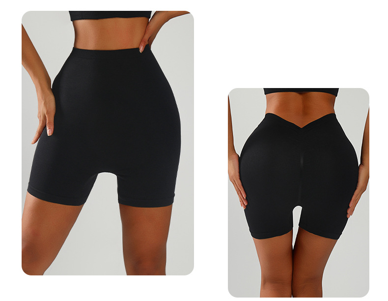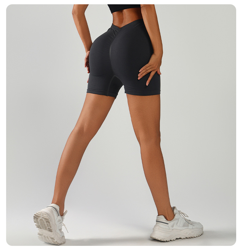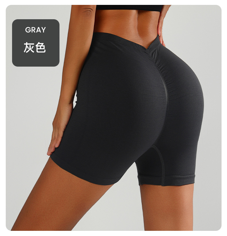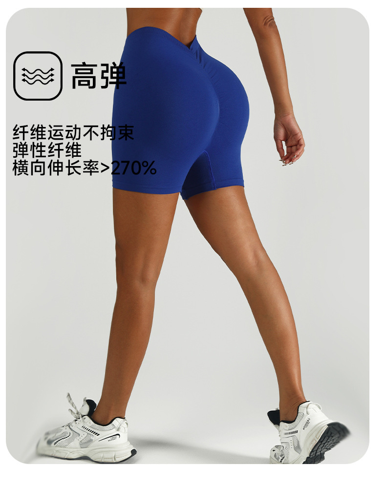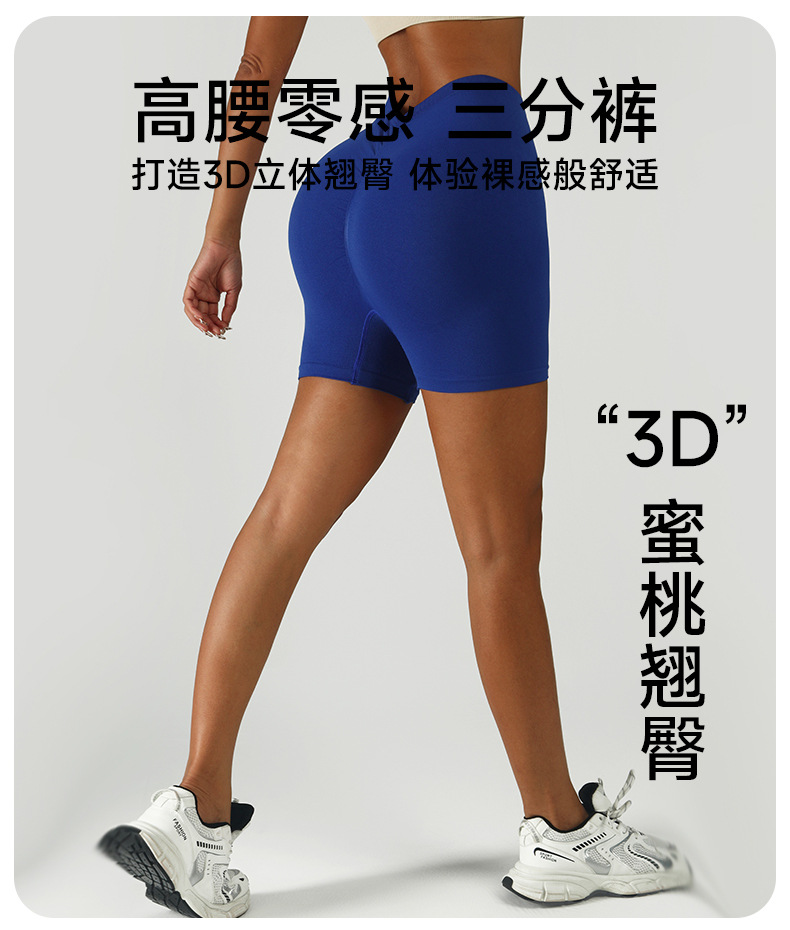 亚马逊后腰深V紧身皱皱裤女无缝速干运动翘臀瑜伽短裤三分健身裤
