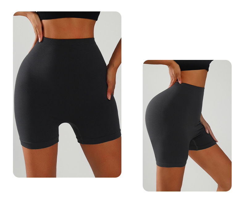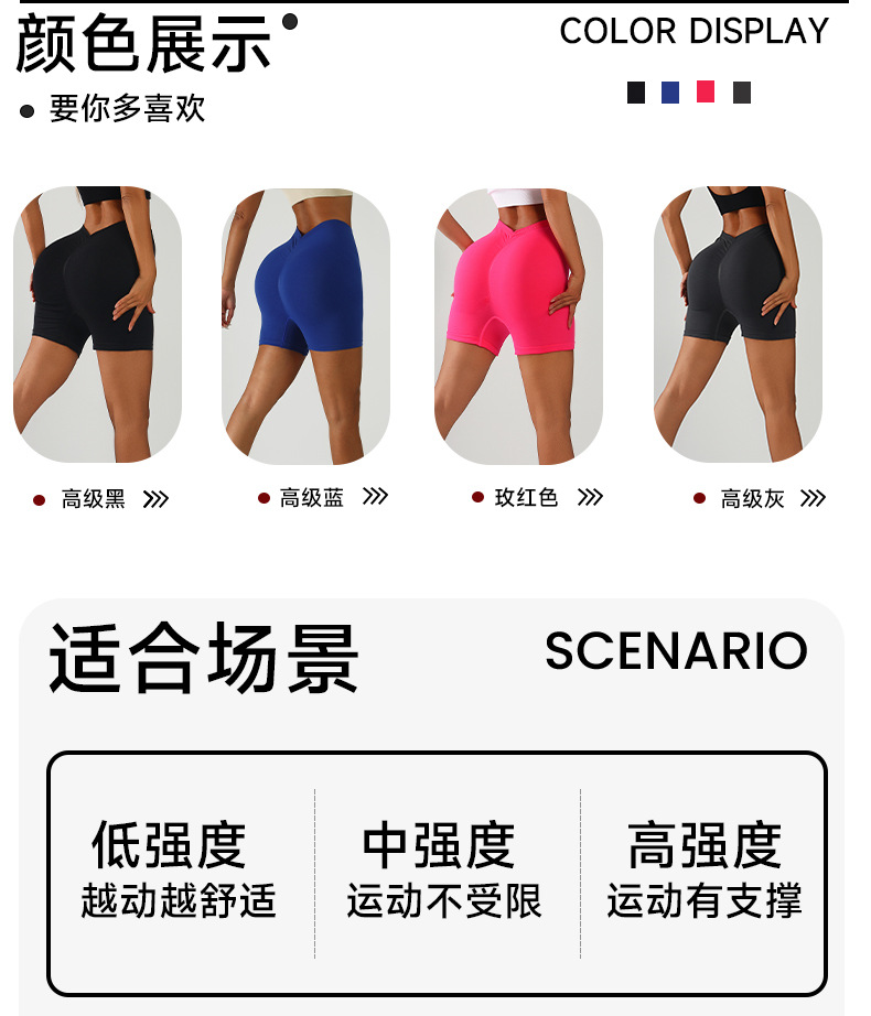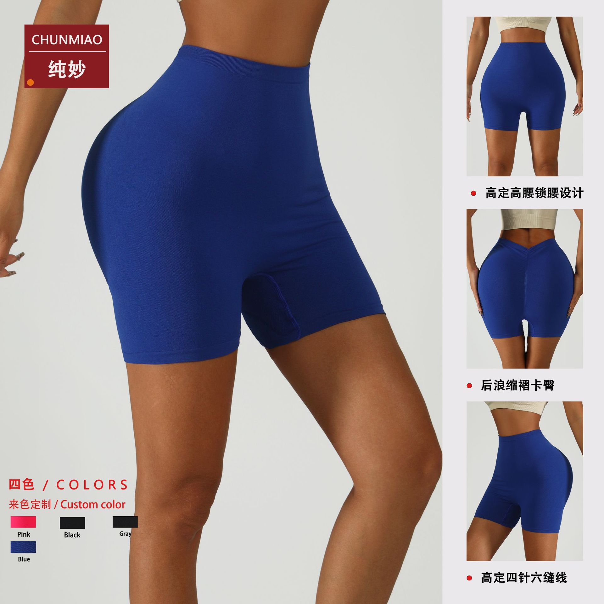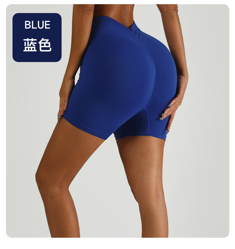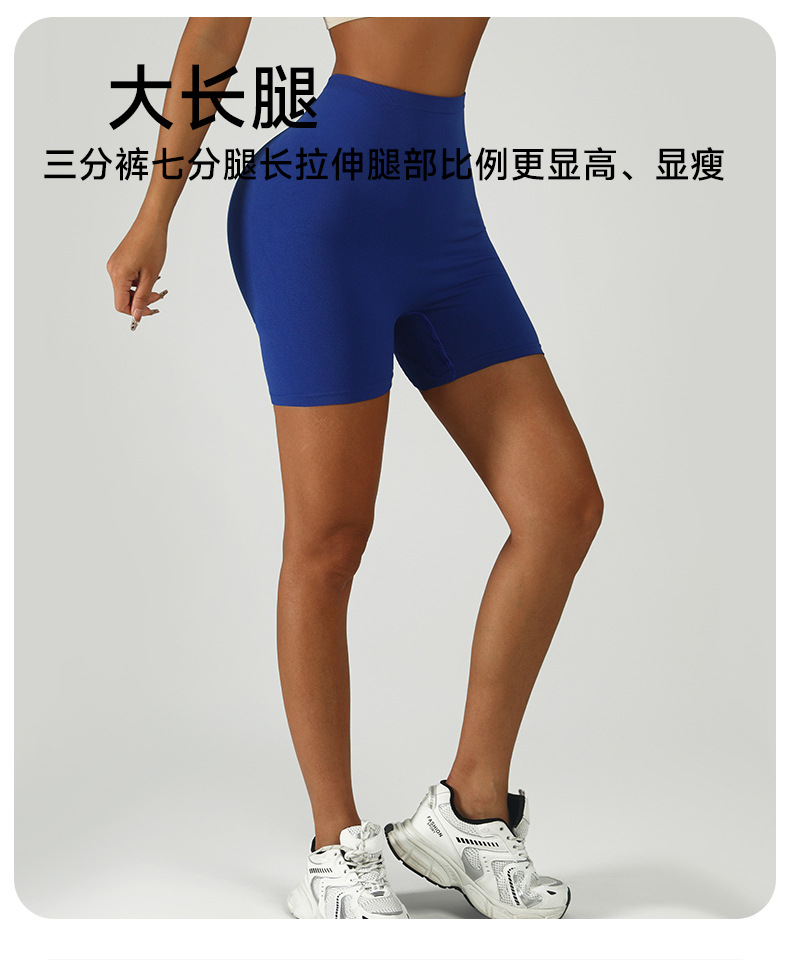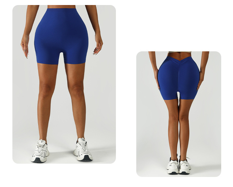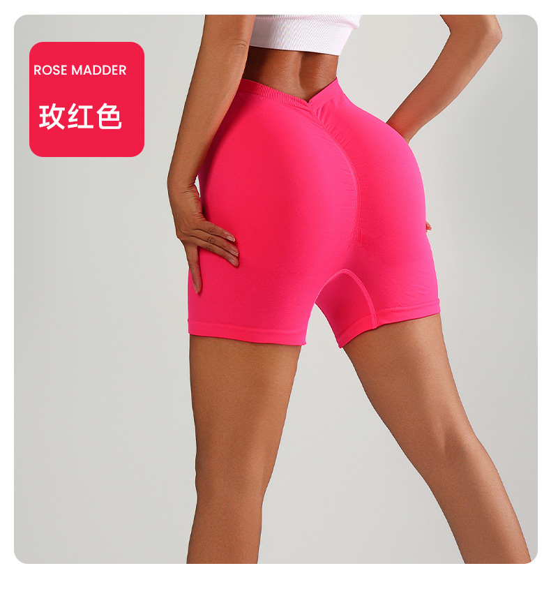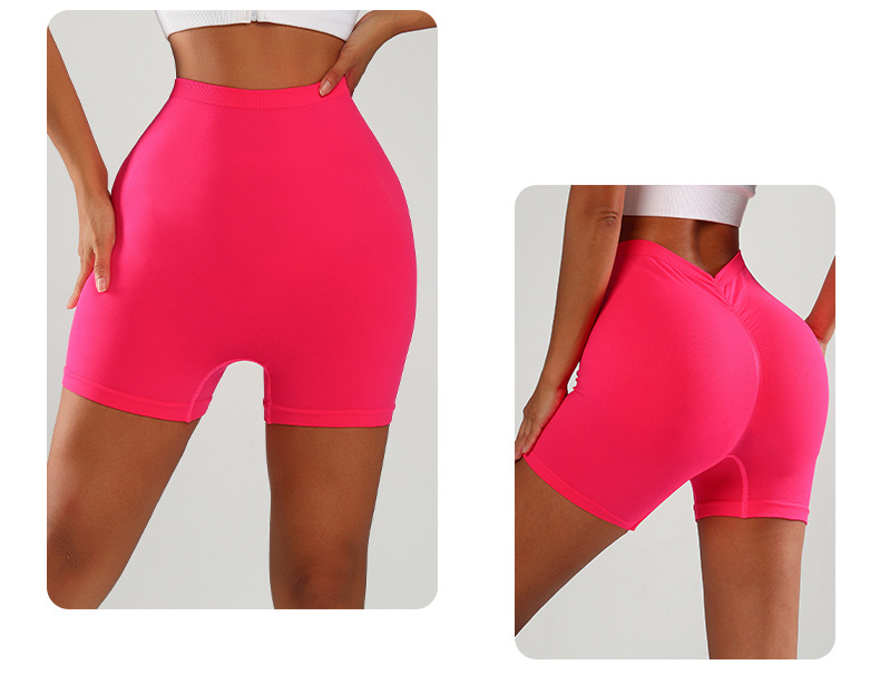 亚马逊后腰深V紧身皱皱裤女无缝速干运动翘臀瑜伽短裤三分健身裤