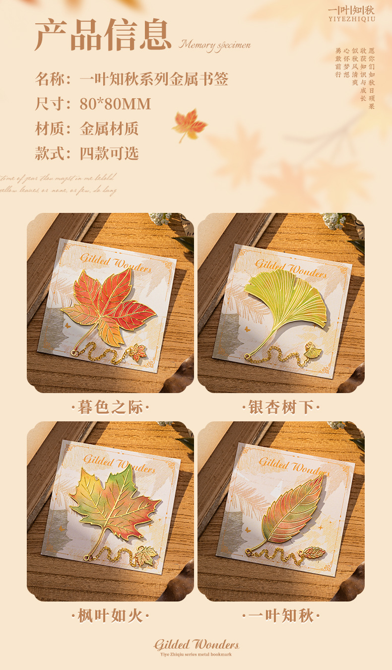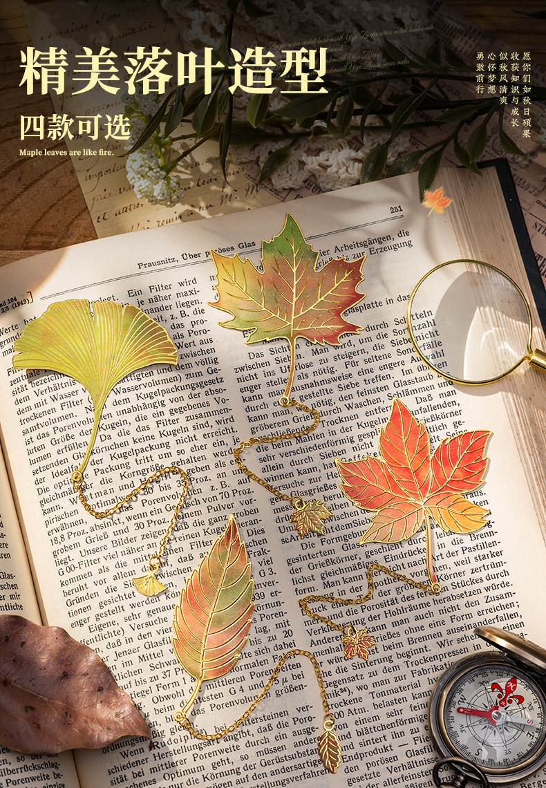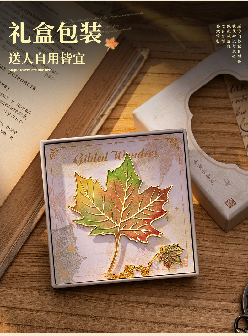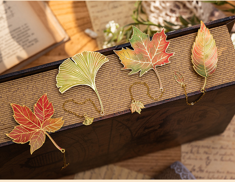 复古树叶金属书签学生毕业礼物感叶脉高颜值文创礼盒纪念品可定