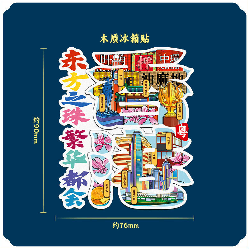 香港冰箱贴磁吸贴立体木质城市创意厨房礼品旅游文创冰箱贴纪念品