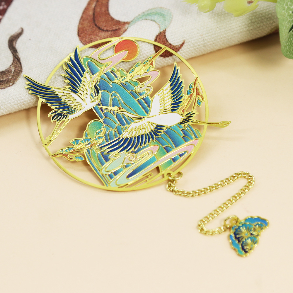故宫博物院国潮书签黄铜艺术文化仙鹤狐狸教师节吊坠礼盒精致清新
