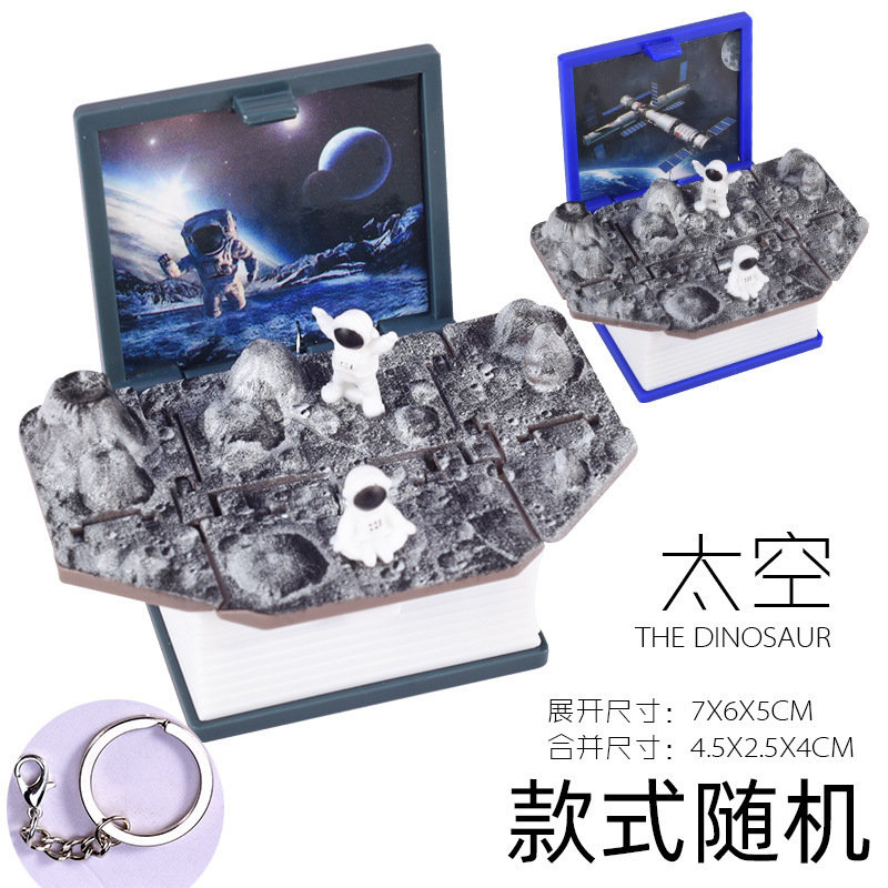 3D立体恐龙折叠爆弹书mini钥匙扣太空宇航员益智城堡解压创意饰品