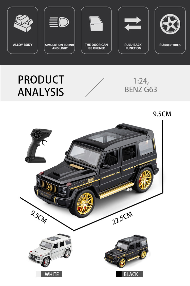 1:24合金车模 遥控合金奔驰G63车(包电)带遥控器男孩玩具仿真模型