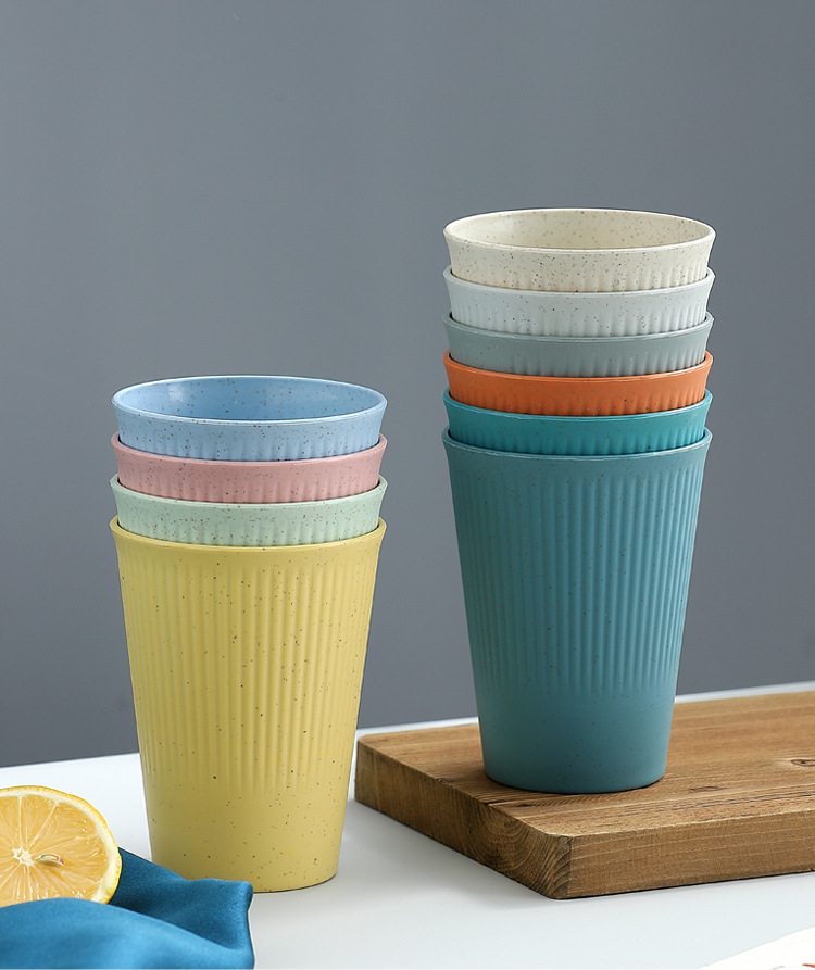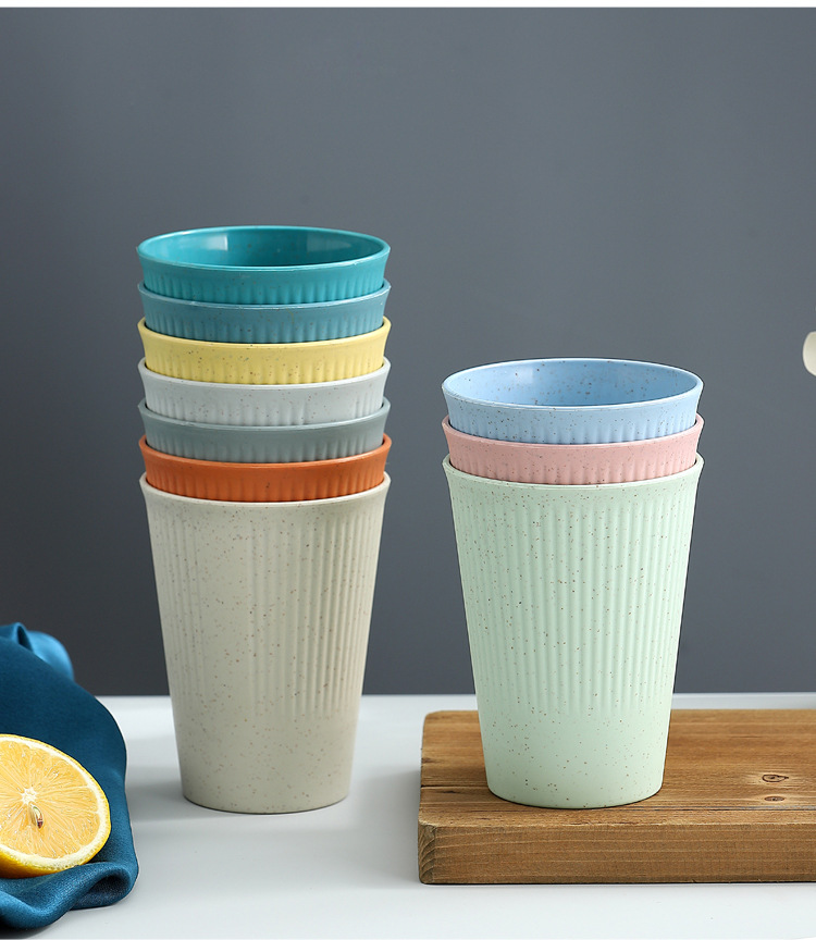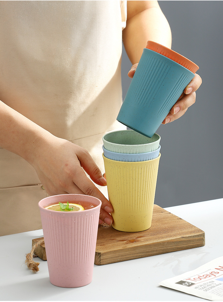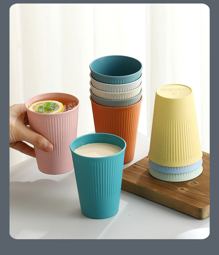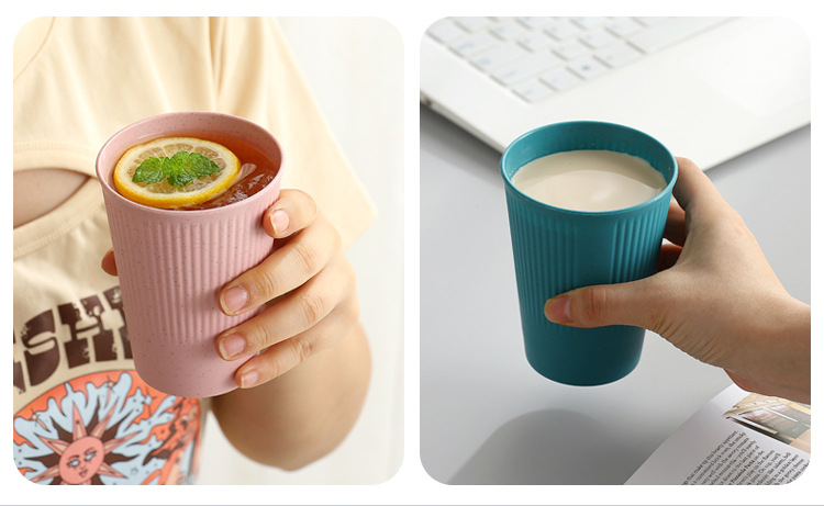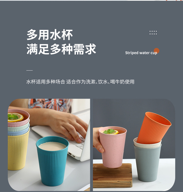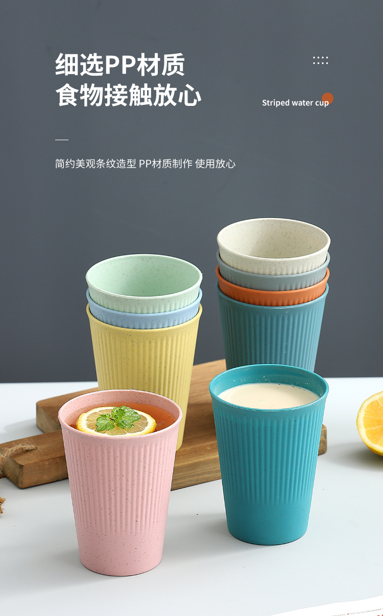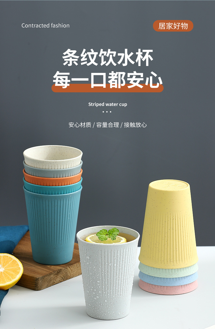 小麦秸秆条纹饮水 咖啡杯情侣漱口杯学生早餐牛奶麦片饮料杯直销