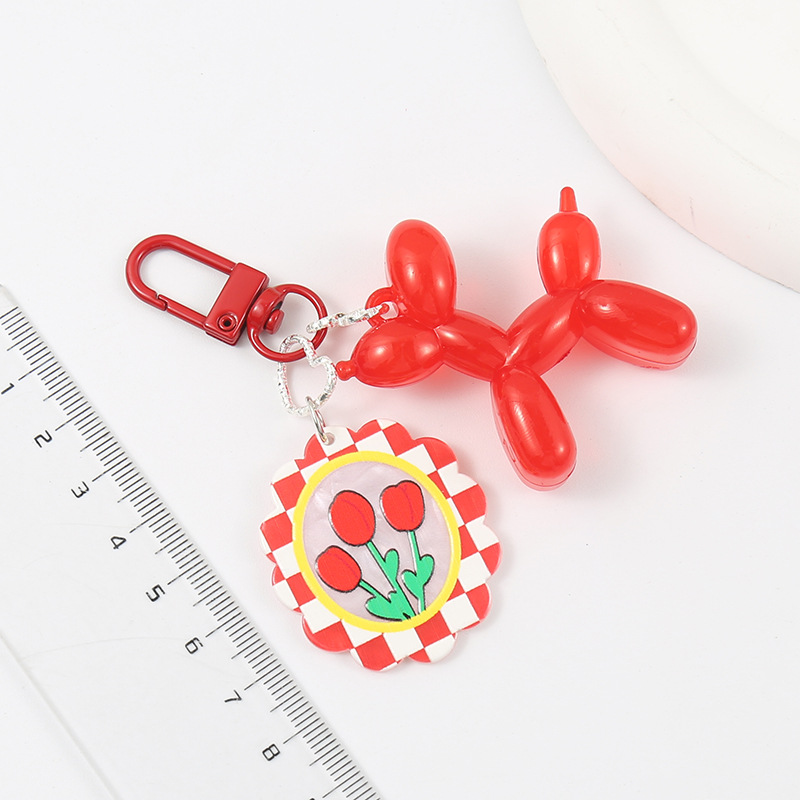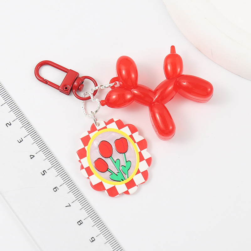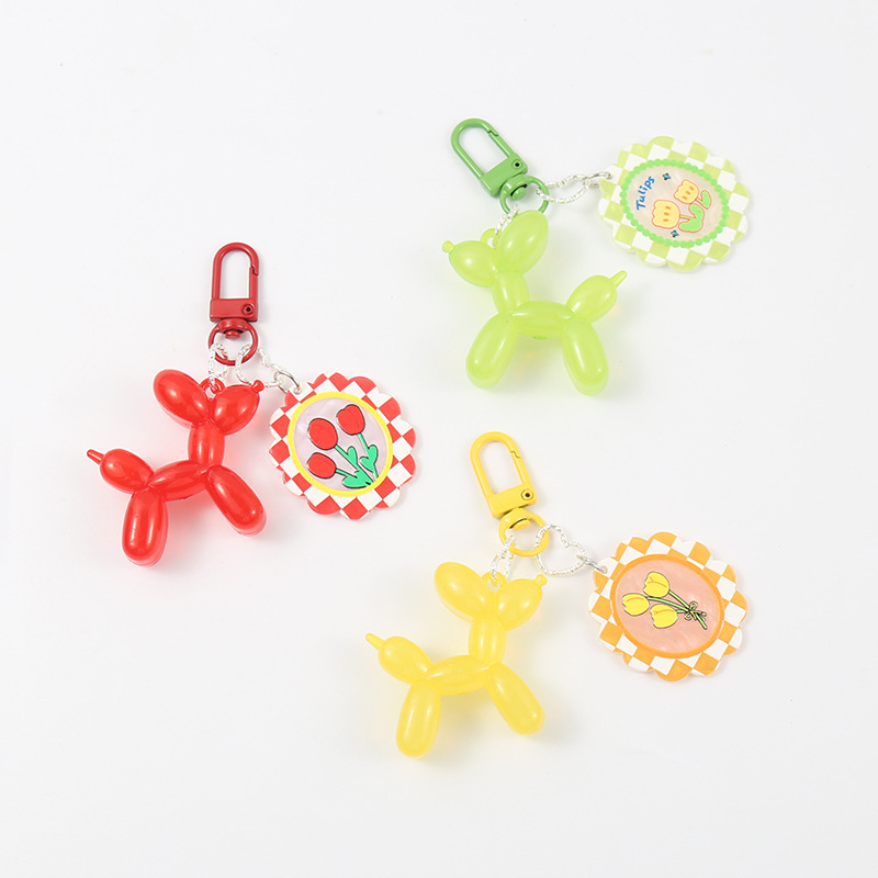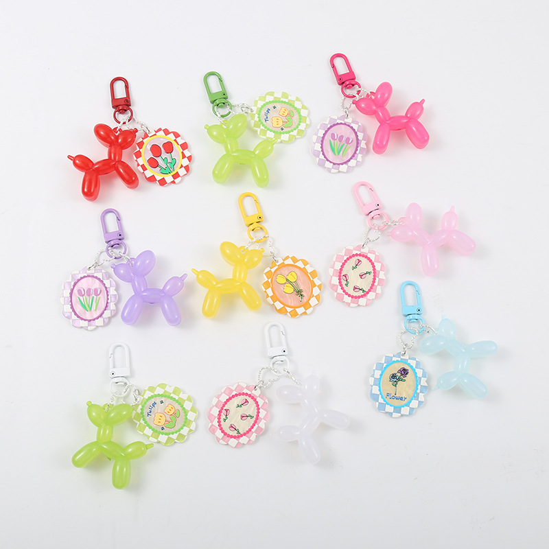 果冻气球狗钥匙扣 手工ins风花朵挂饰自制钥匙扣挂牌动物挂件饰品