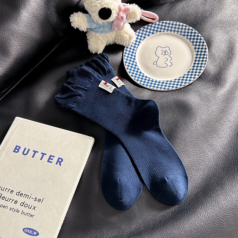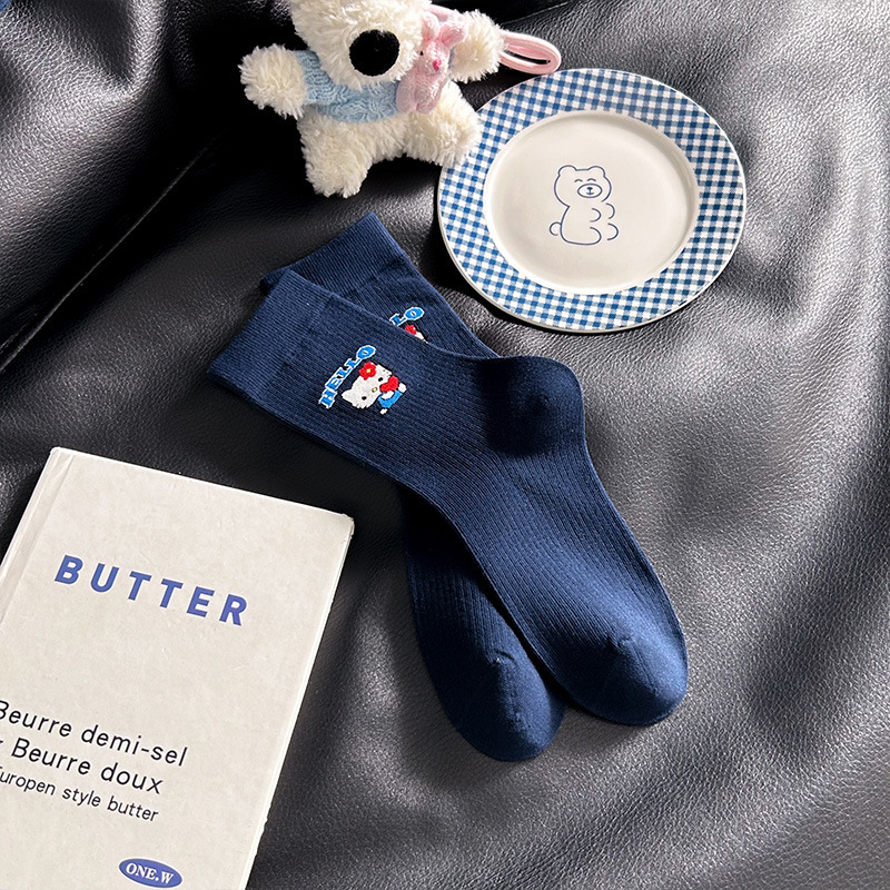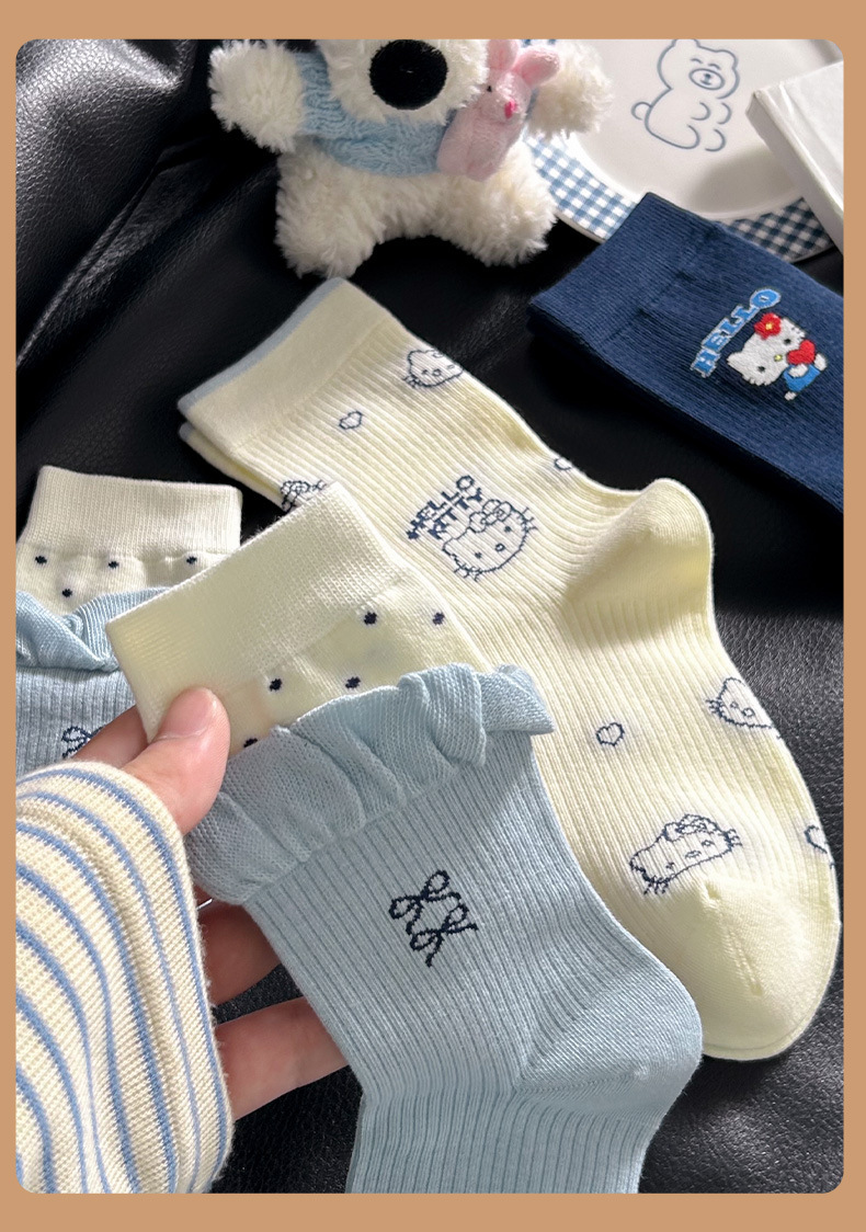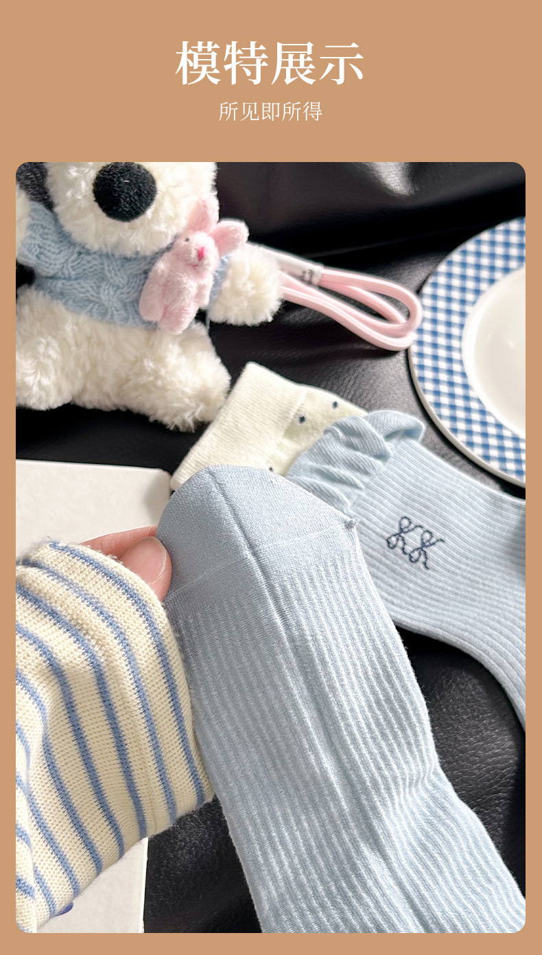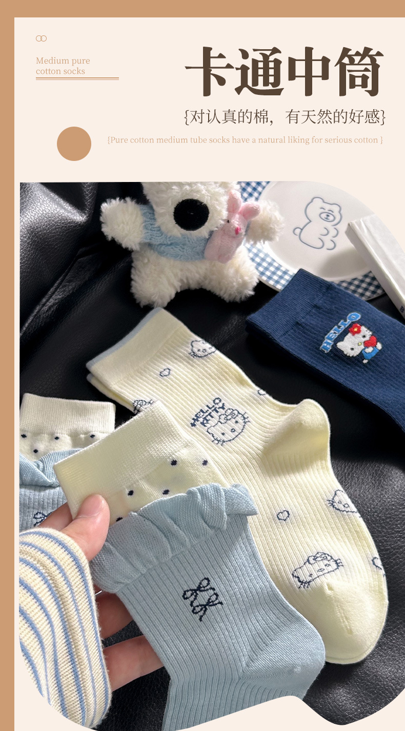 网红猫咪袜子女2025秋季新款可爱卡通中筒袜蓝白色系堆堆袜子日系