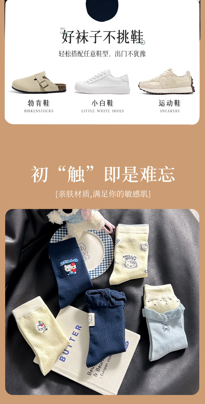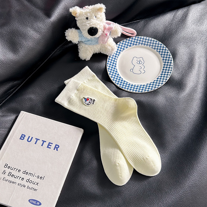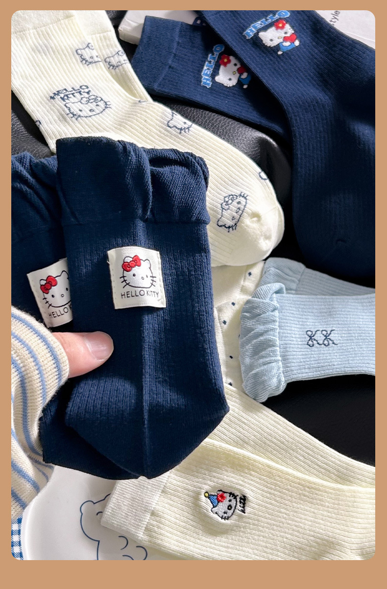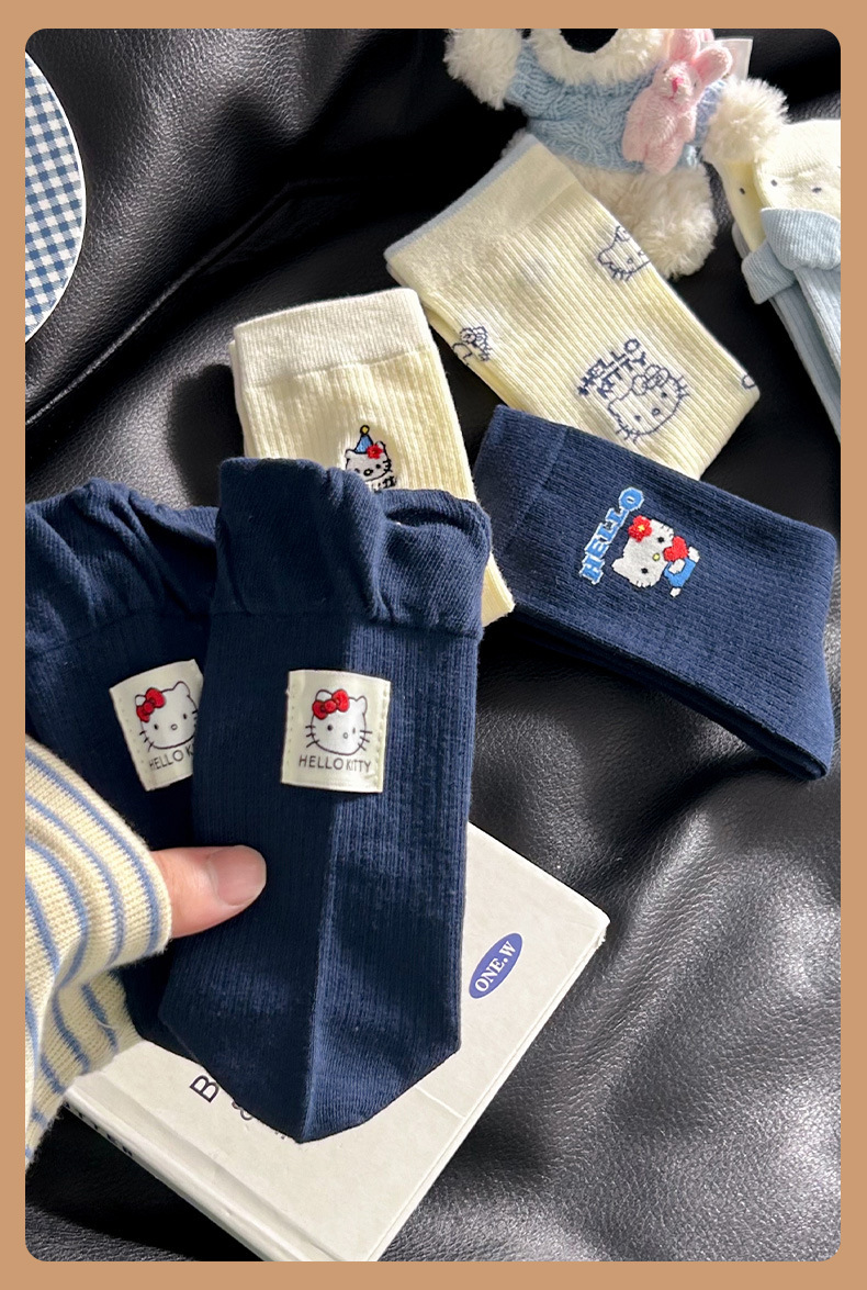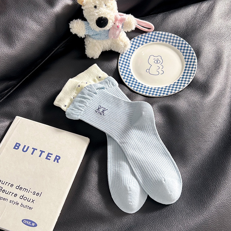 网红猫咪袜子女2025秋季新款可爱卡通中筒袜蓝白色系堆堆袜子日系
