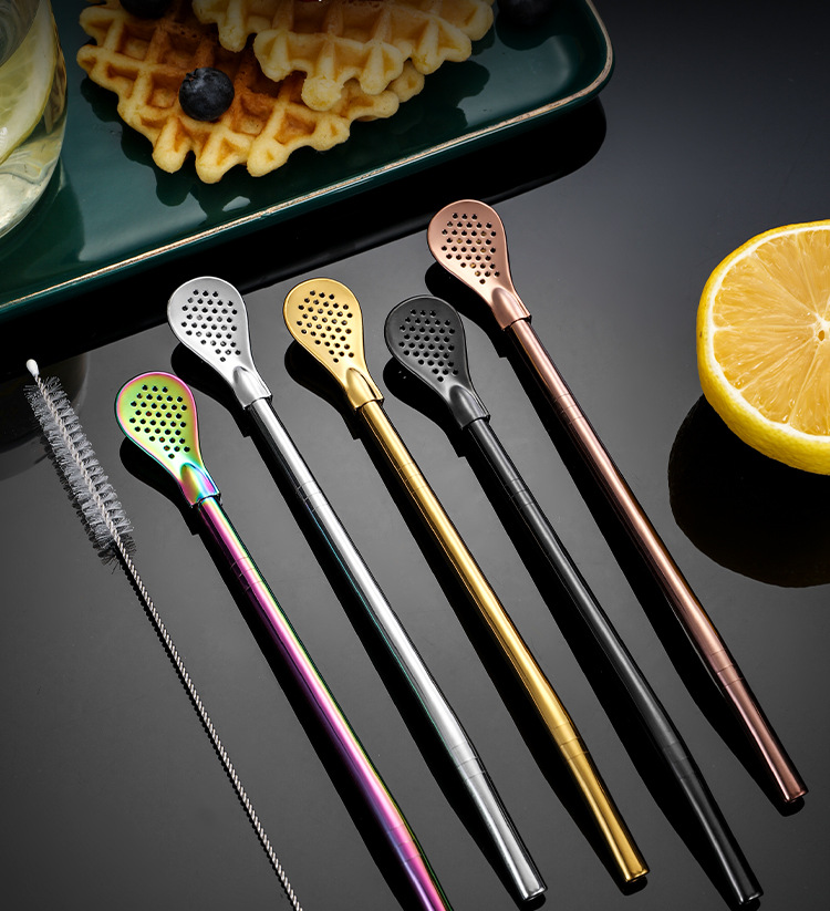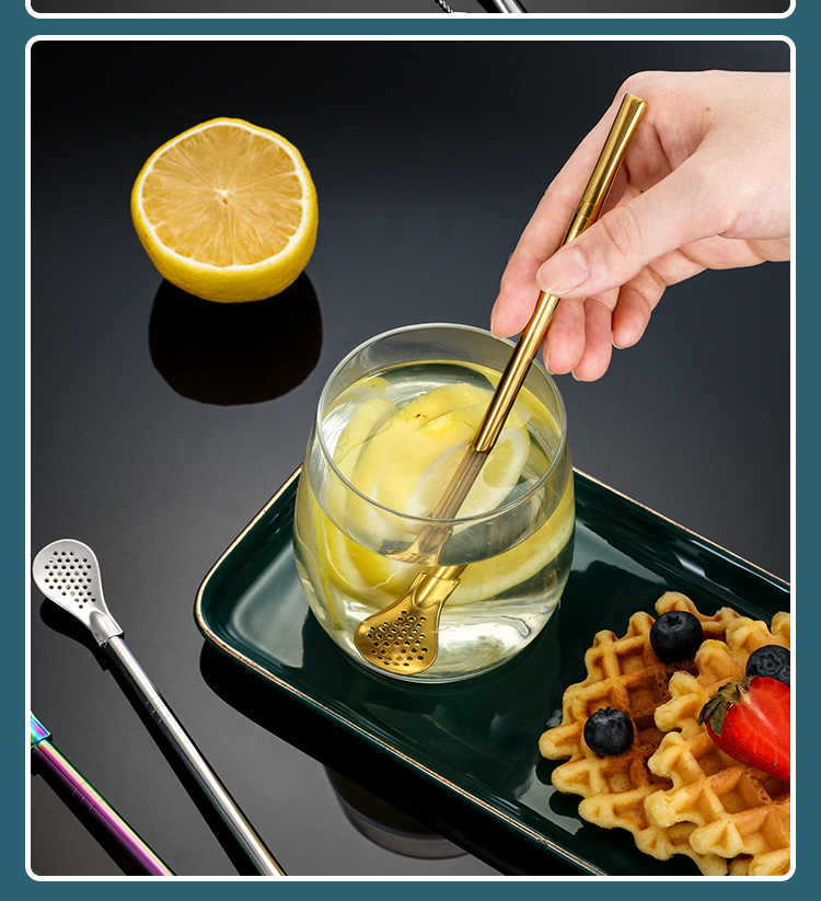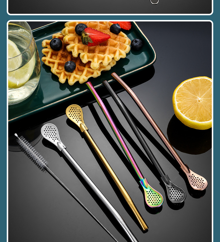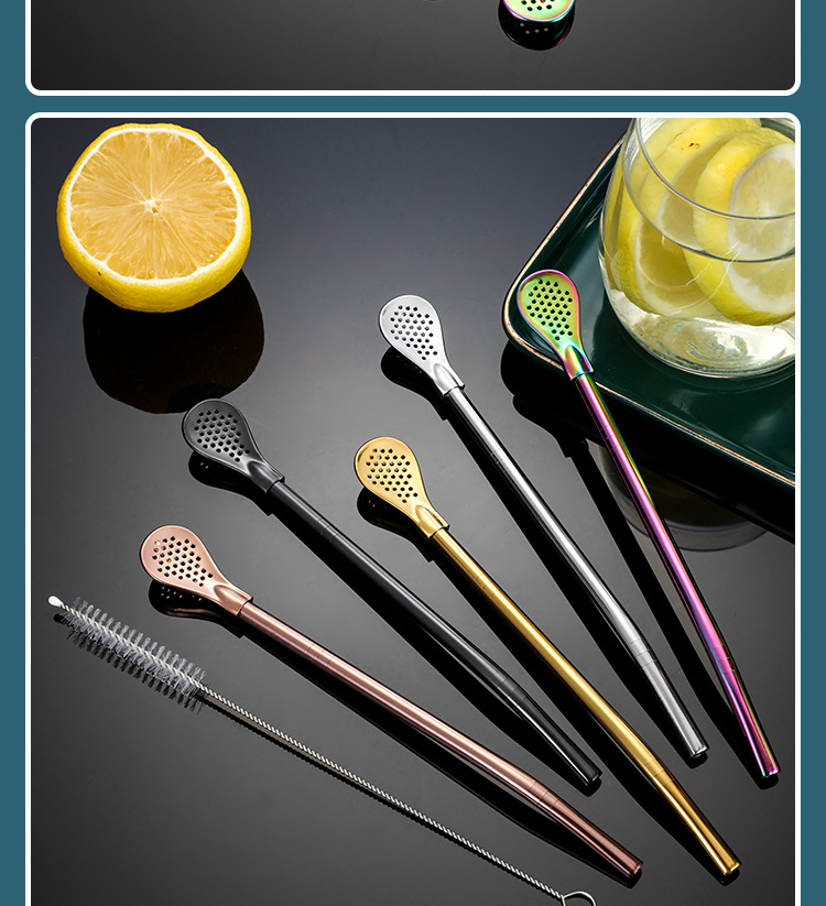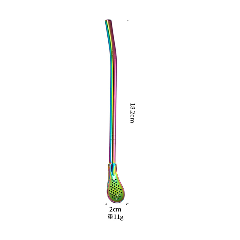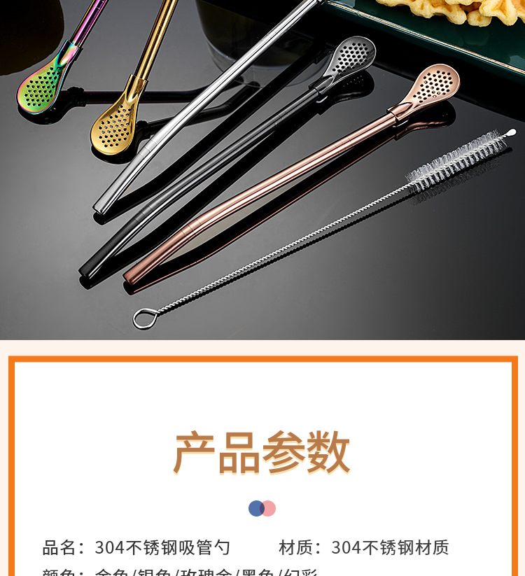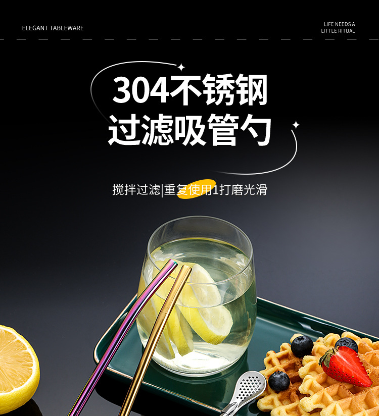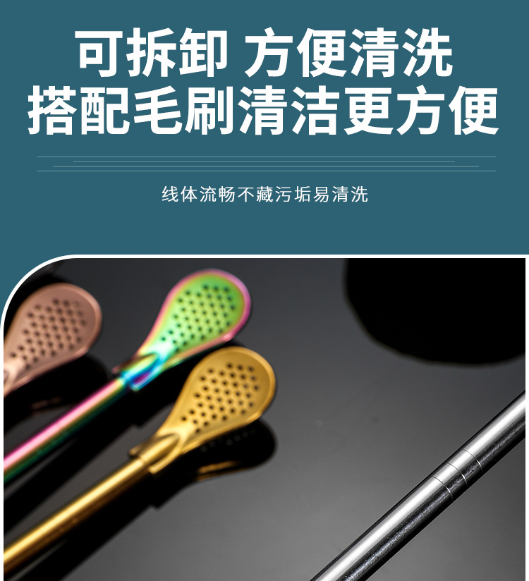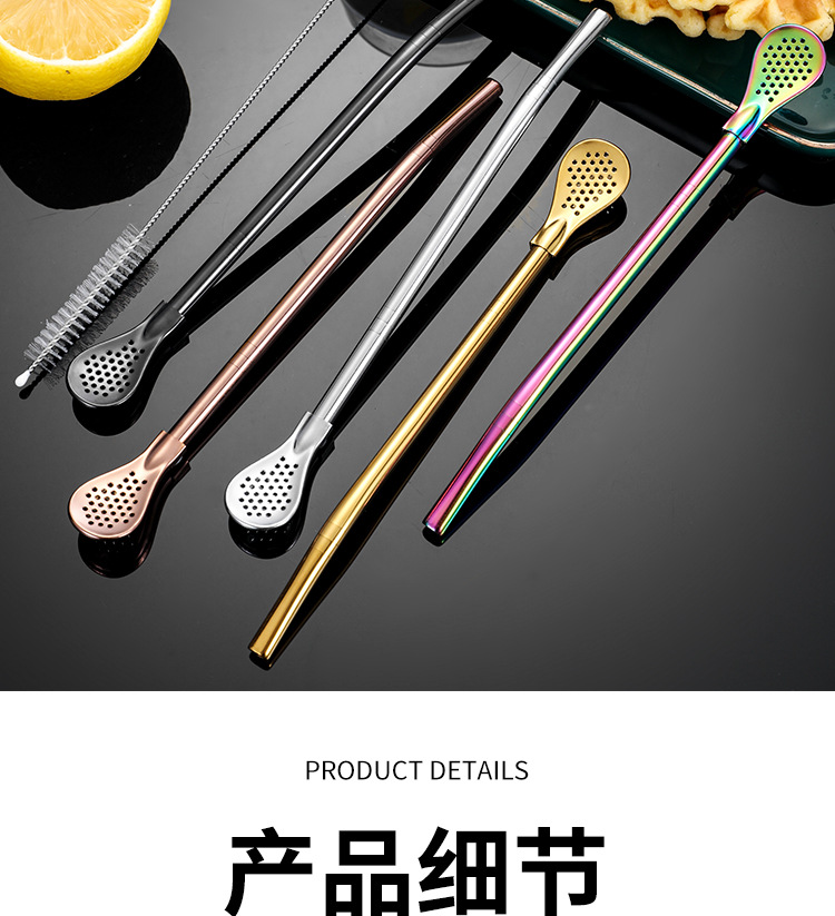 跨境网红吸管滤勺304不锈钢两用可拆卸过滤奶茶咖啡搅拌勺吸管勺