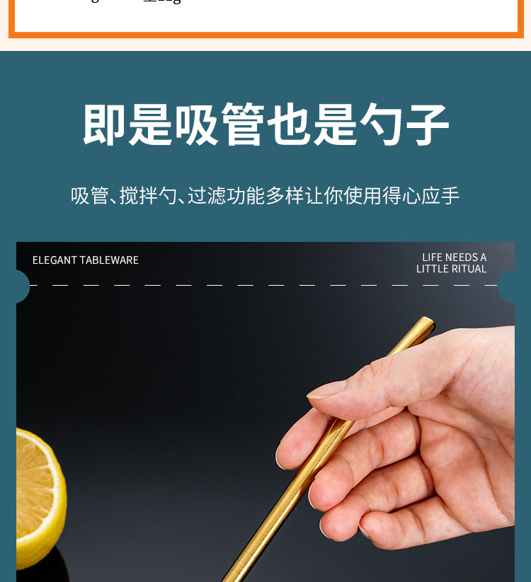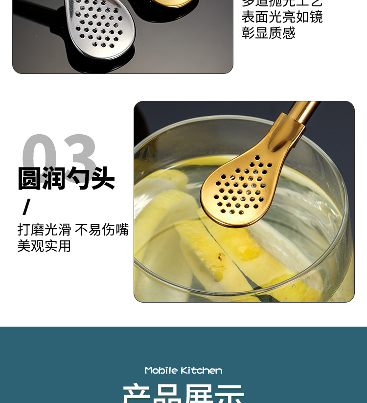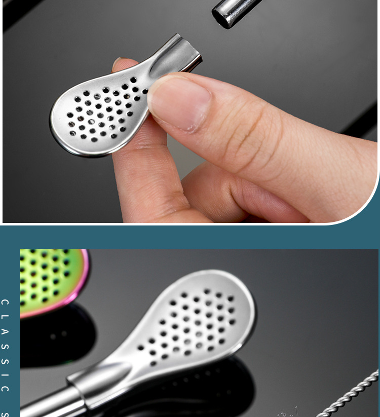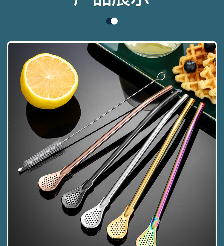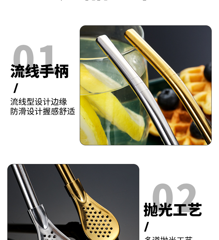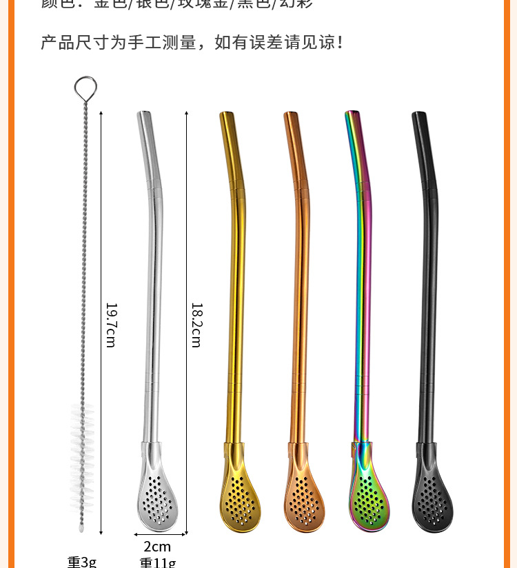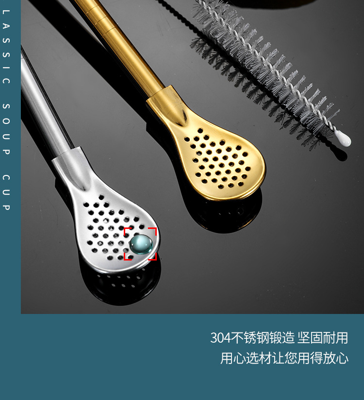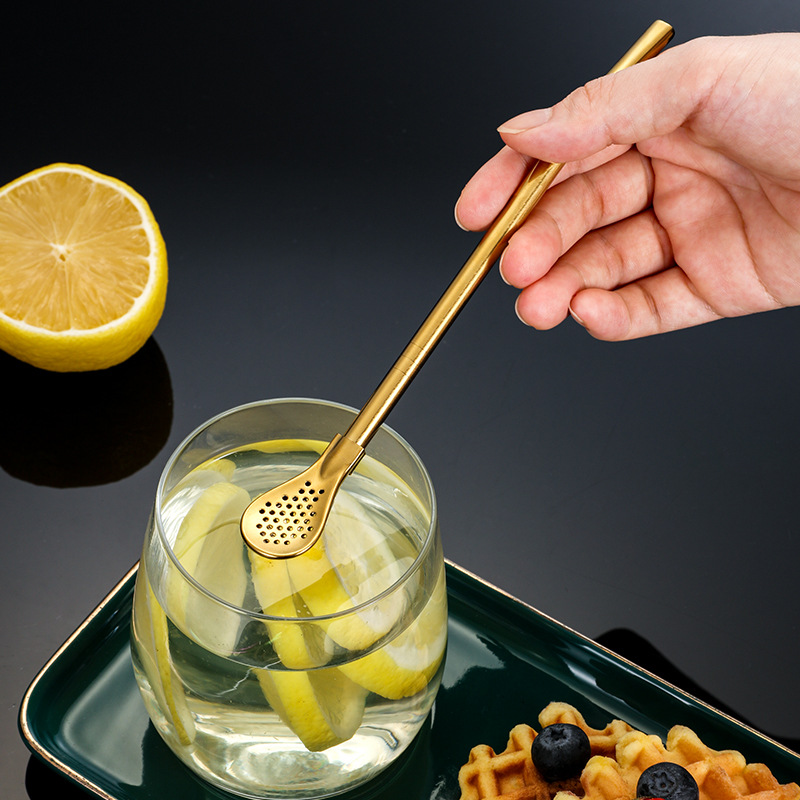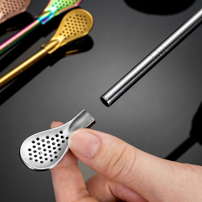 跨境网红吸管滤勺304不锈钢两用可拆卸过滤奶茶咖啡搅拌勺吸管勺