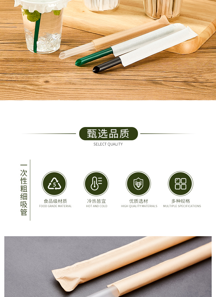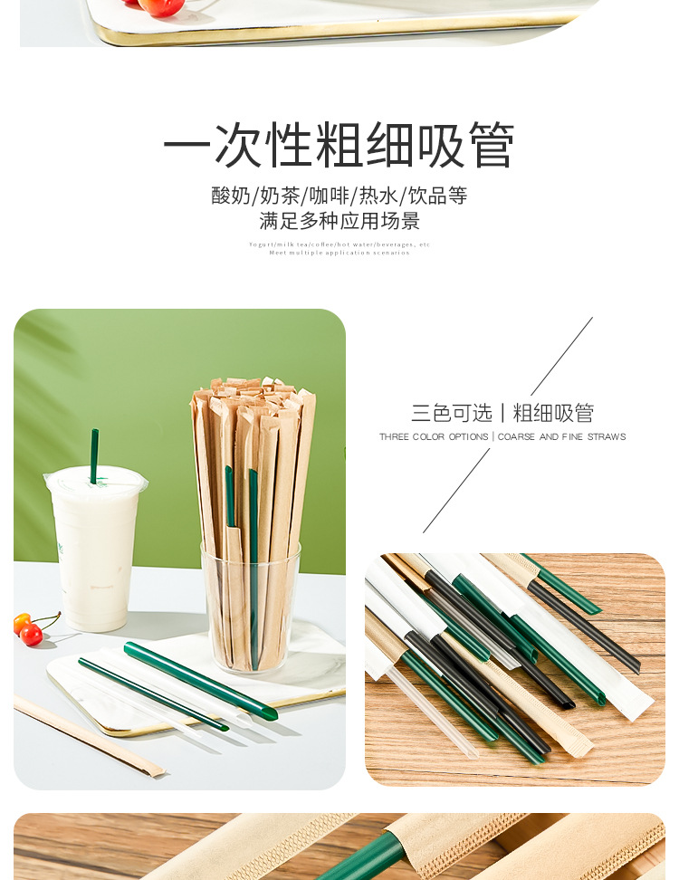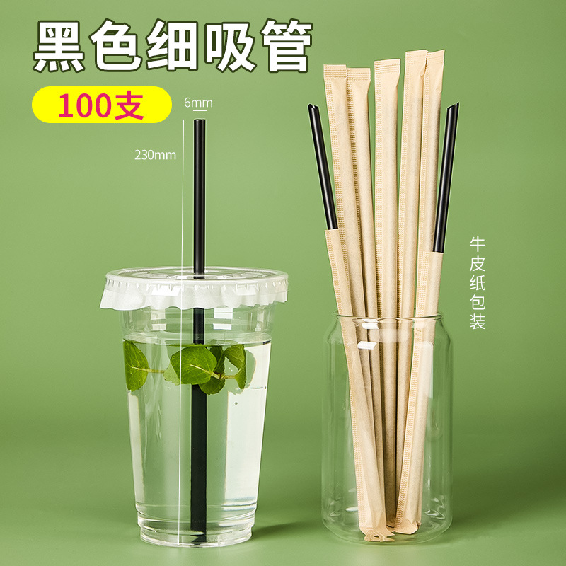 细咖啡吸管一次性单独包装 奶茶店专用小柠檬茶牛皮纸饮吸管商用