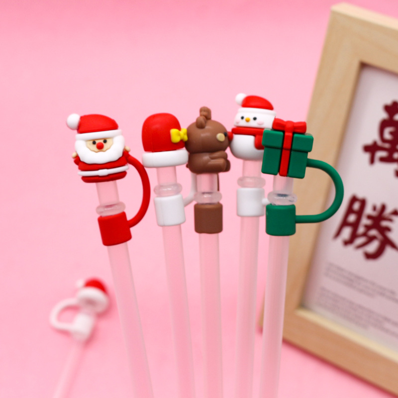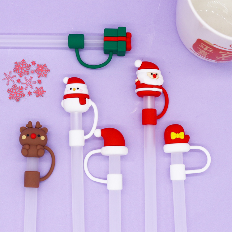 圣诞吸管帽个性软胶8和10mm吸管套趣味卡通派对吸管装饰帽防尘盖
