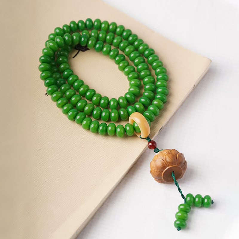 绿菩提算盘珠DIY莲花款手链 规格6×9男女念珠文玩首饰厂家批发