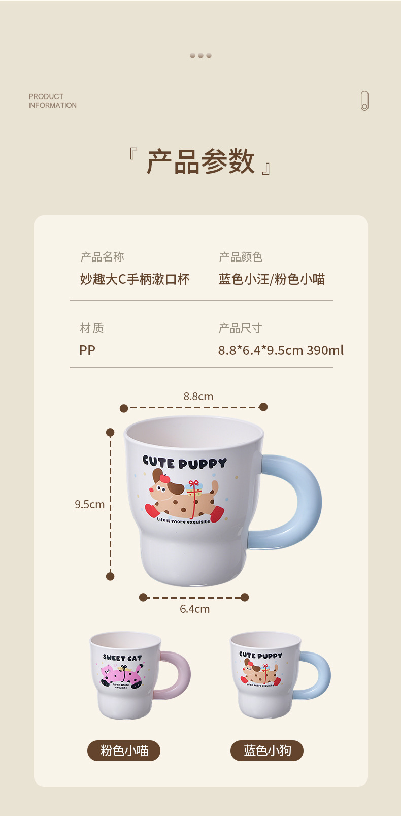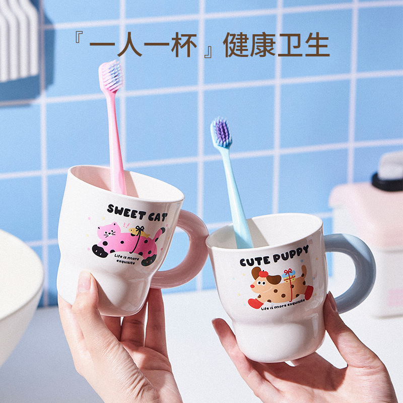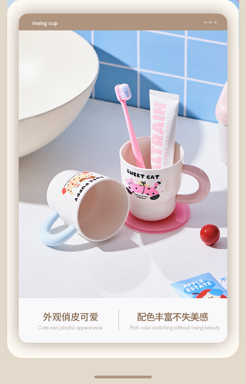 可爱图案大C手柄卫生间洗漱杯家用刷牙漱口杯高颜值2025新款牙杯