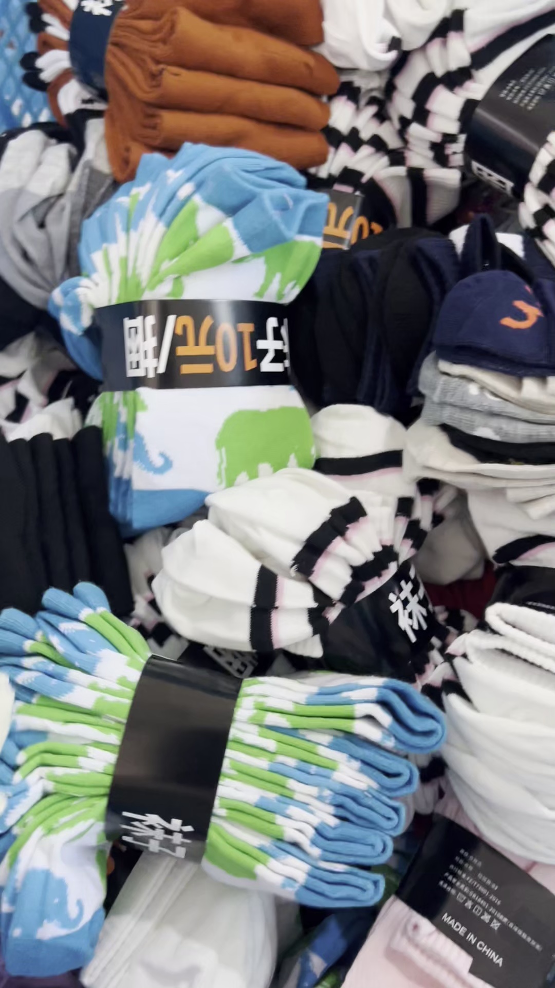 自有工厂生产发货。款式随机混搭,一双一卡,一包1000双,不拆包,男女款式混搭。卡纸包装随机。零售十元6双跑量袜。适合地摊,赶大集,庙会展会甩货。送大气广告录音!