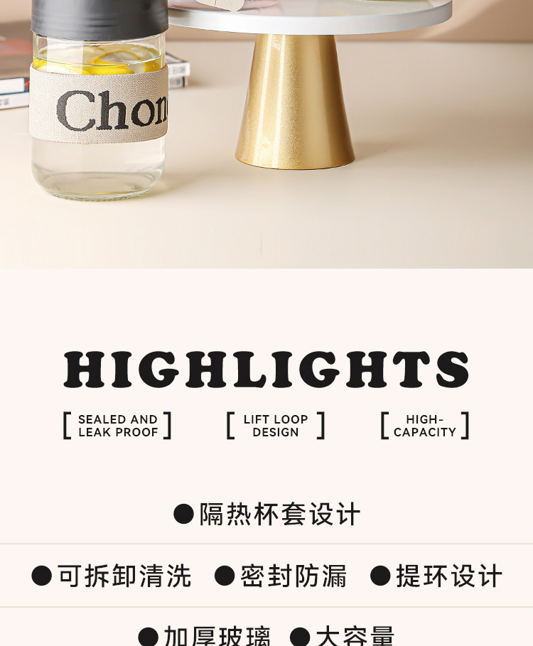 新款学生便携可爱小香风提手杯水杯开业礼品水杯简约带杯套玻璃杯