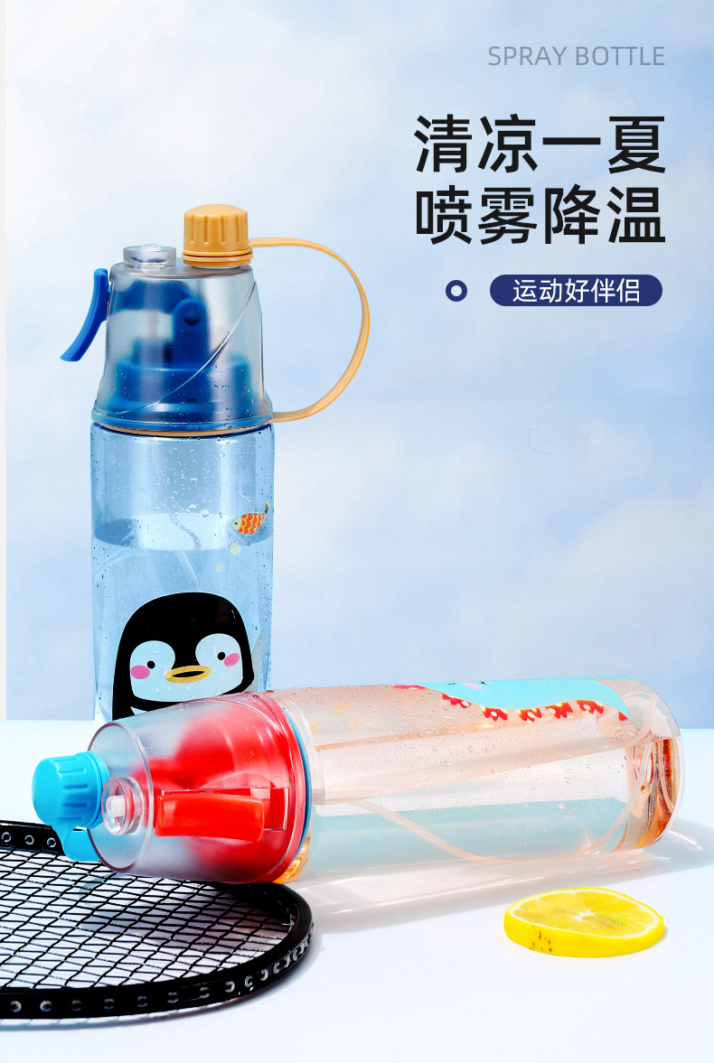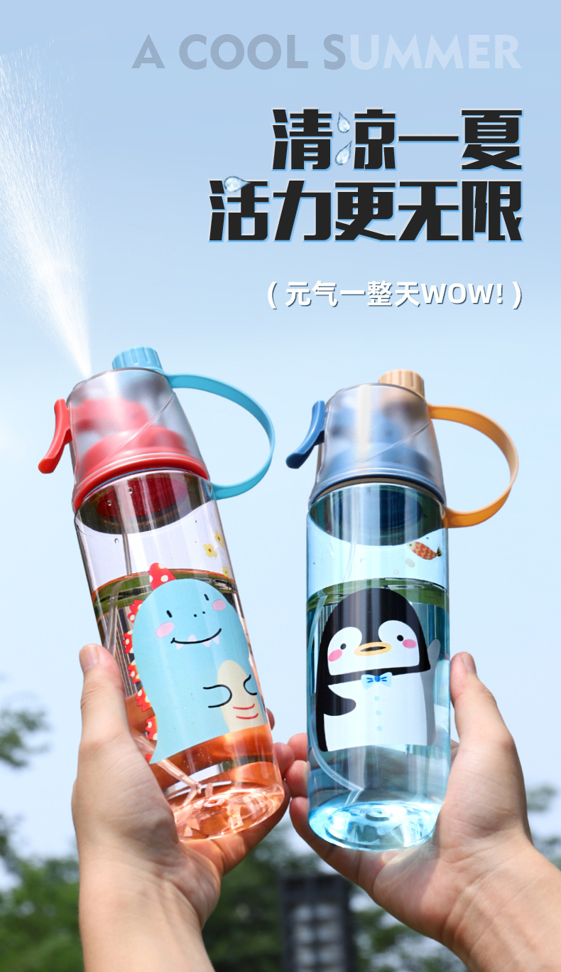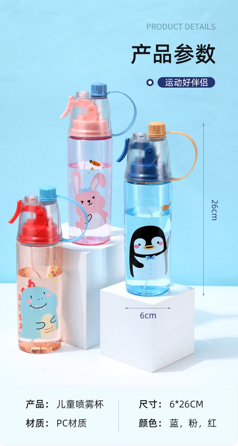 运动喷雾水杯儿童卡通户外便携塑料水壶夏季高颜值降温杯子定制