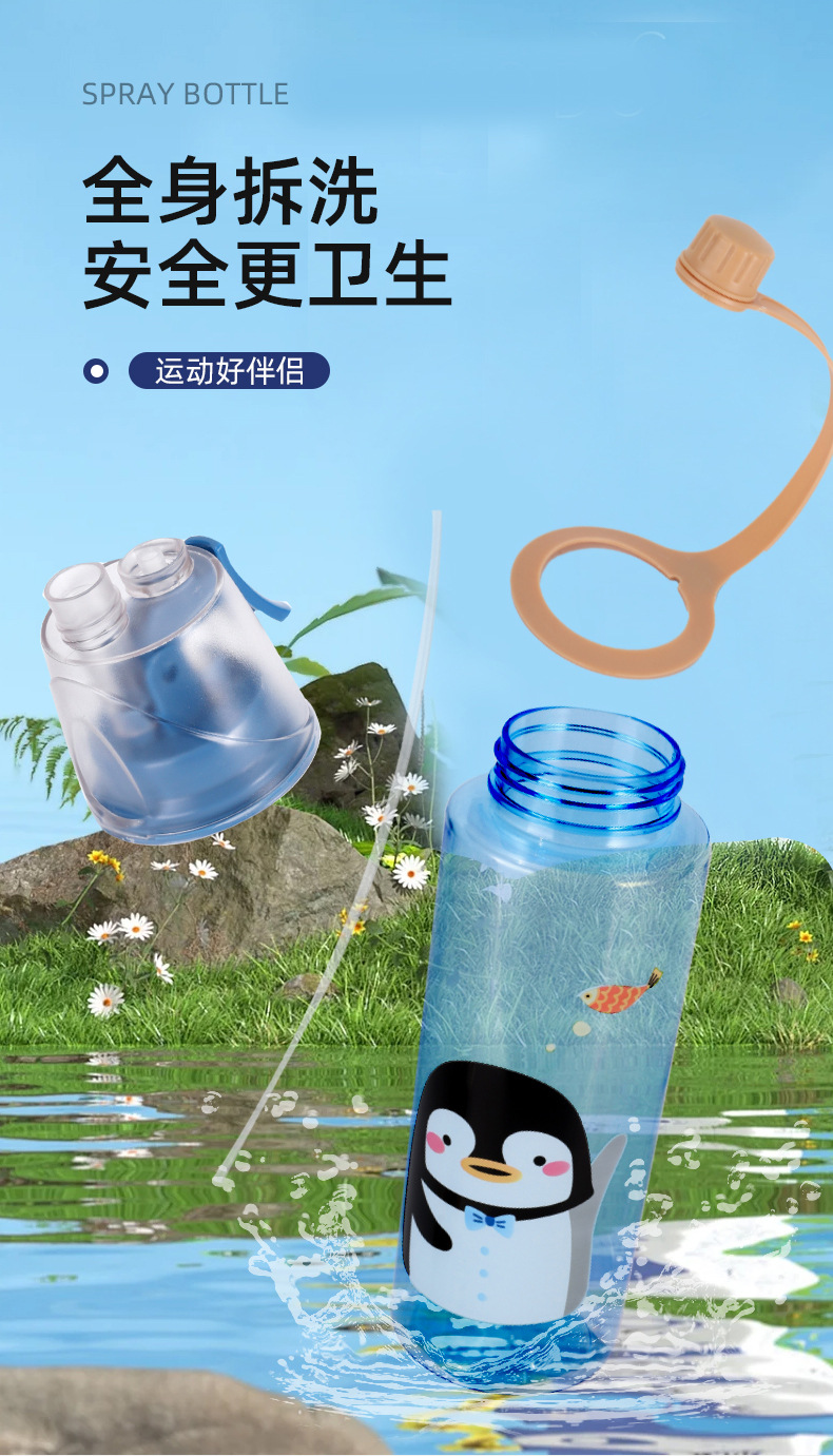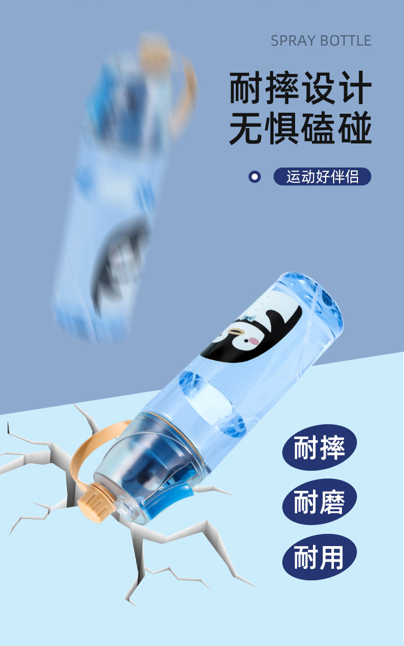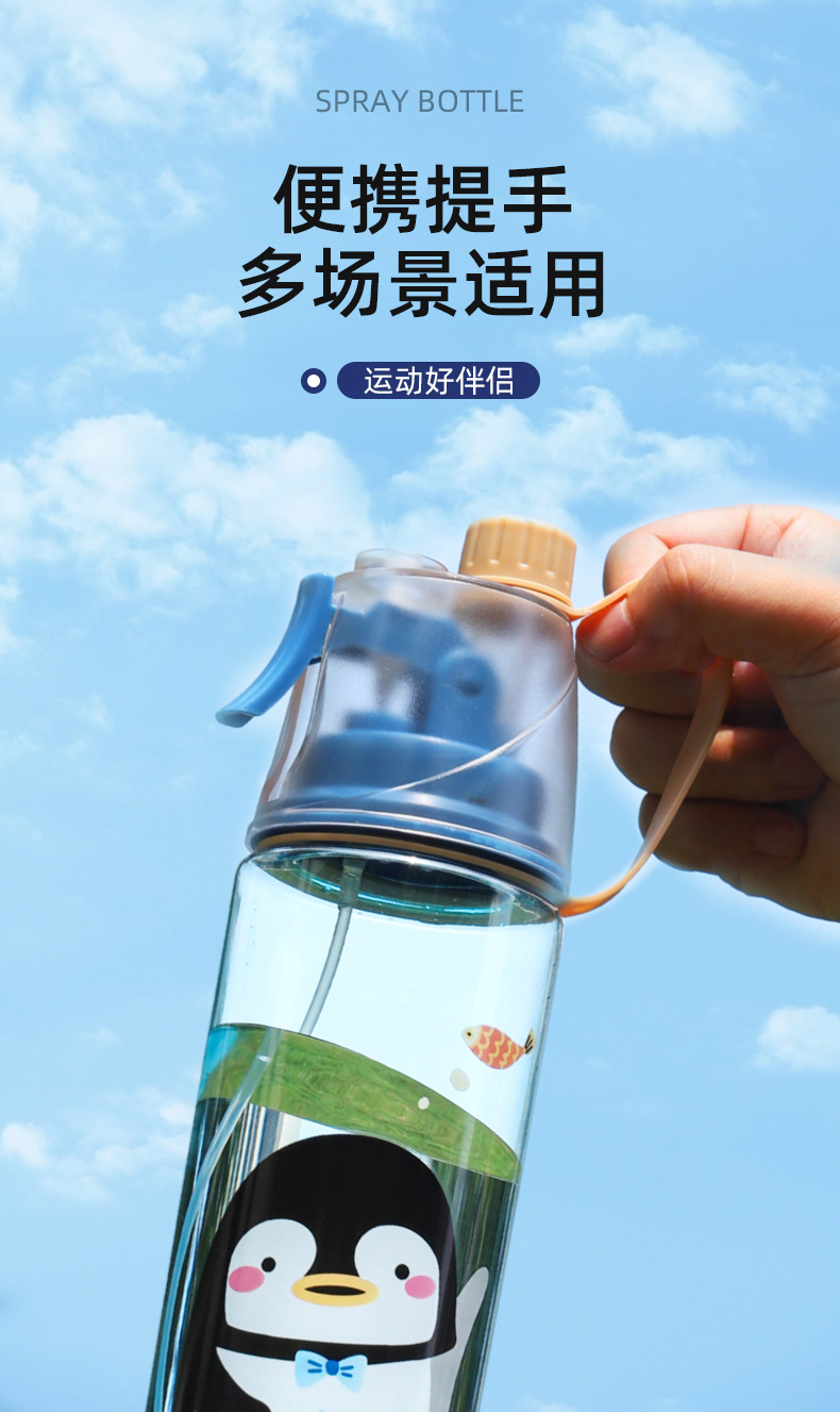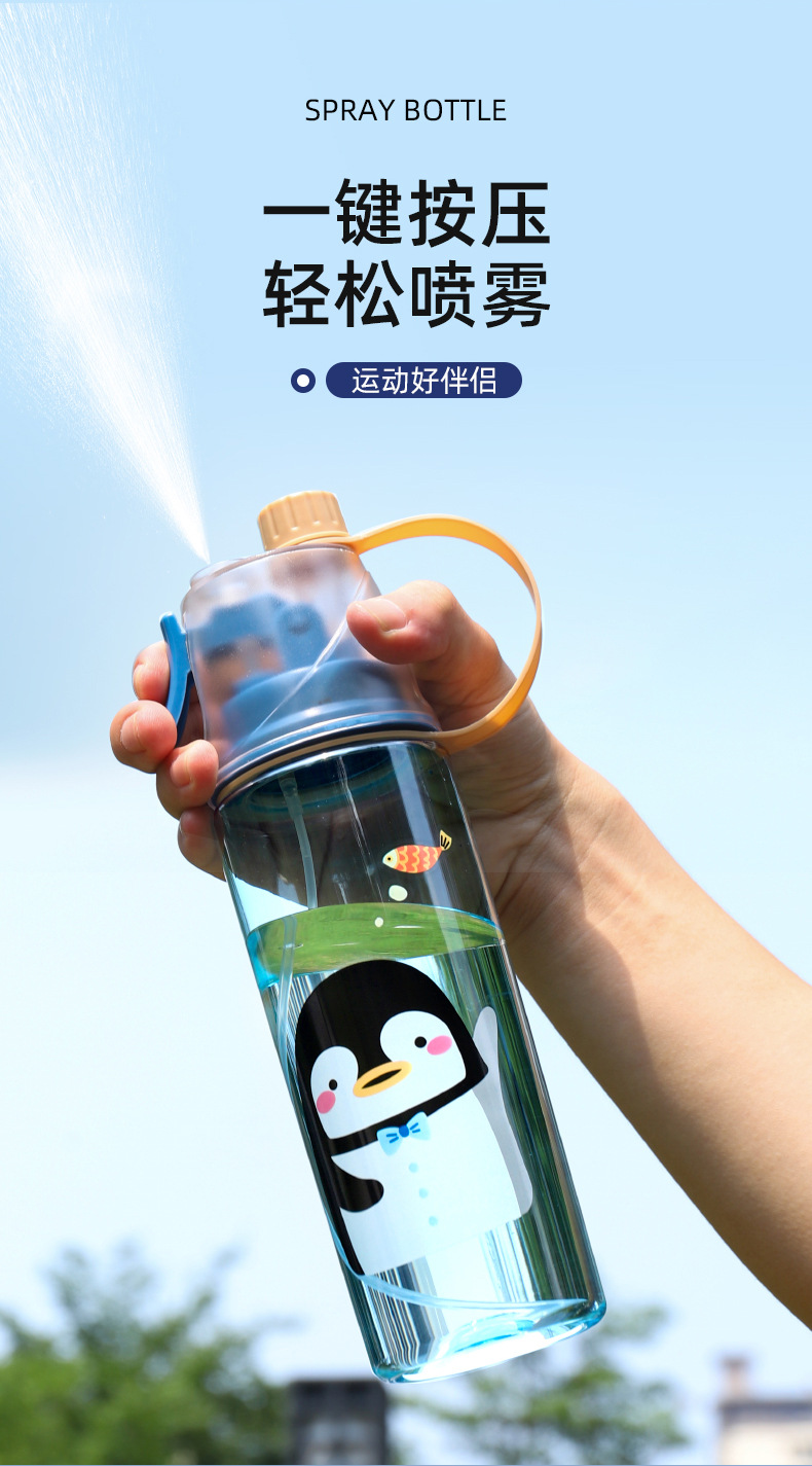 运动喷雾水杯儿童卡通户外便携塑料水壶夏季高颜值降温杯子定制