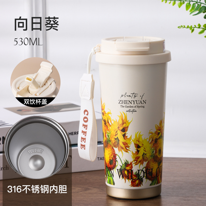咖啡杯大容量316不锈钢保温杯高颜值便携双饮吸管杯礼品水杯定制