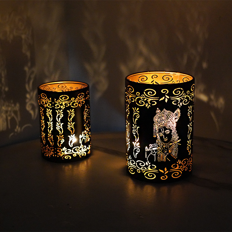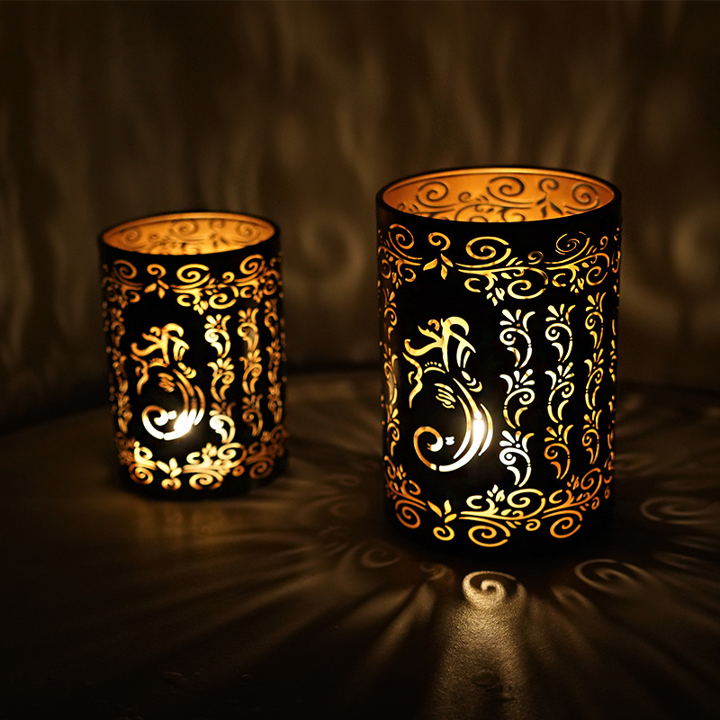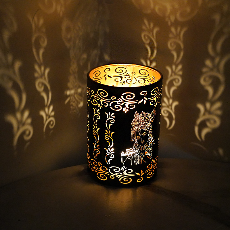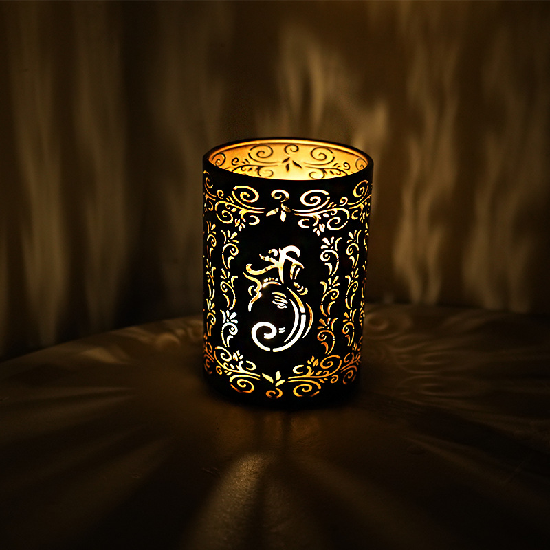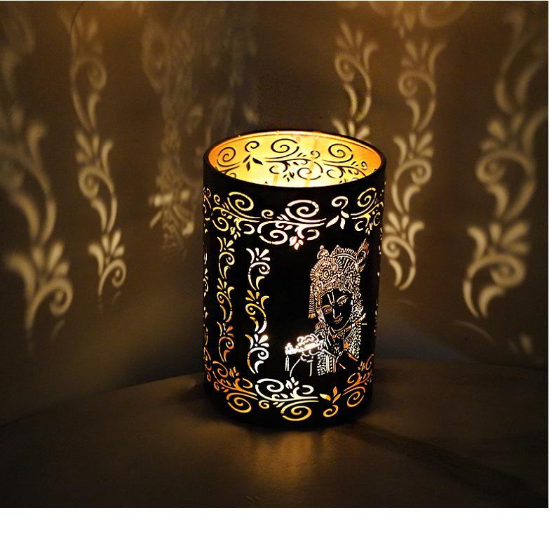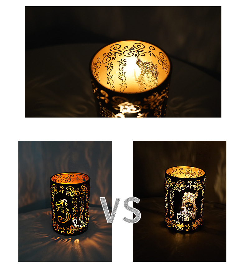 跨境新款印度排灯节蜡烛台万灯节Diwali节日投影氛围桌面装饰摆件