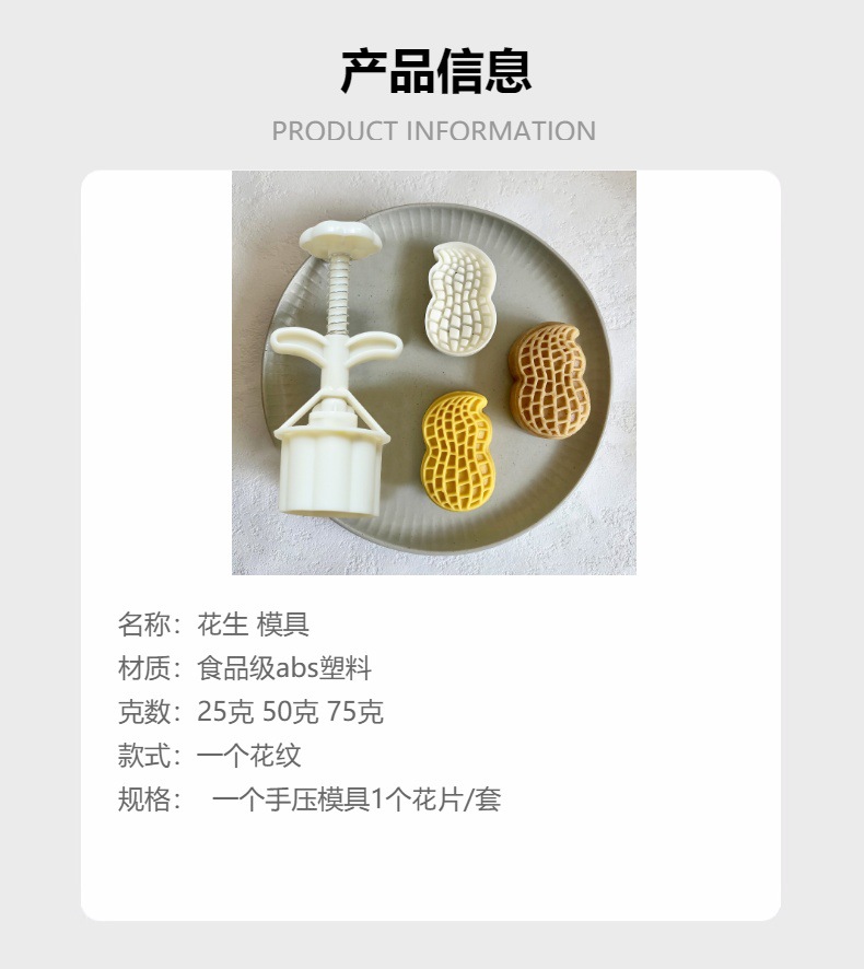 【花生】月饼模具75克50克30克手压 食品级模子