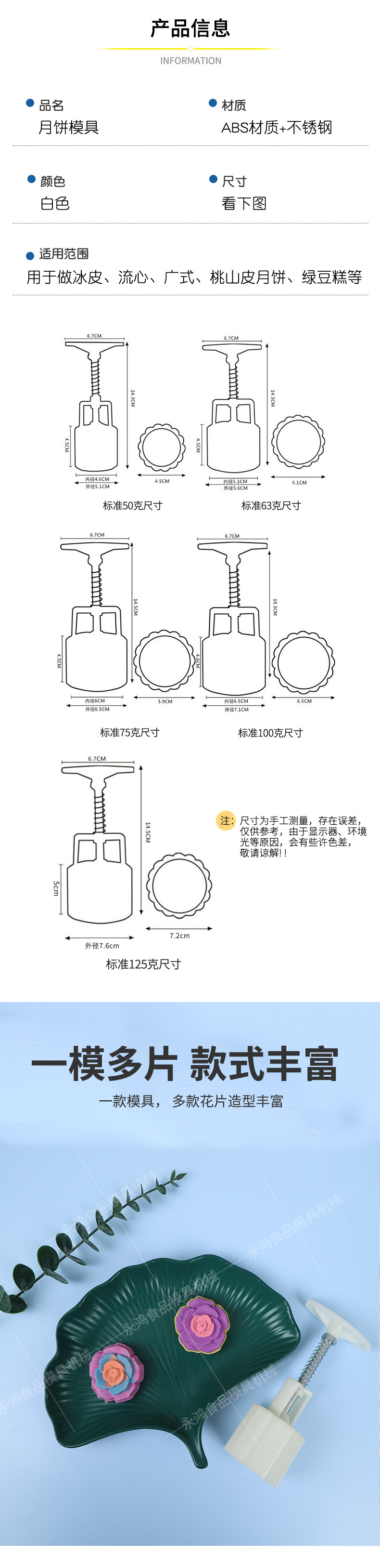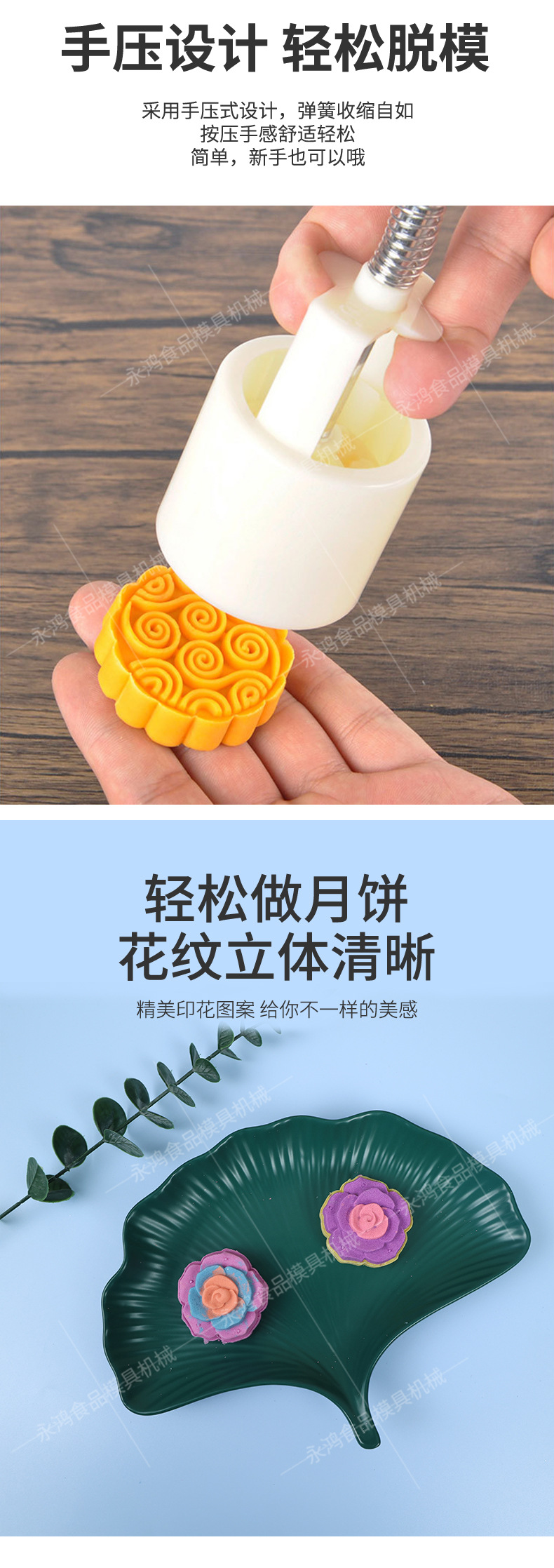 玫瑰50克手压模具月饼模具中秋节月饼模具套装批发定 制模具厂家