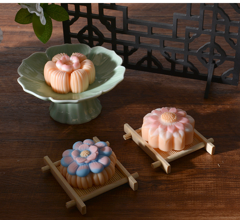 三信 国风花朵冰皮月饼硅胶模具自制创意糕点和菓子绿豆糕磨具